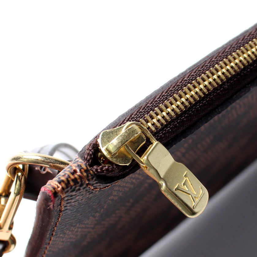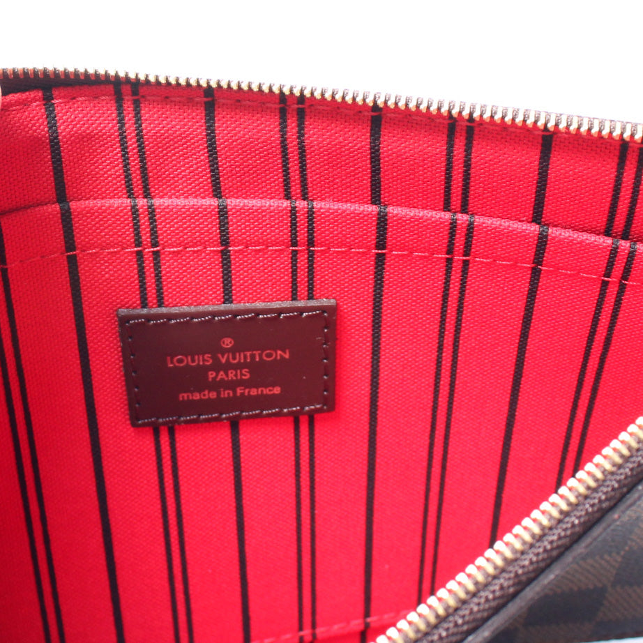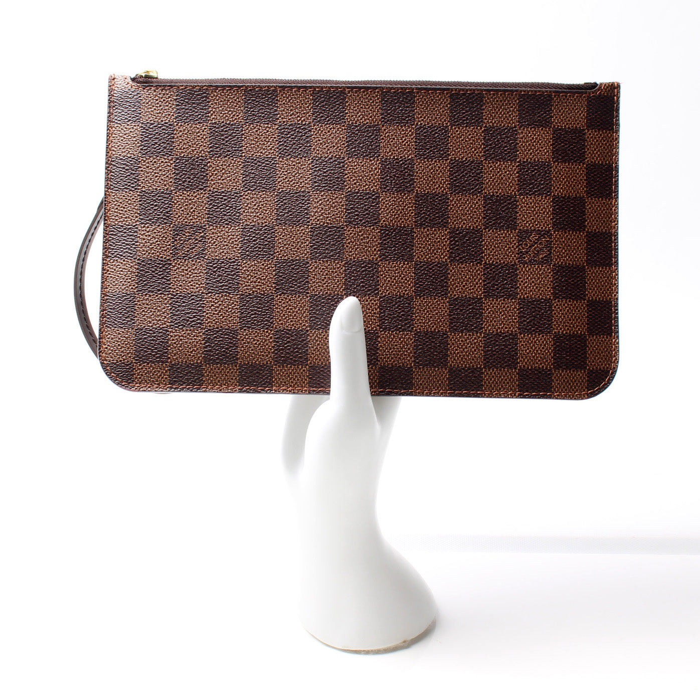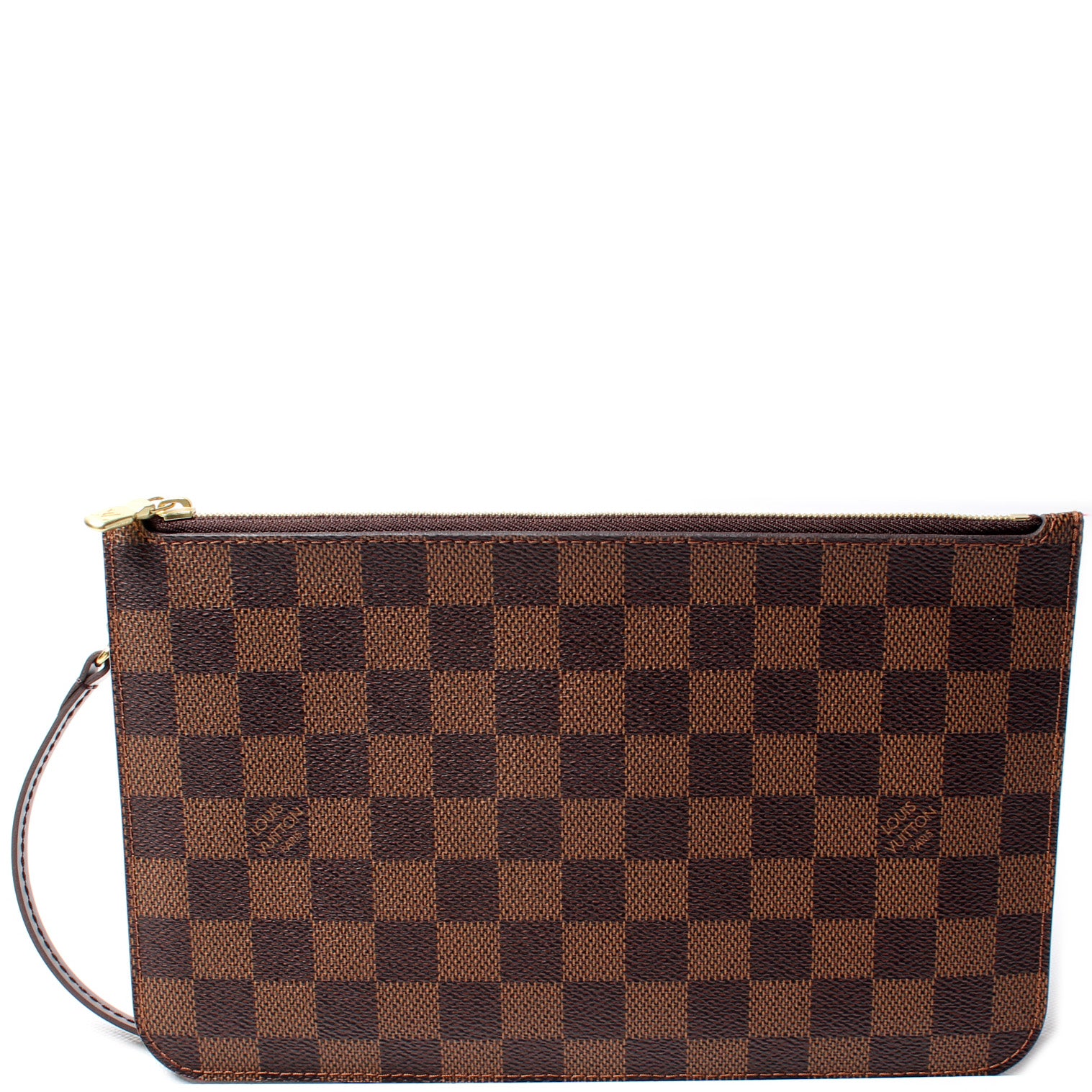 This pre-owned Louis Vuitton Pochette Only Neverfull is guaranteed 100% authentic. The exterior is in the classic Louis Vuitton Damier Ebene coated canvas.
