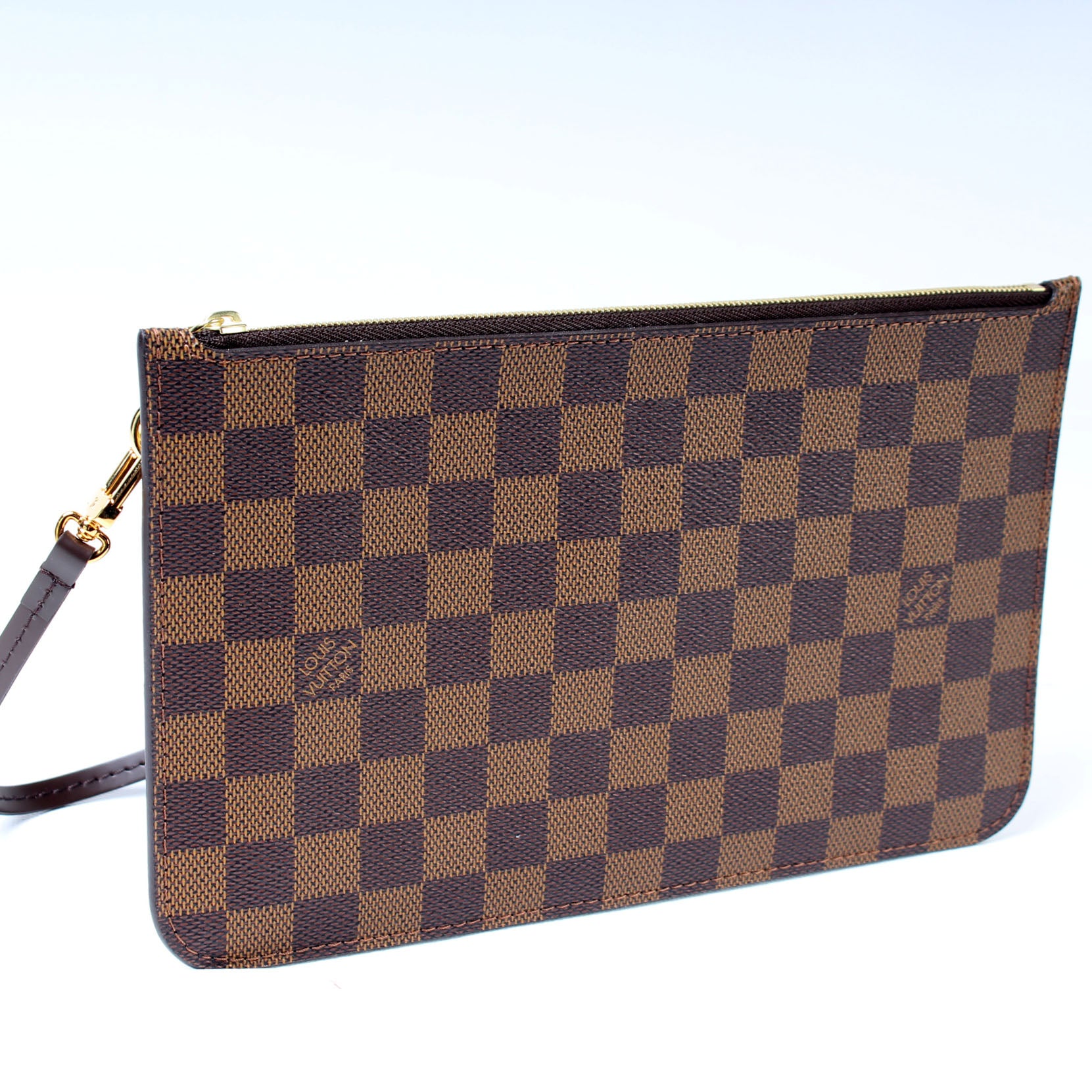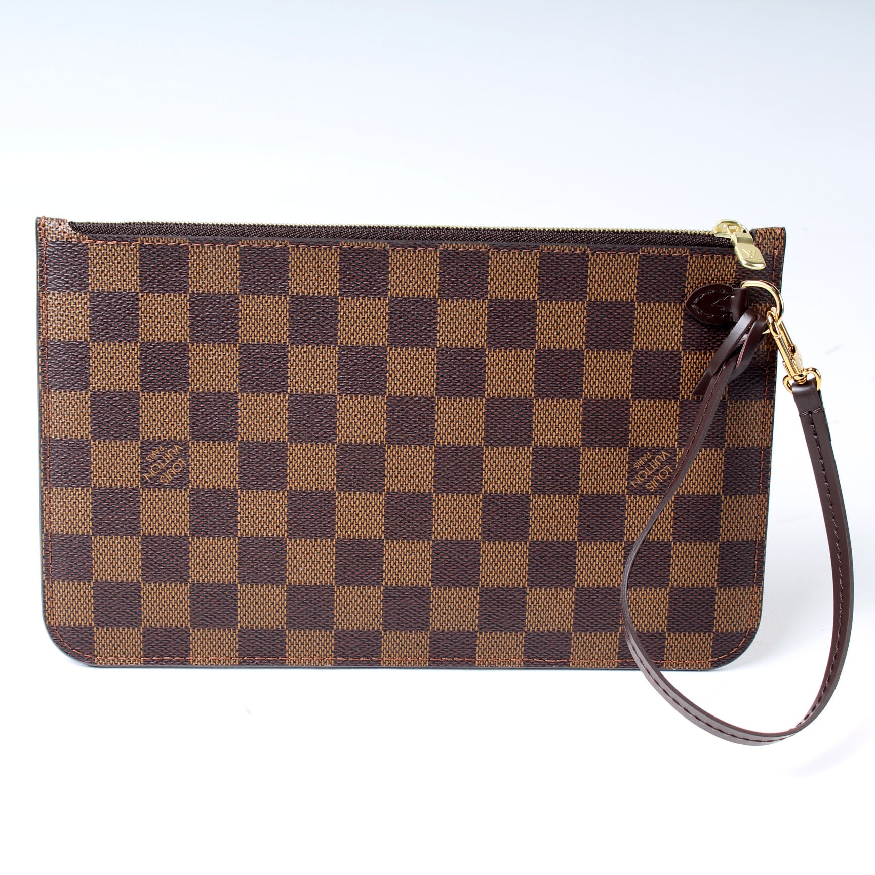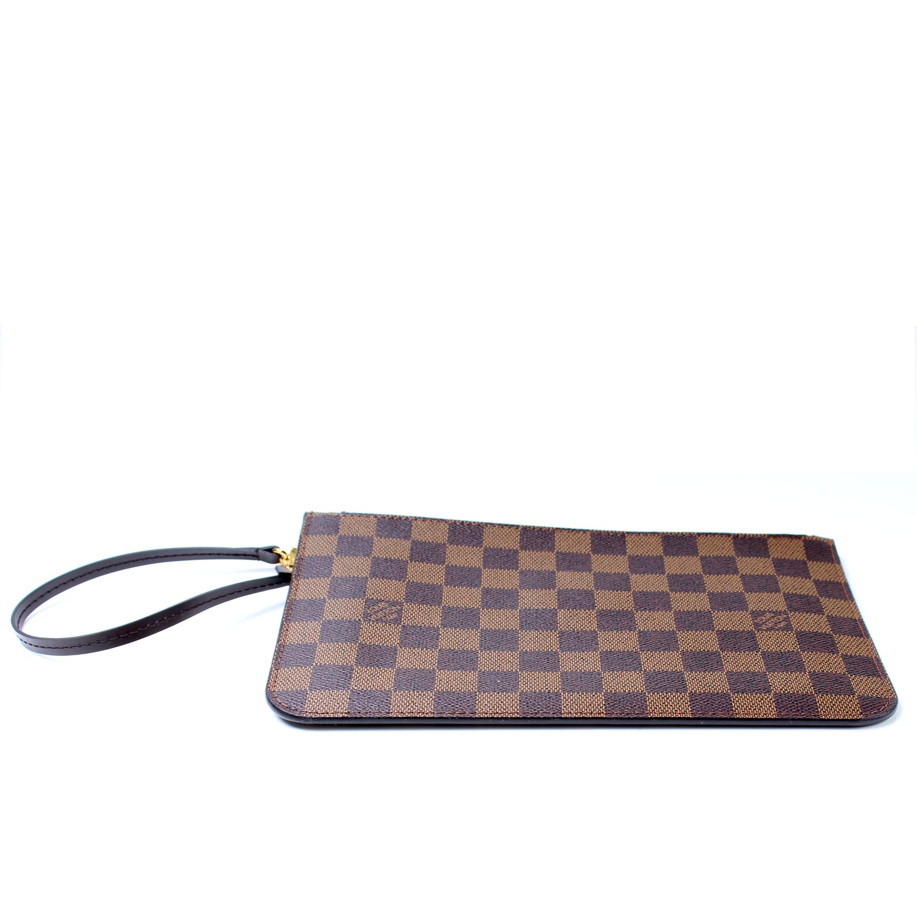 This pre-owned Louis Vuitton Pochette Only Neverfull is guaranteed 100% authentic. The exterior is in the classic Louis Vuitton Damier Ebene coated canvas.