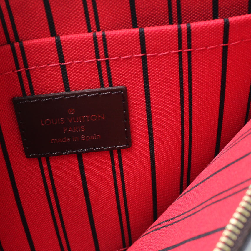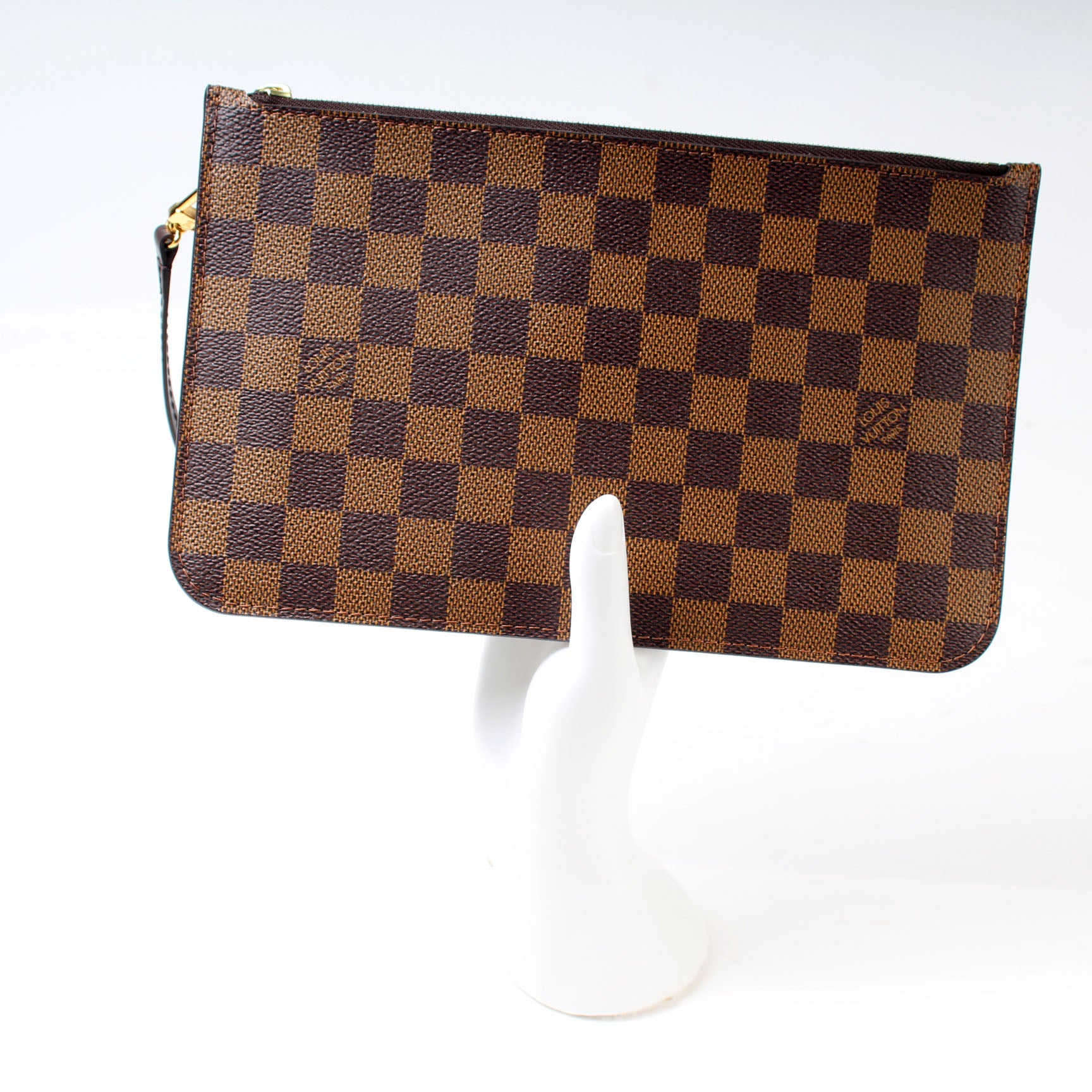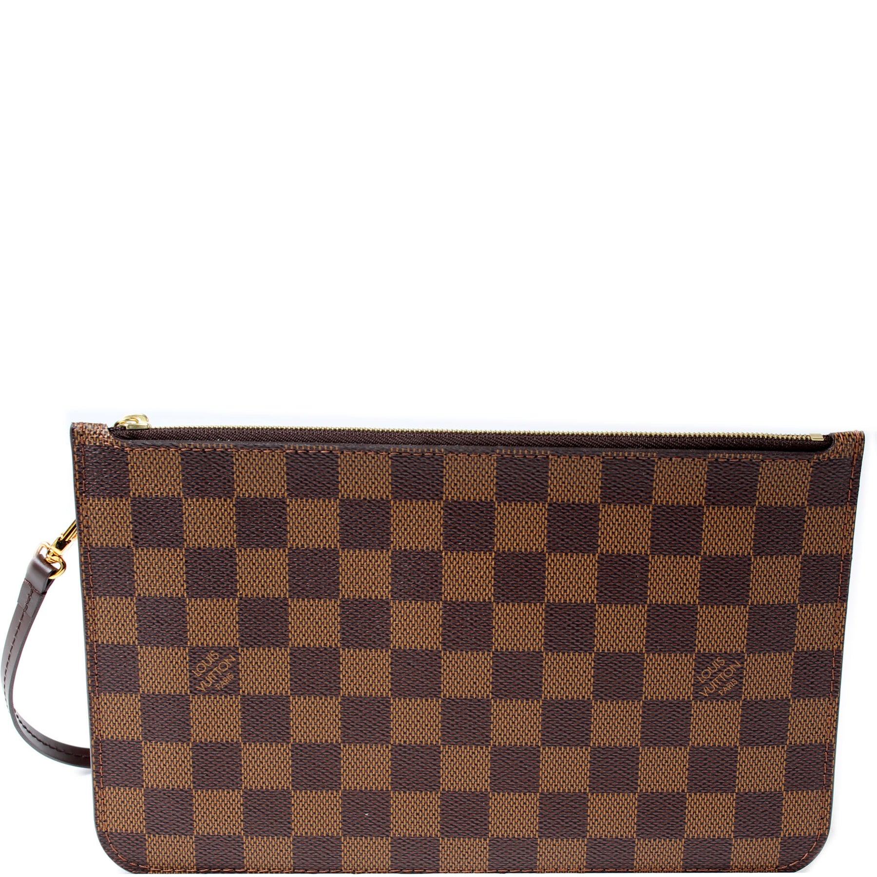 This pre-owned Louis Vuitton Pochette Only Neverfull is guaranteed 100% authentic. The exterior is in the classic Louis Vuitton Damier Ebene coated canvas.