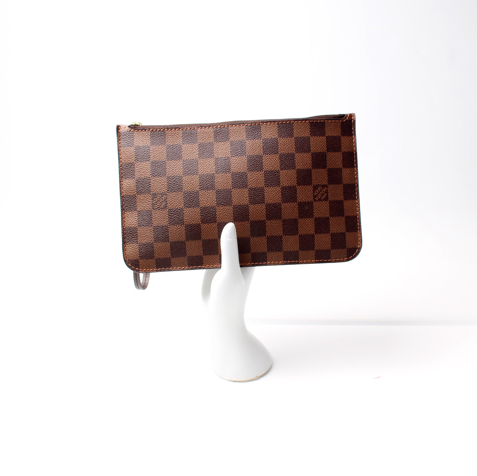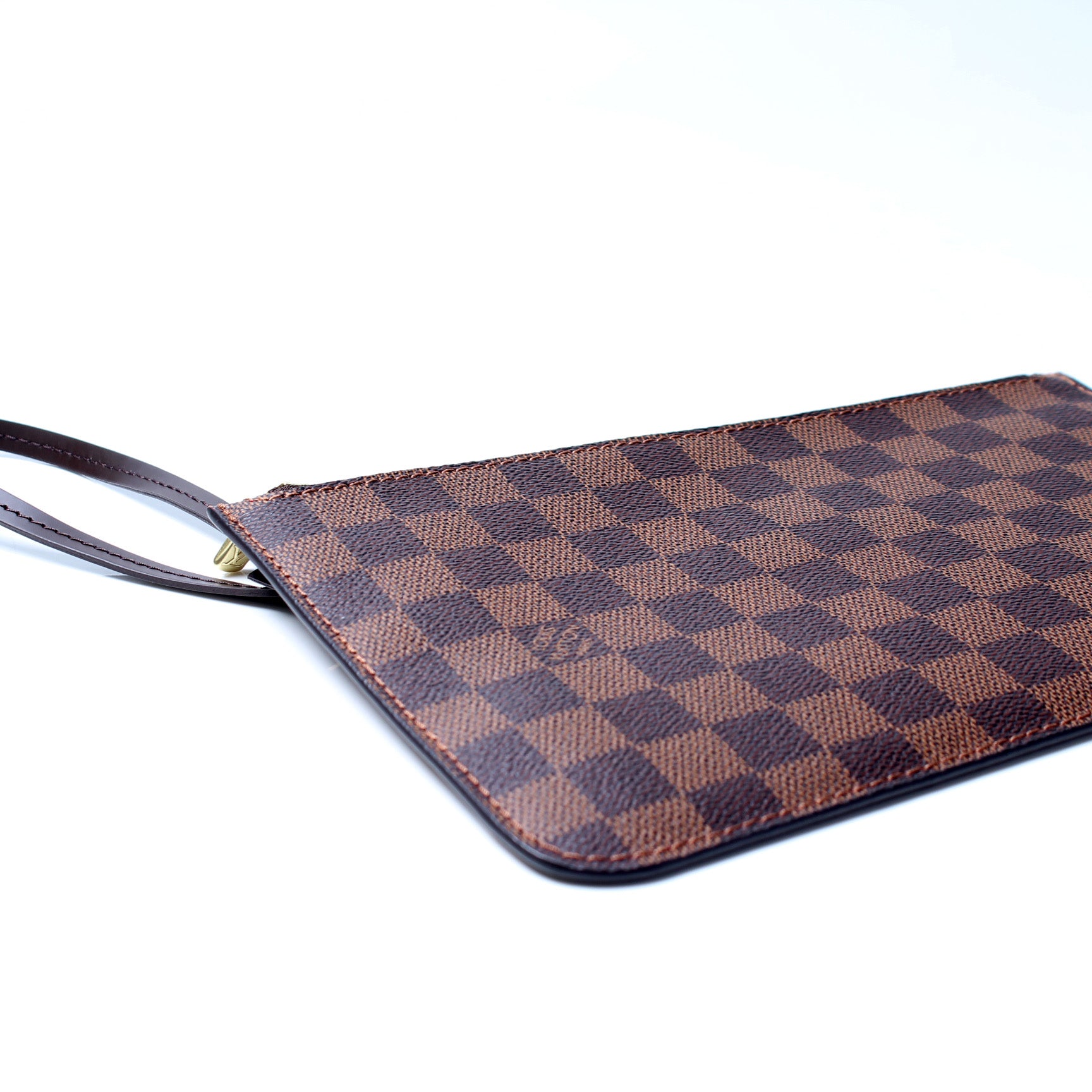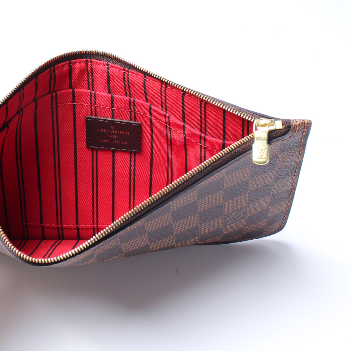 This pre-owned Louis Vuitton Pochette Only Neverfull is guaranteed 100% authentic. The exterior is in the classic Louis Vuitton Damier Ebene coated canvas.