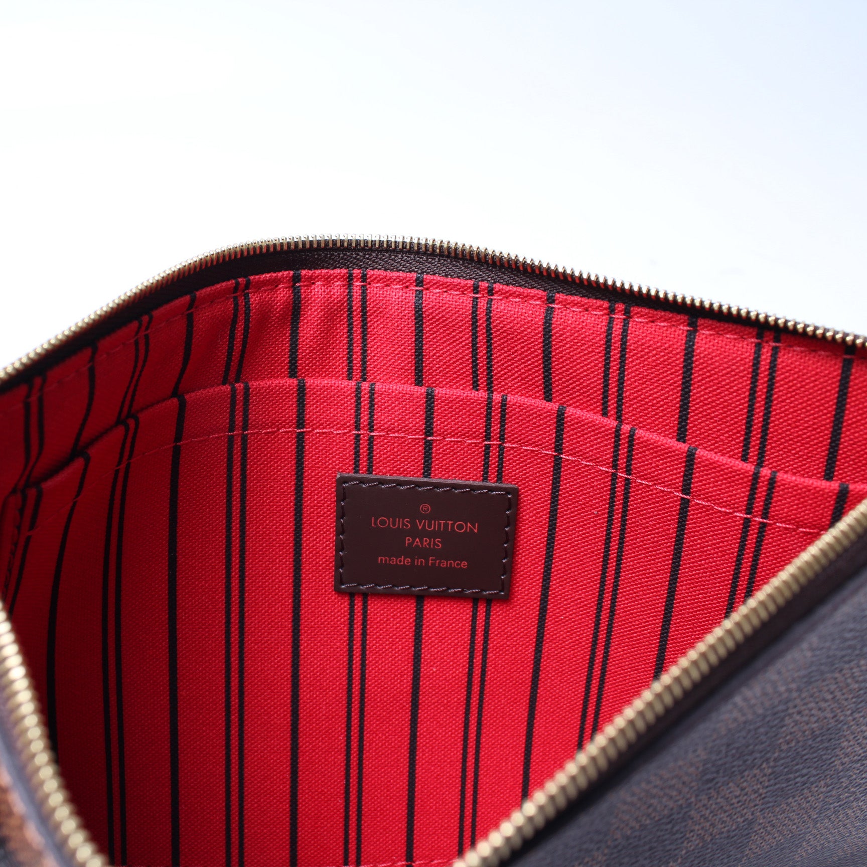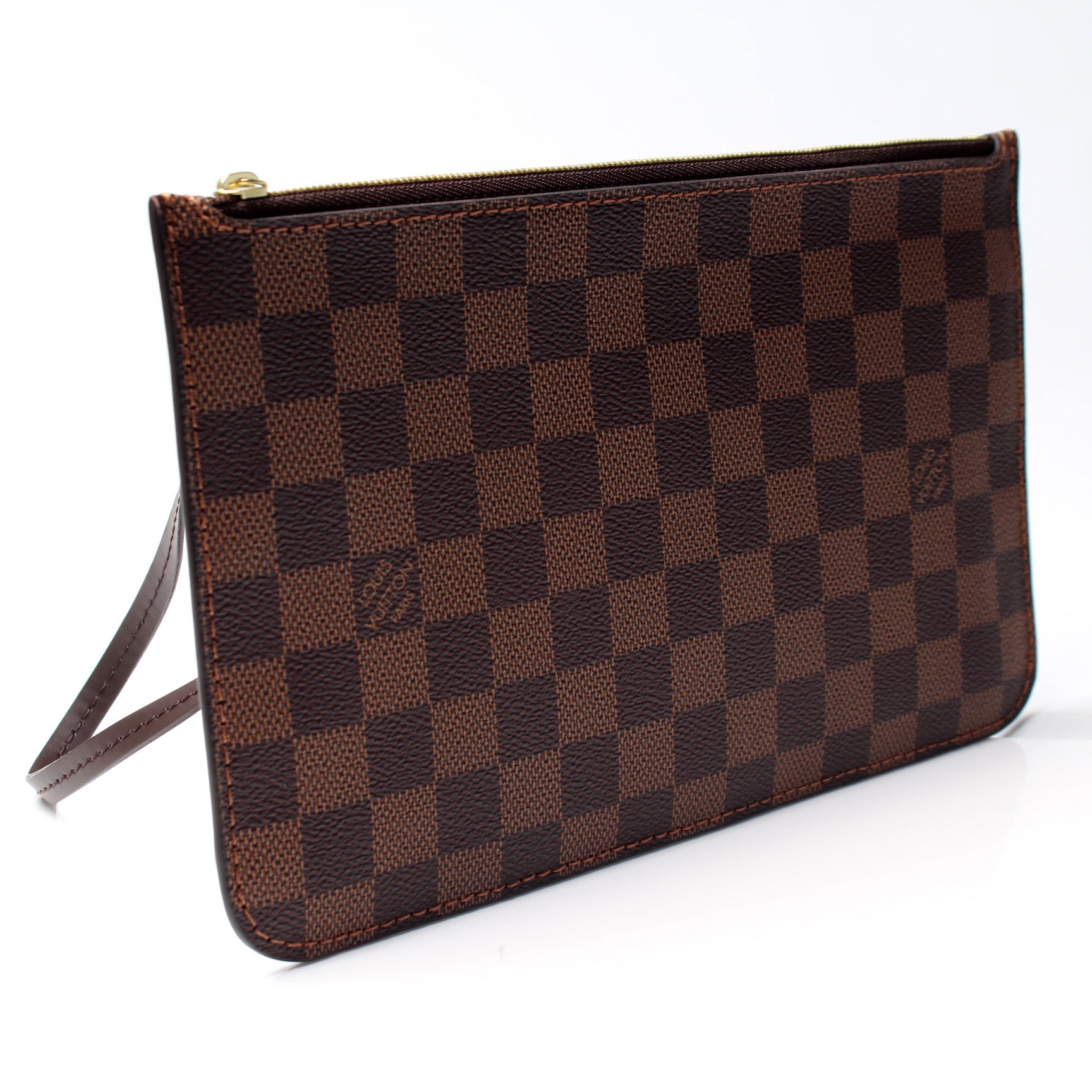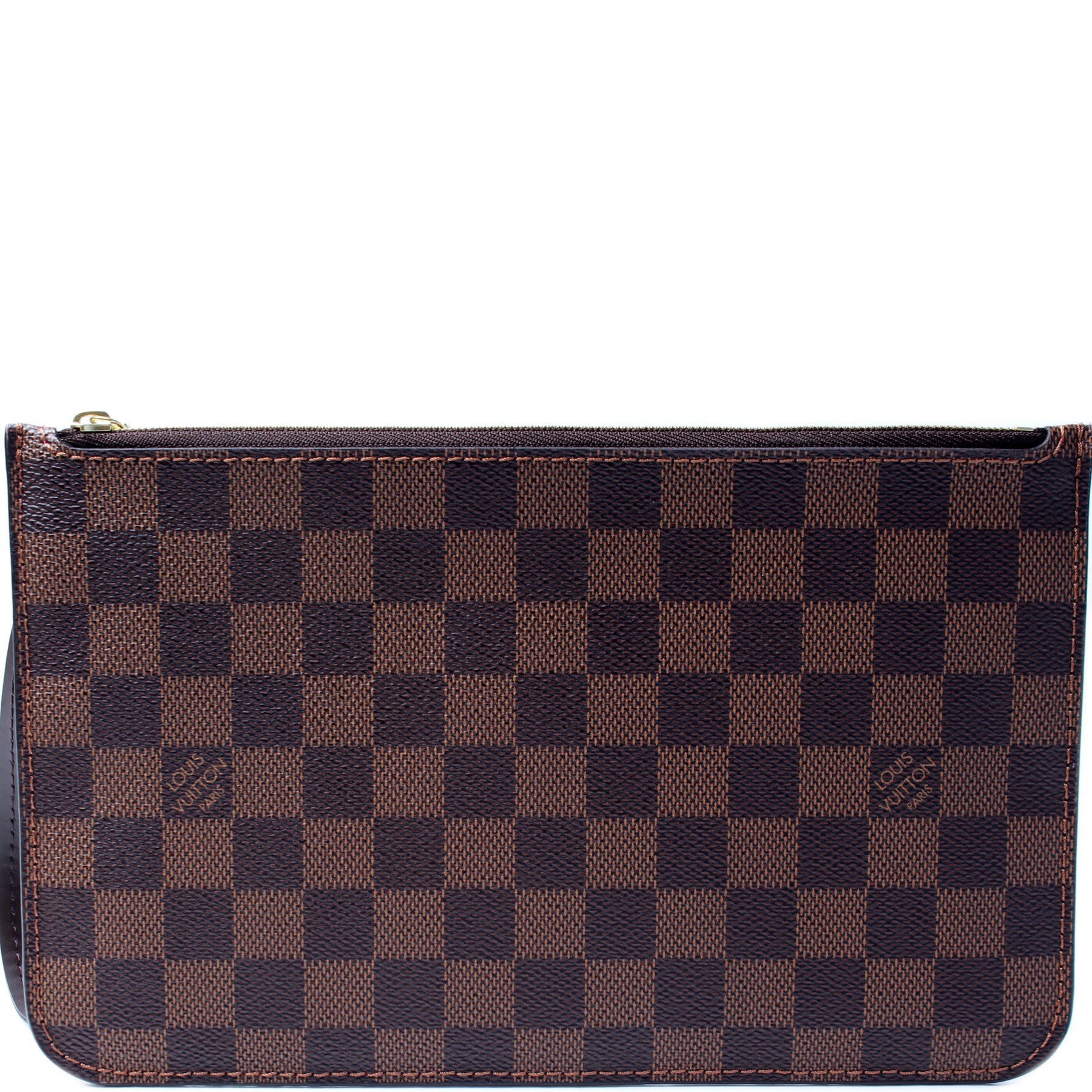 This pre-owned Louis Vuitton Pochette Only Neverfull is guaranteed 100% authentic. The exterior is in the classic Louis Vuitton Damier Ebene coated canvas.