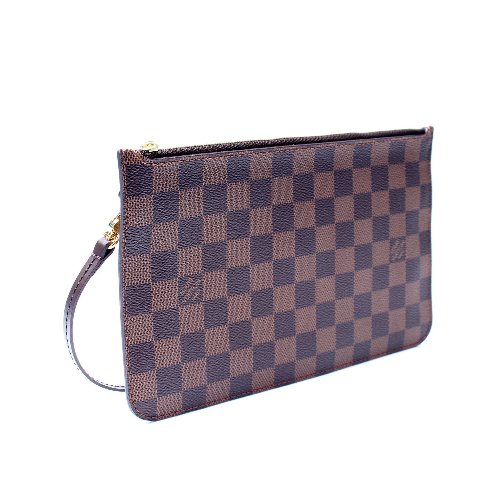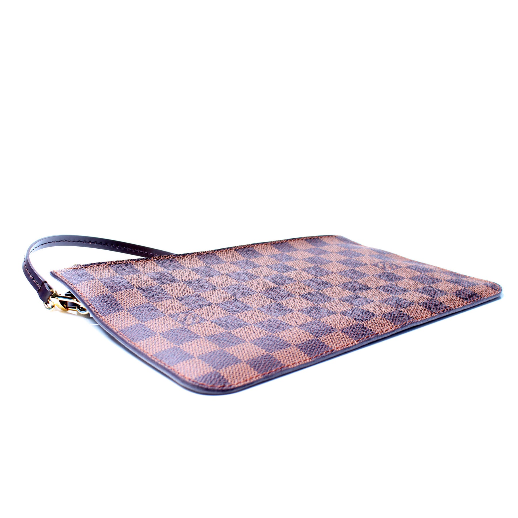 This pre-owned Louis Vuitton Pochette Only Neverfull is guaranteed 100% authentic. The exterior is in the classic Louis Vuitton Damier Ebene coated canvas.