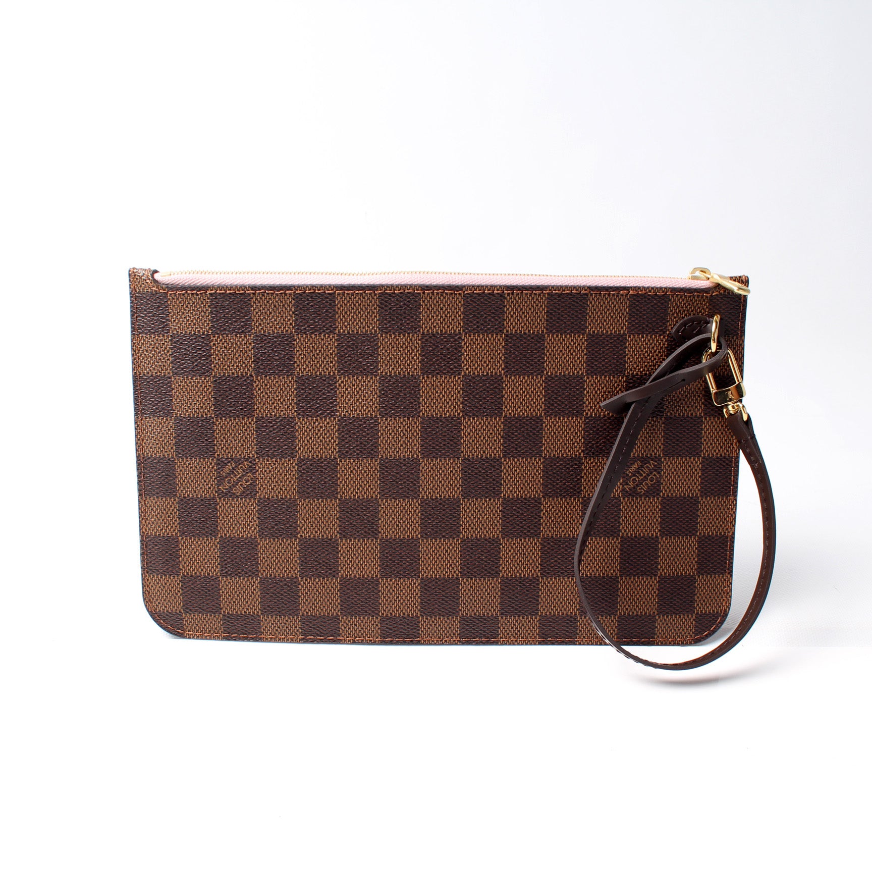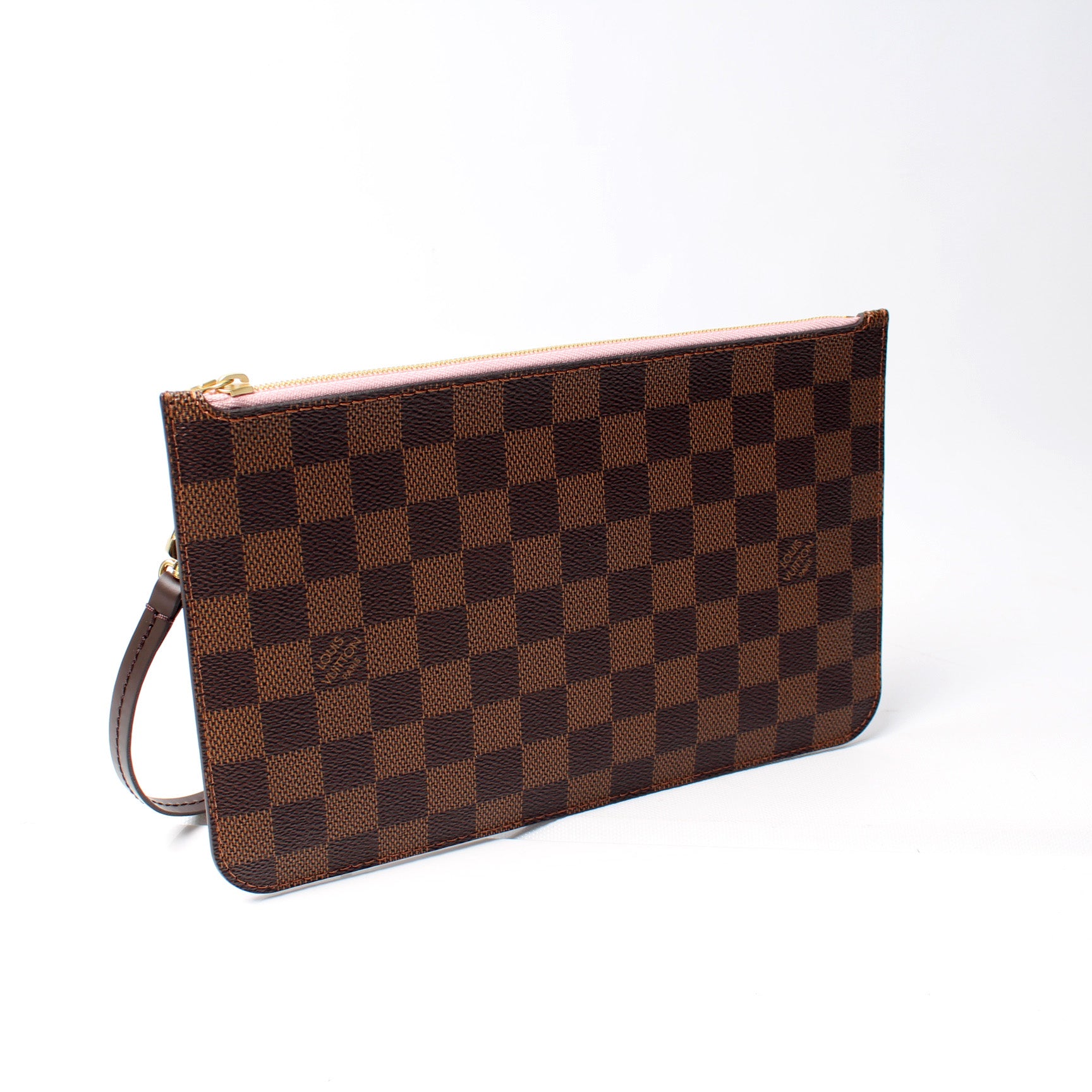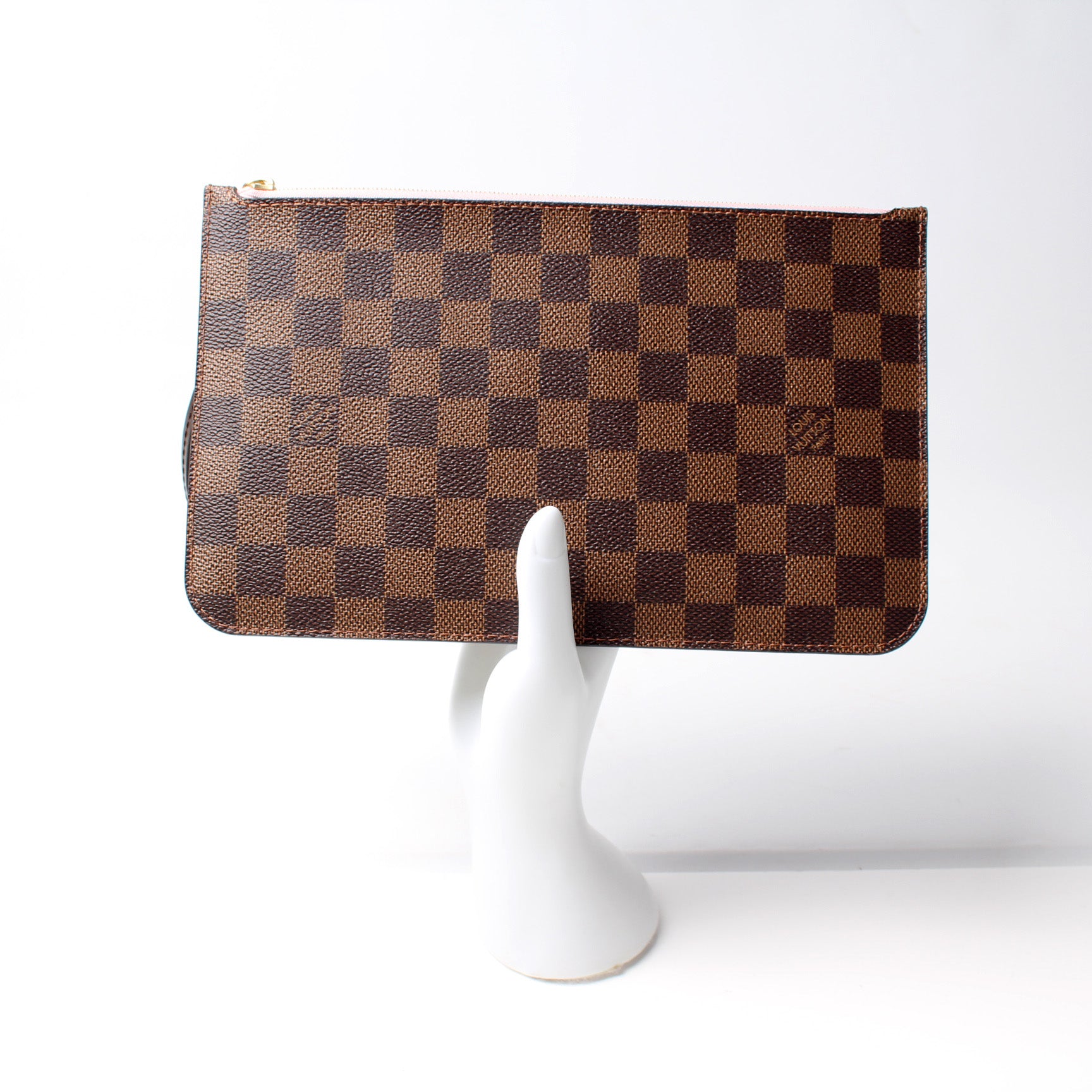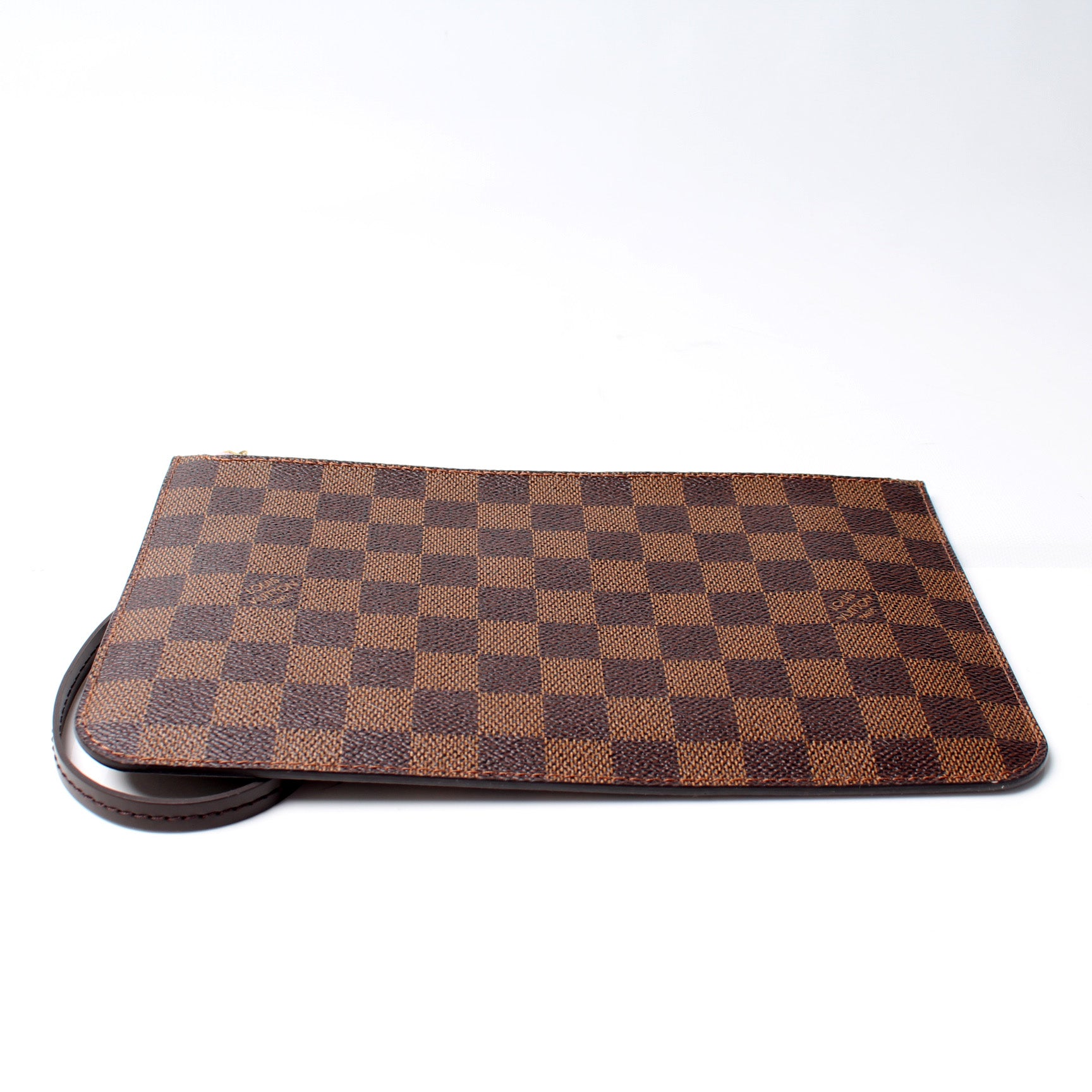 This pre-owned Louis Vuitton Pochette Only Neverfull is guaranteed 100% authentic. The exterior is in the classic Louis Vuitton Damier Ebene coated canvas.