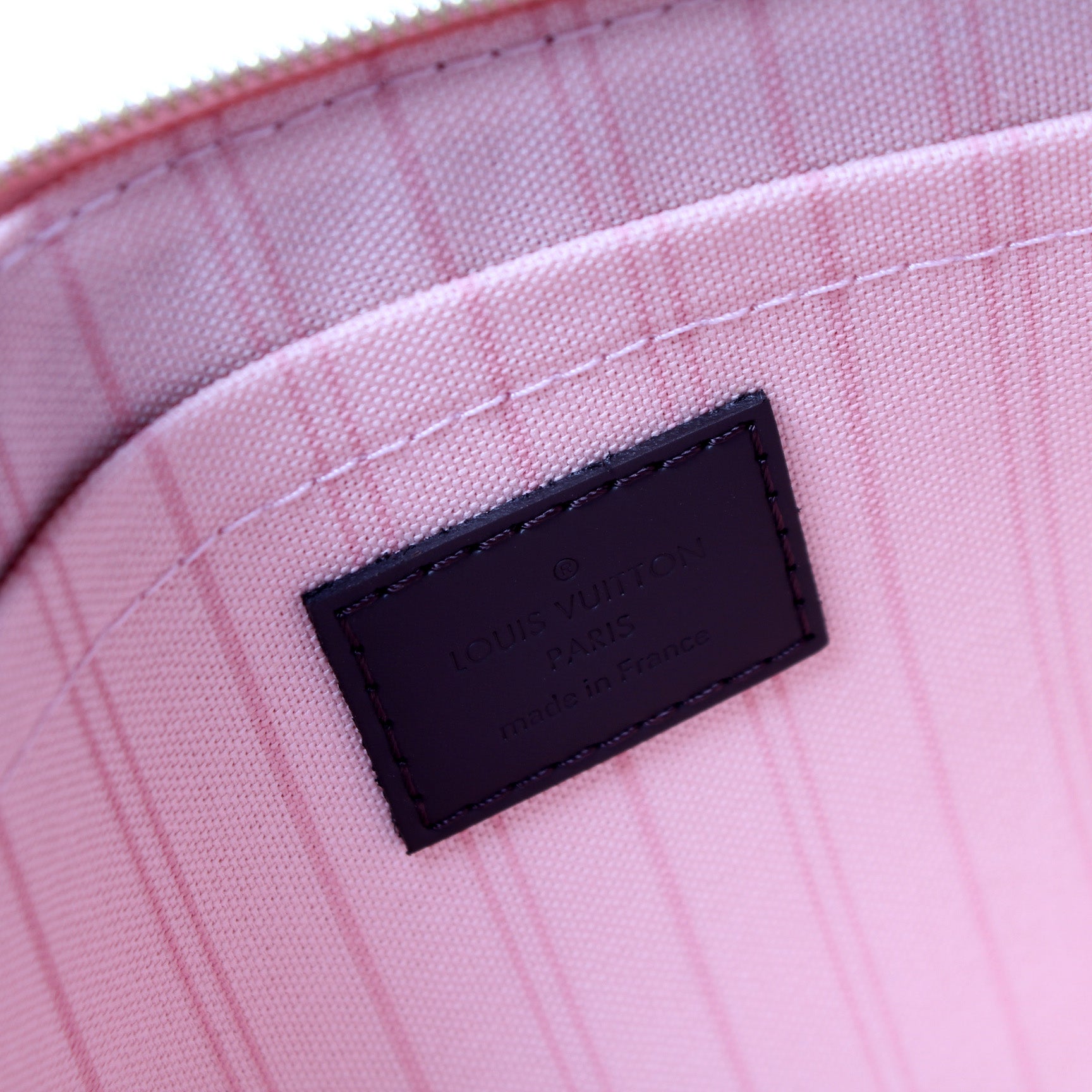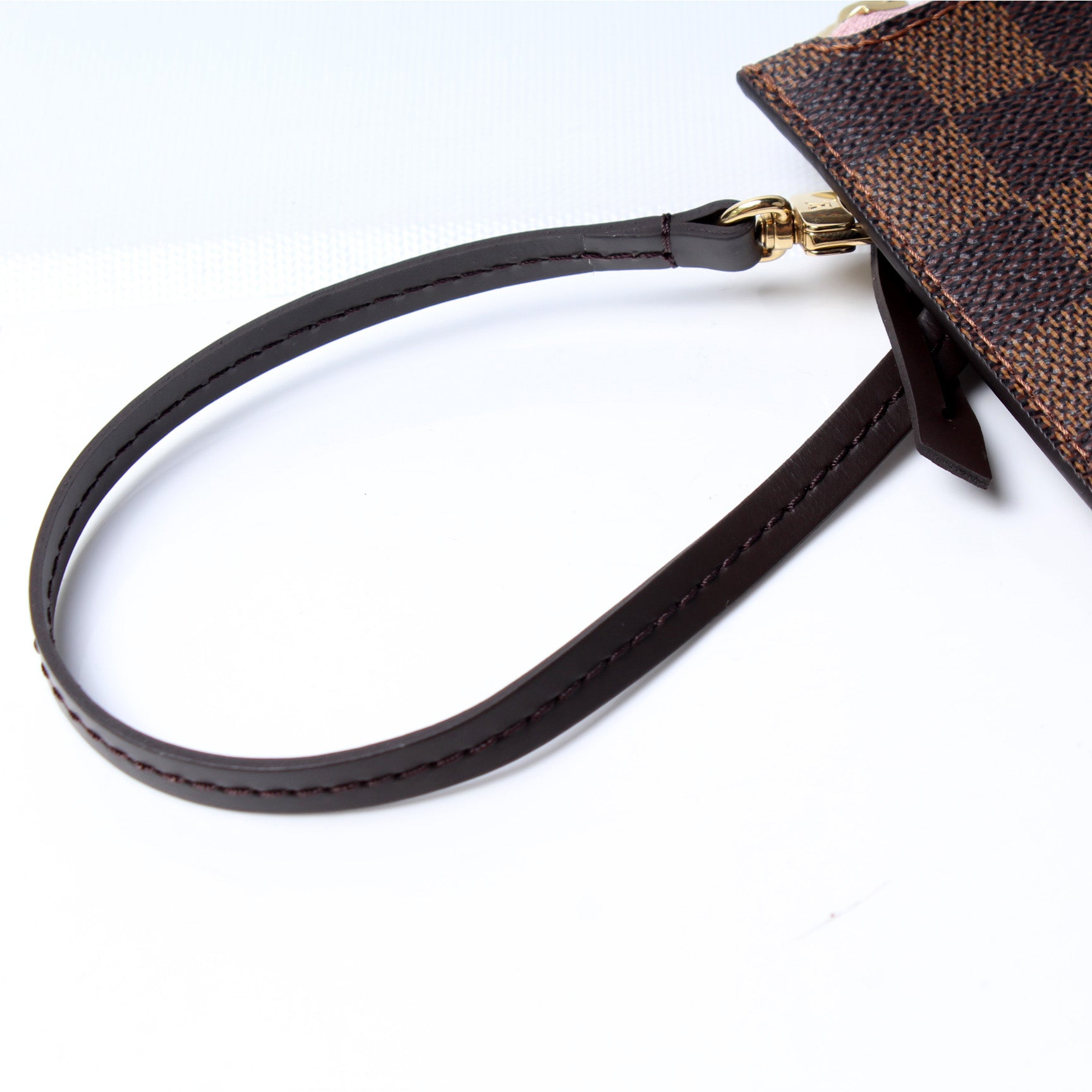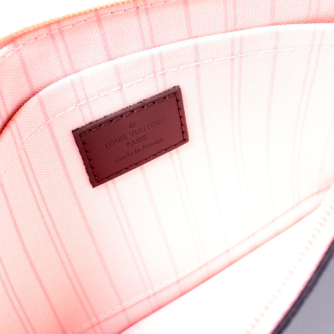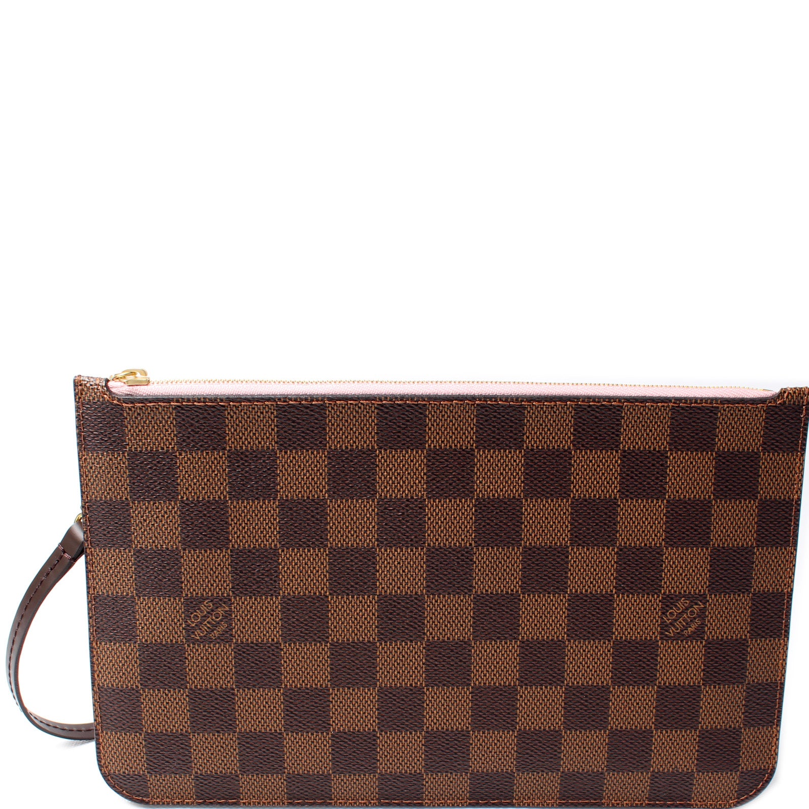 This pre-owned Louis Vuitton Pochette Only Neverfull is guaranteed 100% authentic. The exterior is in the classic Louis Vuitton Damier Ebene coated canvas.