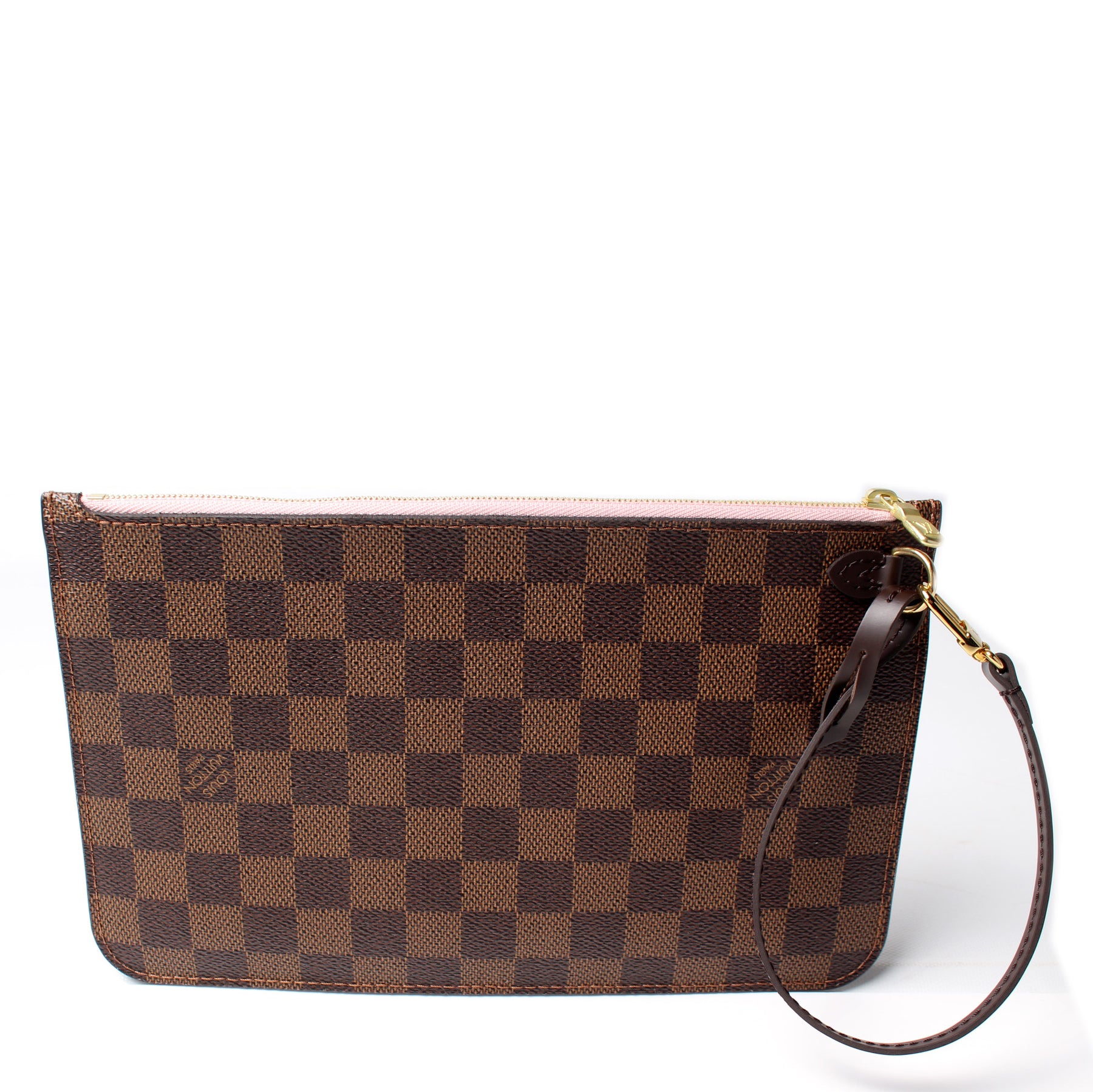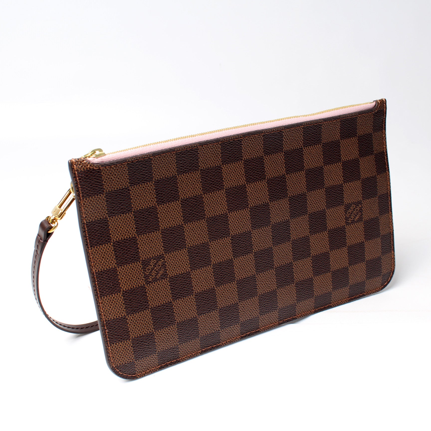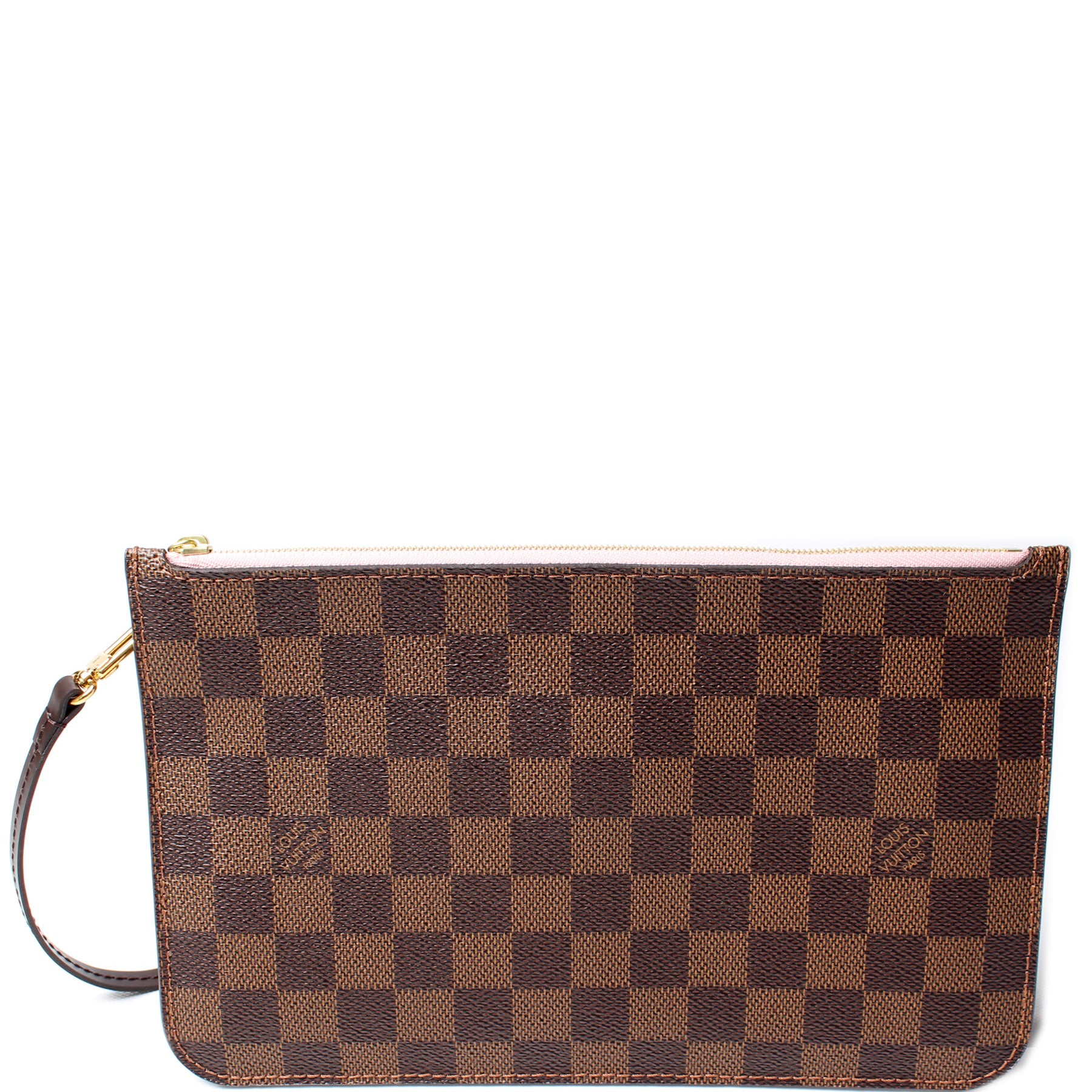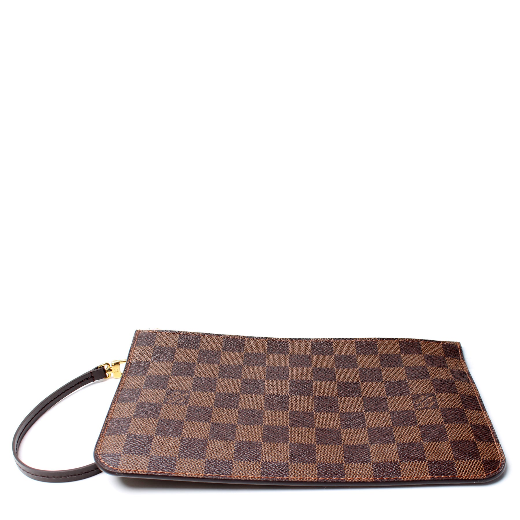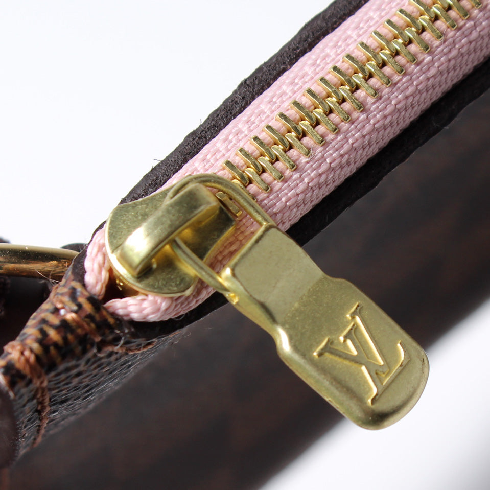 This pre-owned Louis Vuitton Pochette Only Neverfull is guaranteed 100% authentic. The exterior is in the classic Louis Vuitton Damier Ebene coated canvas.