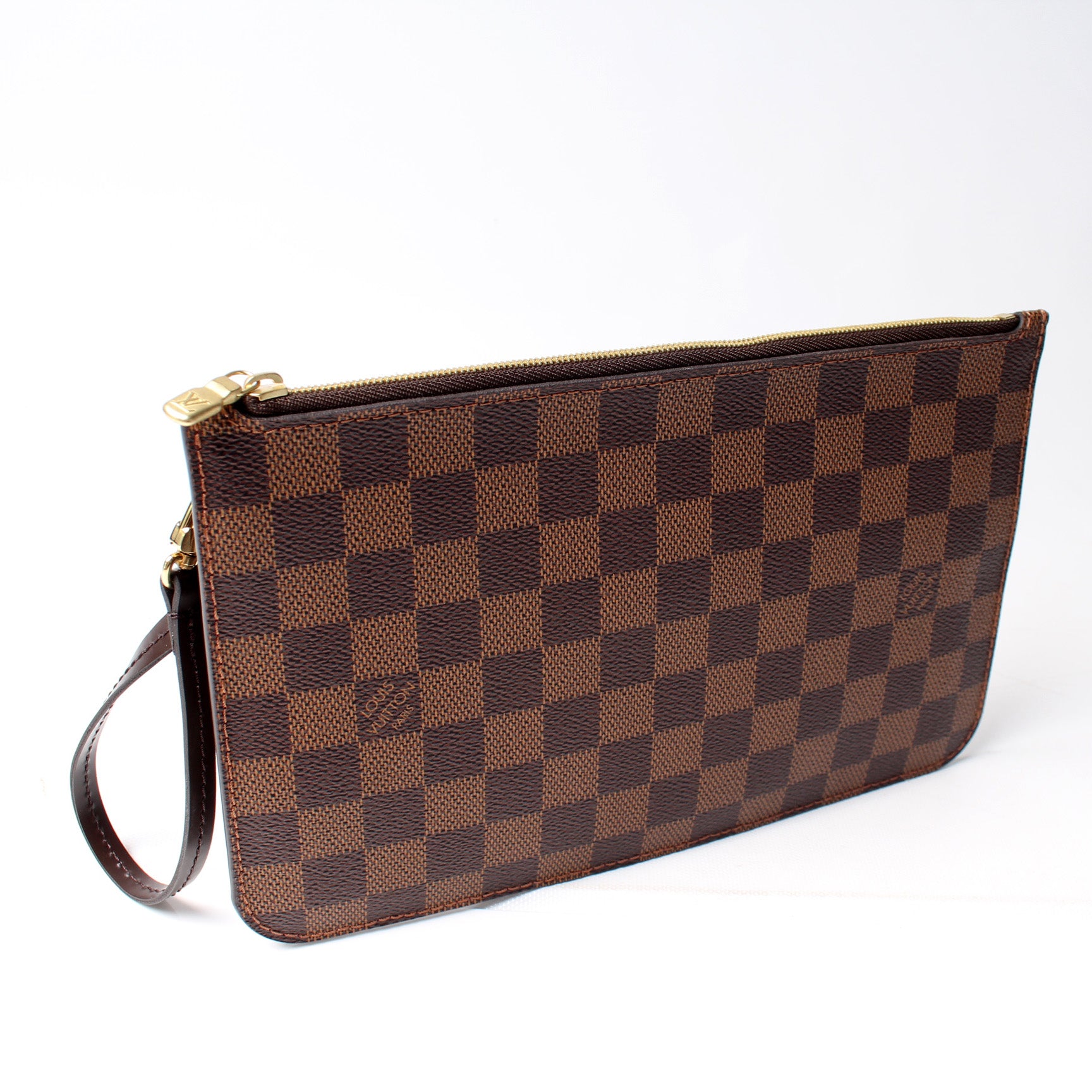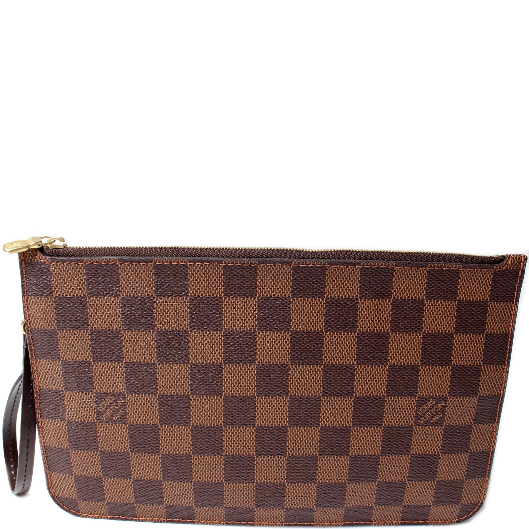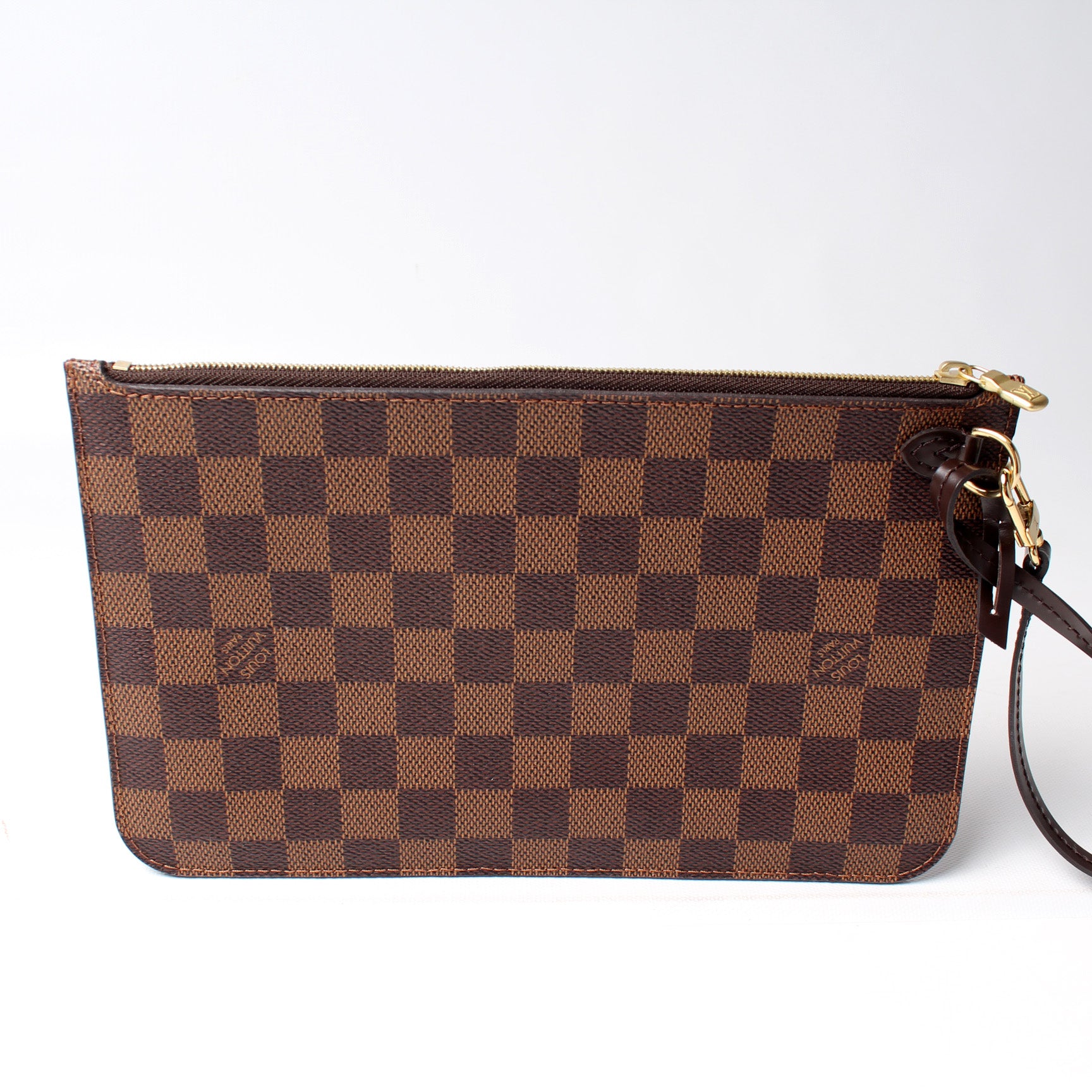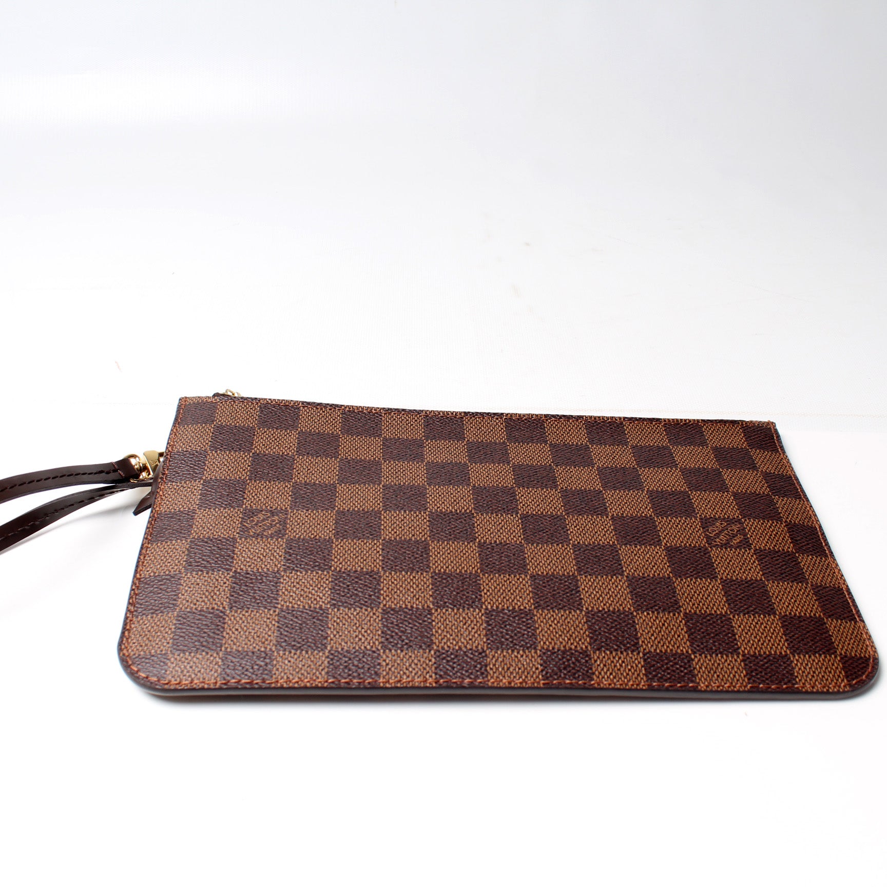 This pre-owned Louis Vuitton Pochette Only Neverfull is guaranteed 100% authentic. The exterior is in the classic Louis Vuitton Damier Ebene coated canvas.