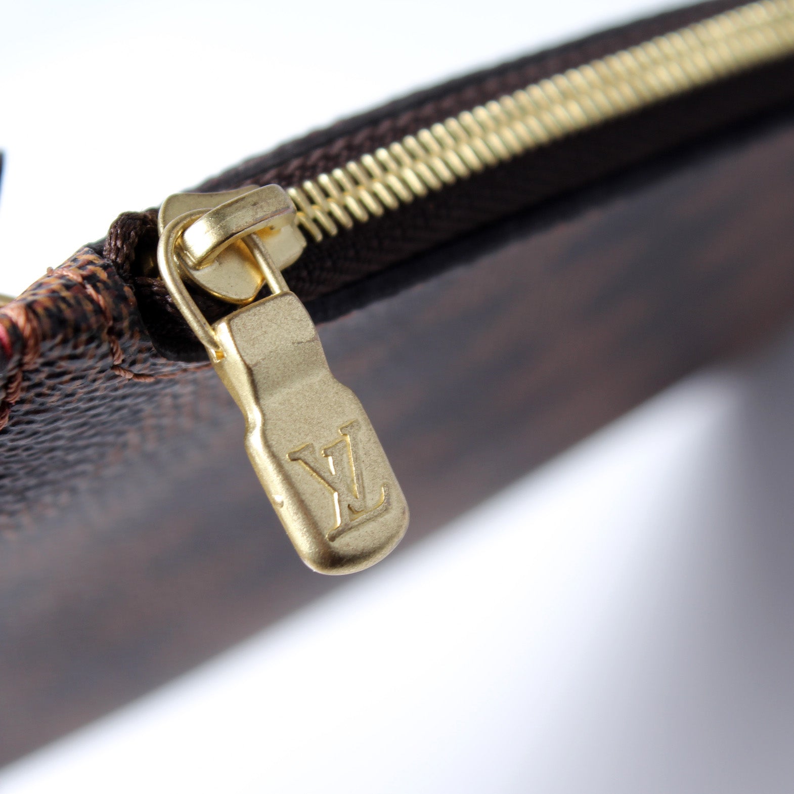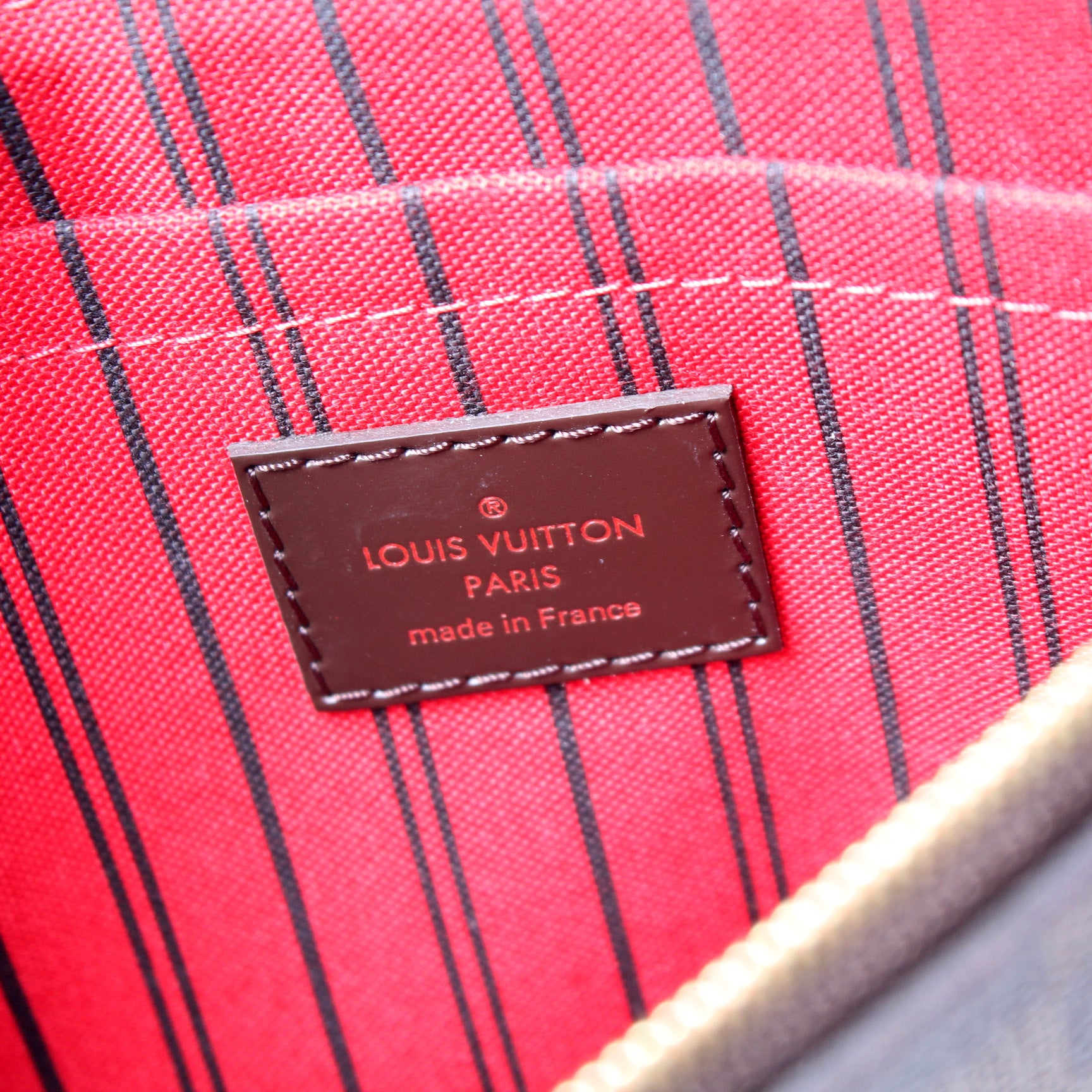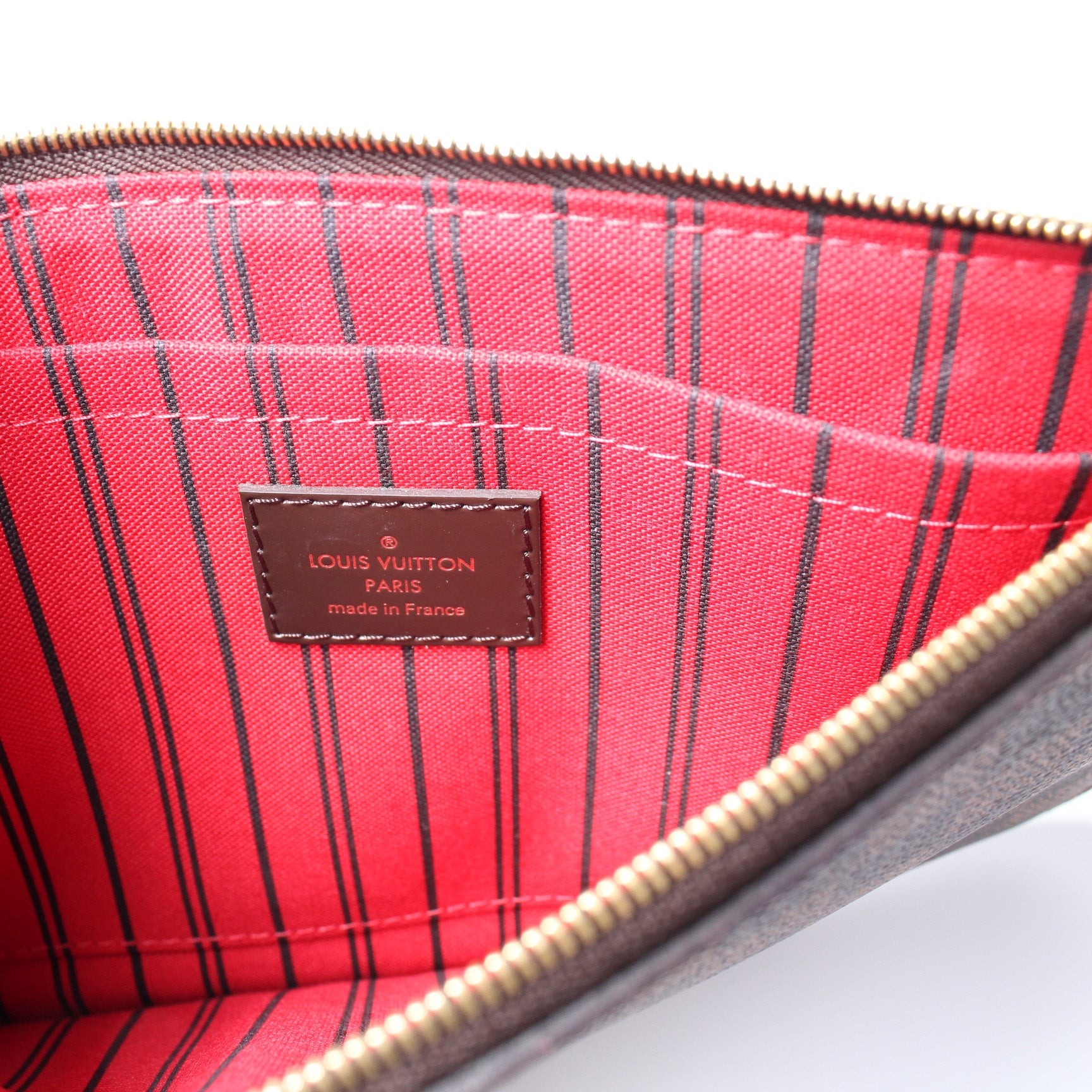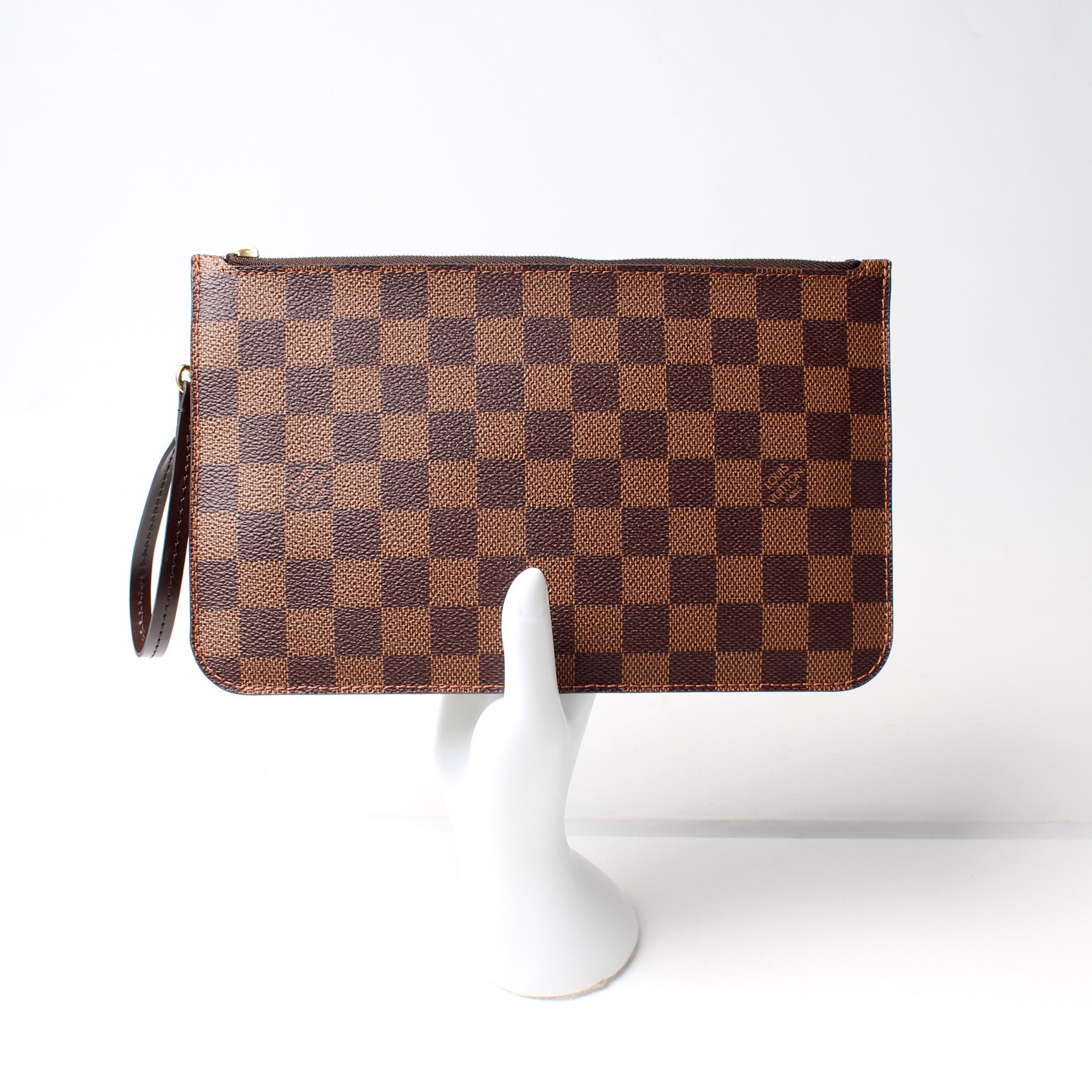 This pre-owned Louis Vuitton Pochette Only Neverfull is guaranteed 100% authentic. The exterior is in the classic Louis Vuitton Damier Ebene coated canvas.