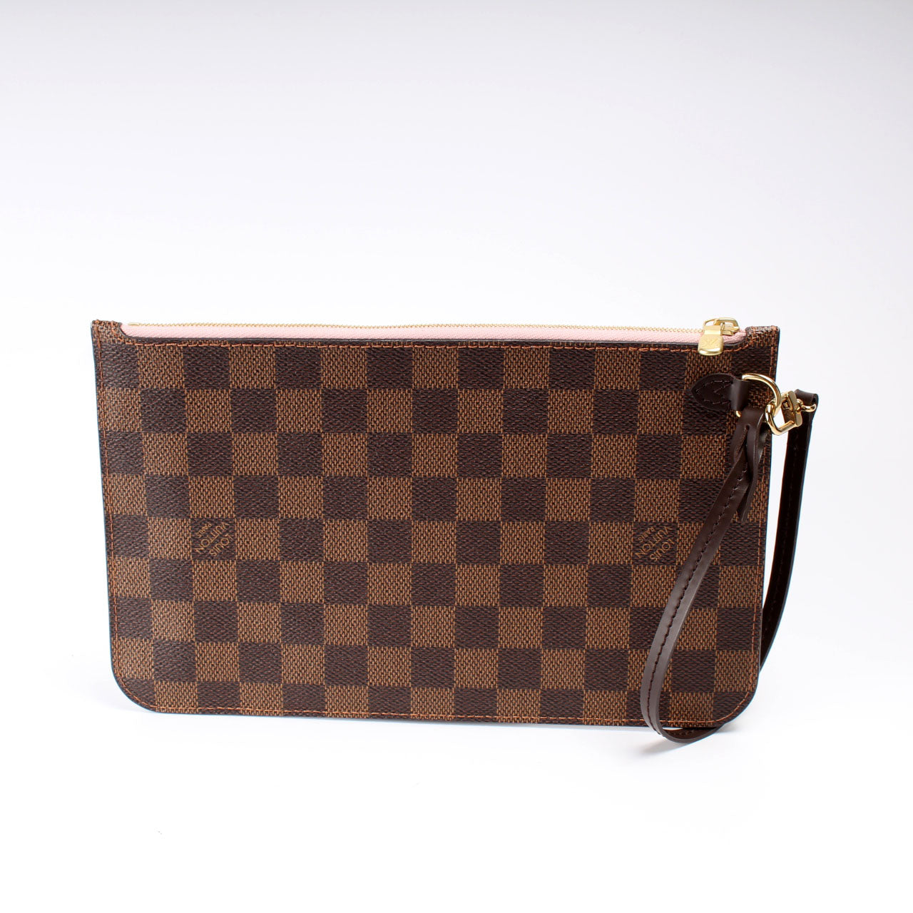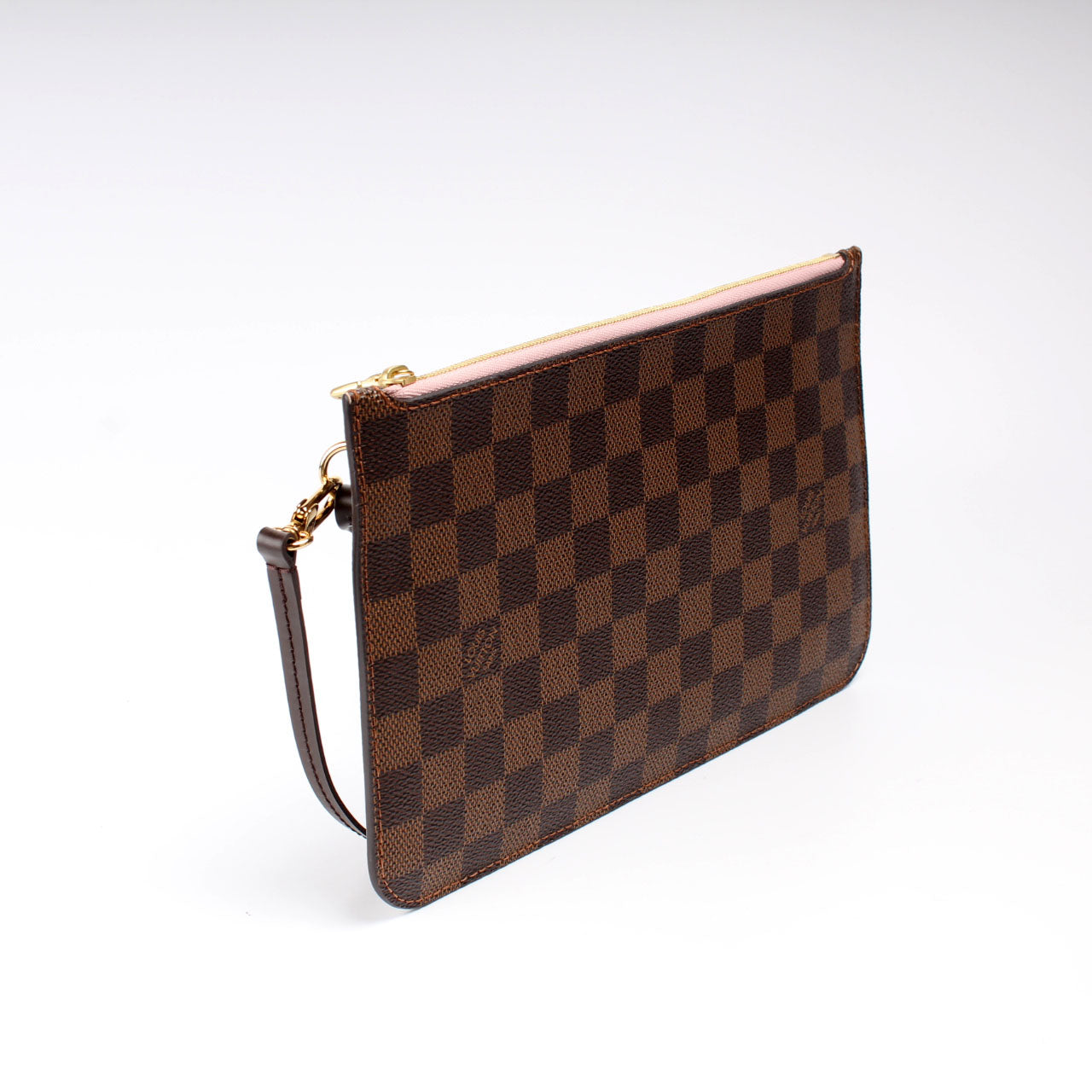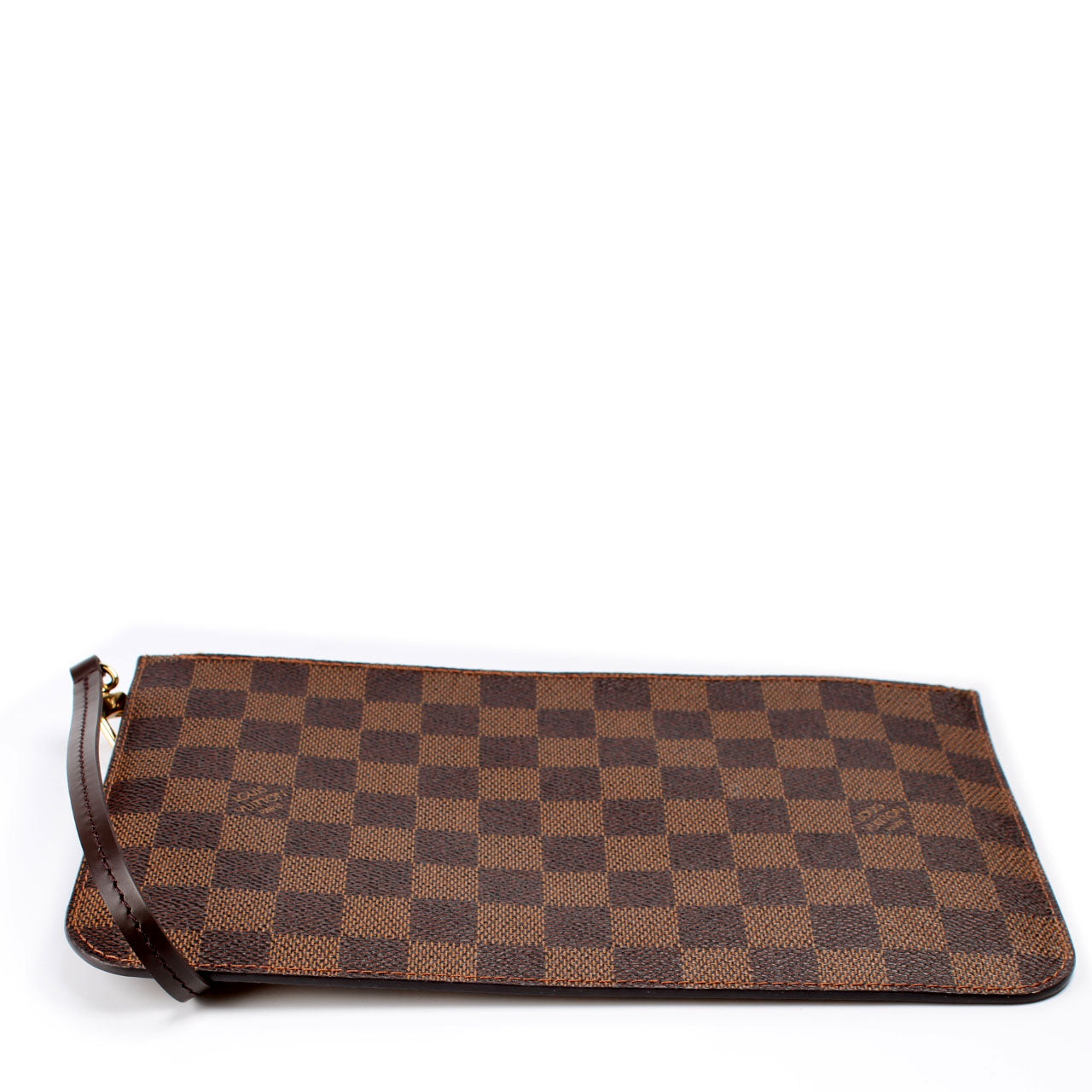 This pre-owned Louis Vuitton Pochette Only Neverfull is guaranteed 100% authentic. The exterior is in the classic Louis Vuitton Damier Ebene coated canvas.