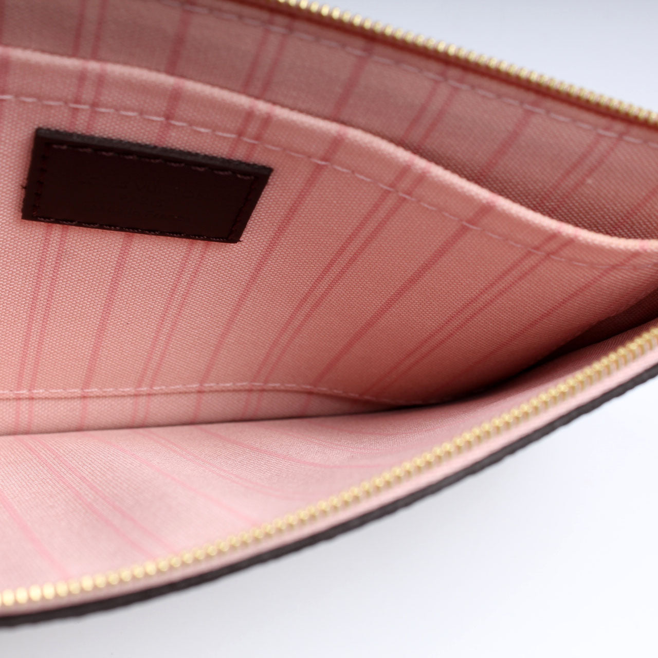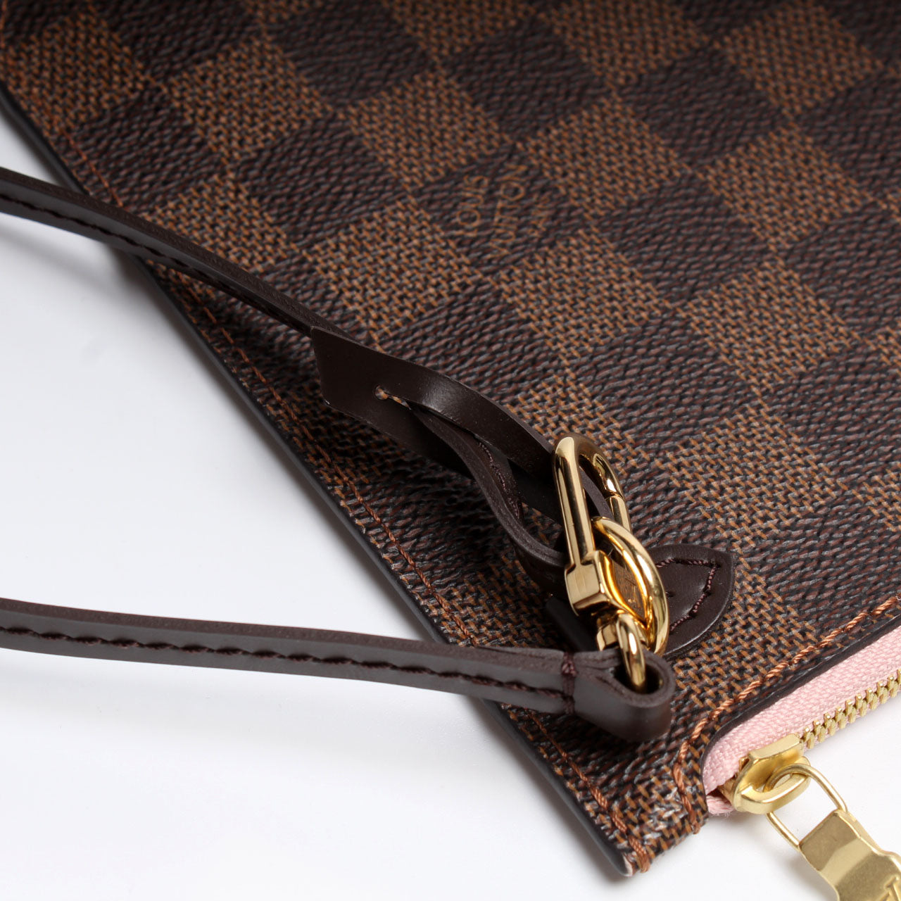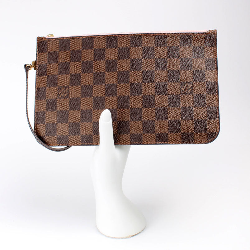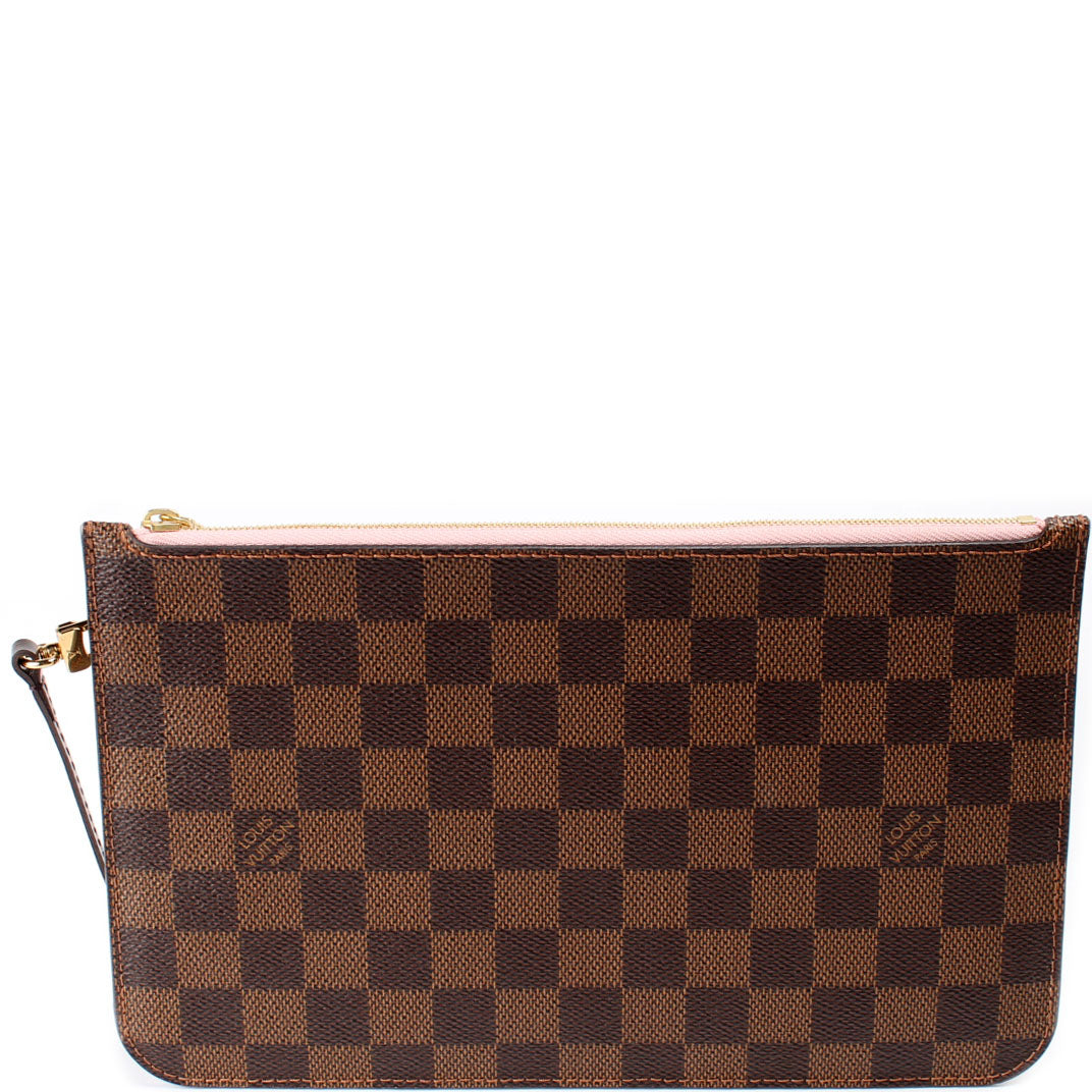 This pre-owned Louis Vuitton Pochette Only Neverfull is guaranteed 100% authentic. The exterior is in the classic Louis Vuitton Damier Ebene coated canvas.