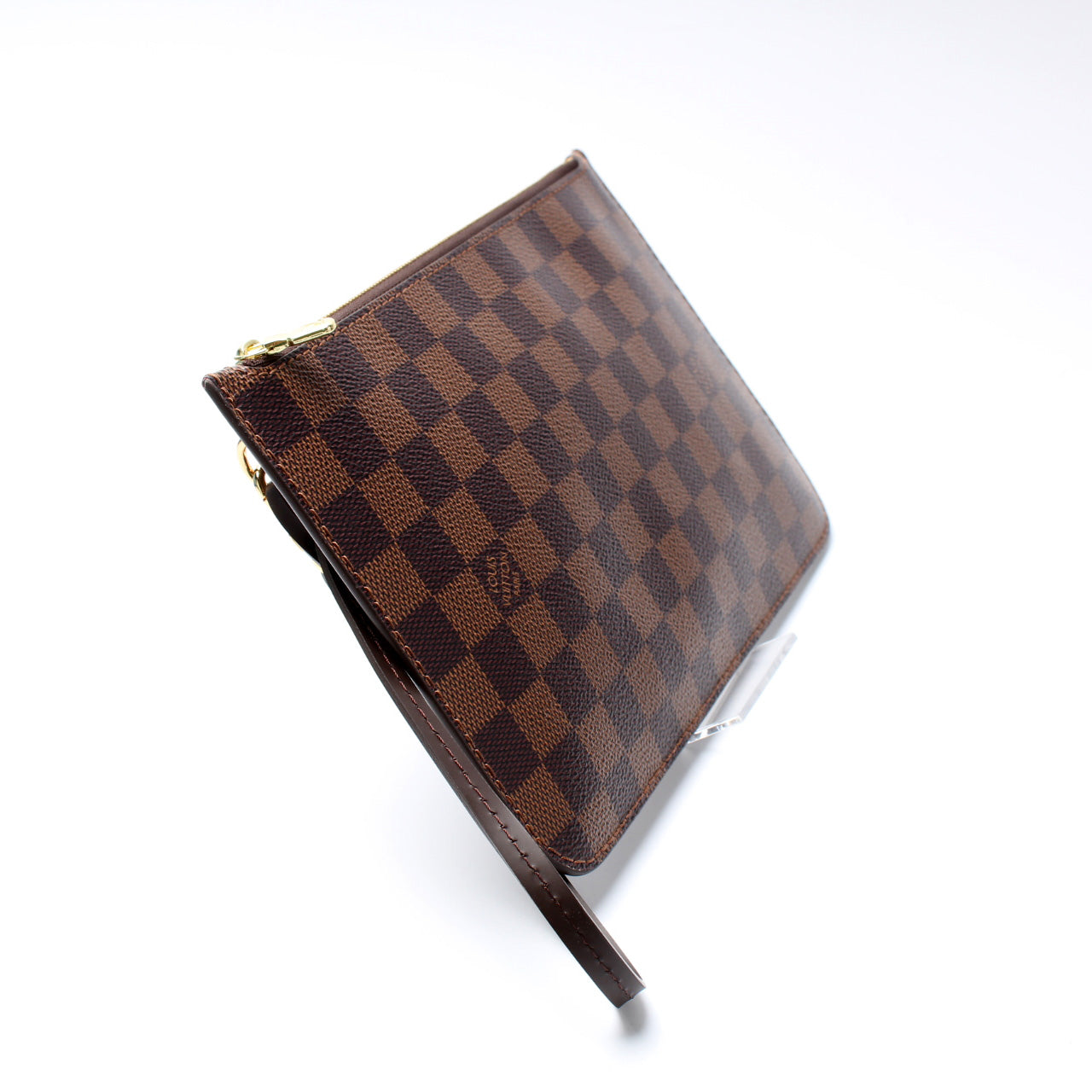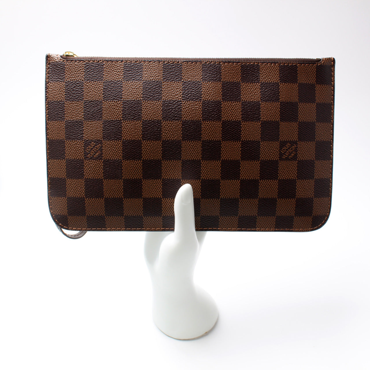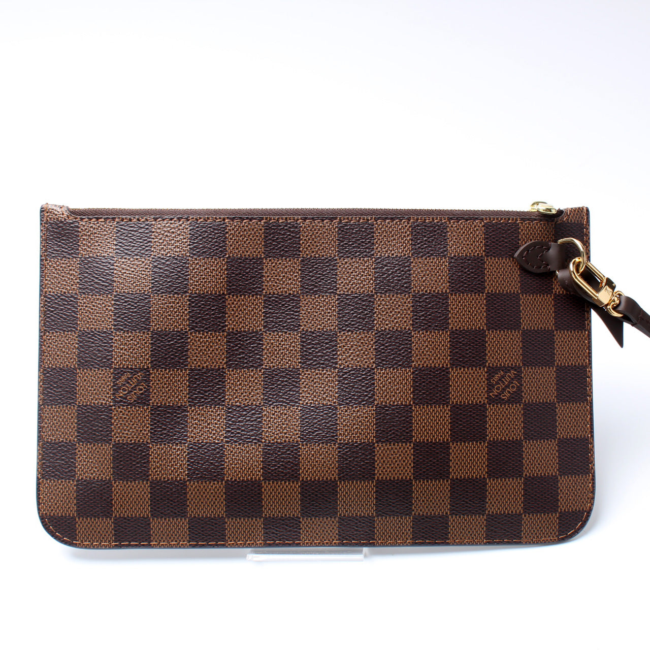 This pre-owned Louis Vuitton Pochette Only Neverfull is guaranteed 100% authentic. The exterior is in the classic Louis Vuitton Damier Ebene coated canvas.