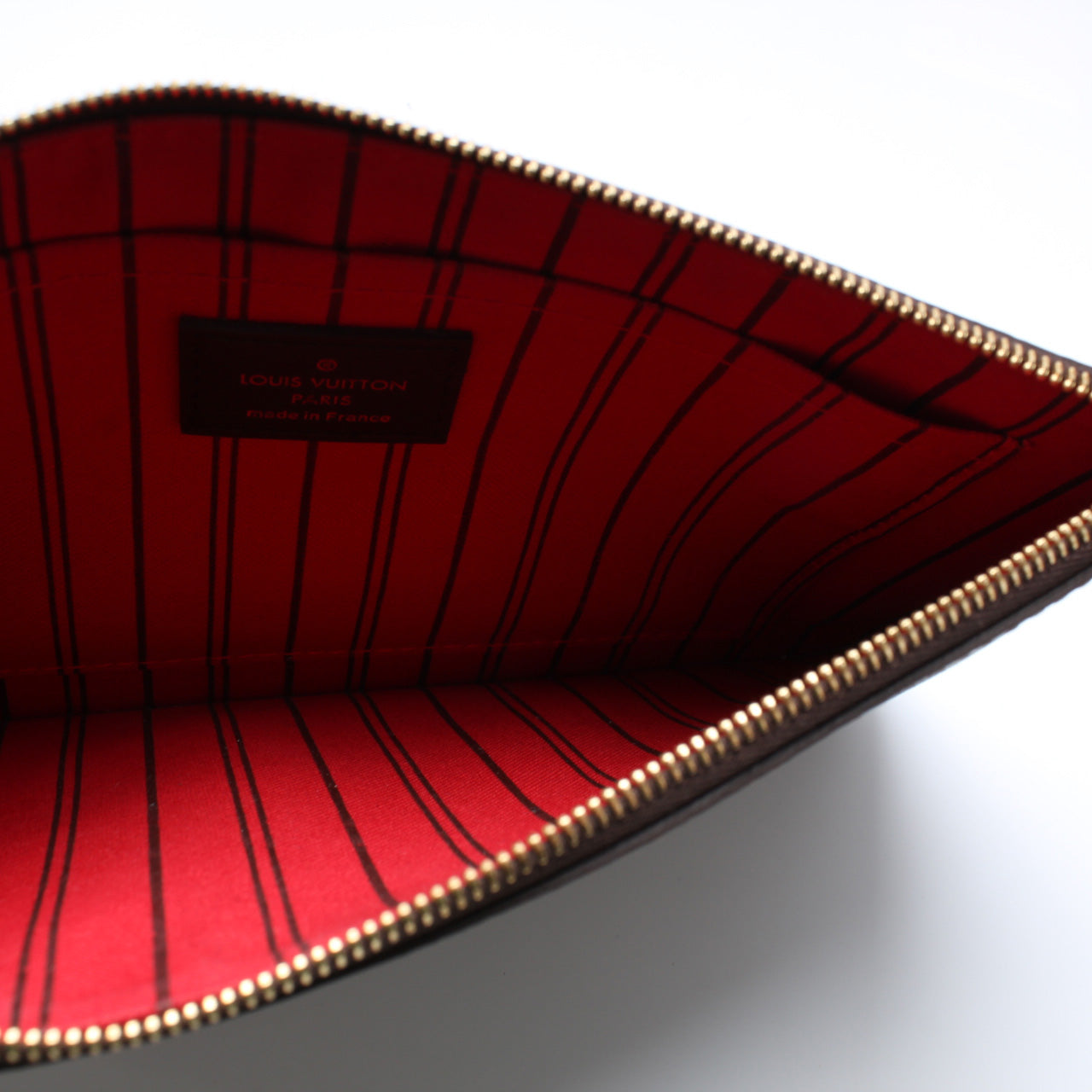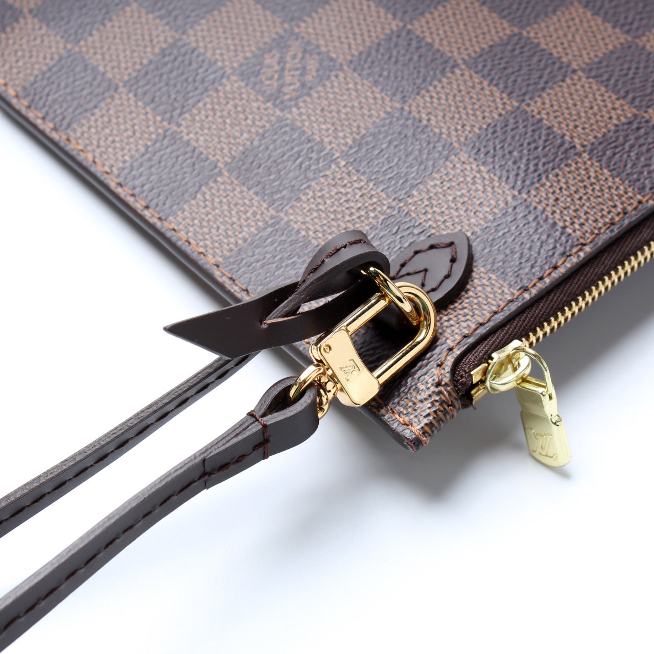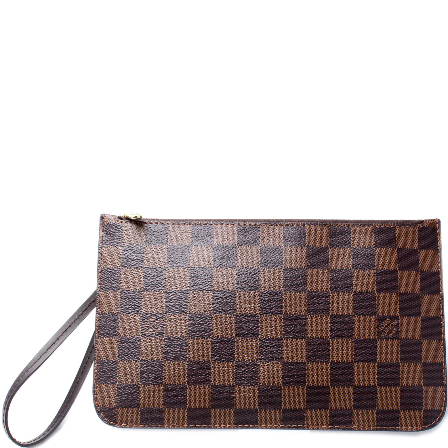 This pre-owned Louis Vuitton Pochette Only Neverfull is guaranteed 100% authentic. The exterior is in the classic Louis Vuitton Damier Ebene coated canvas.