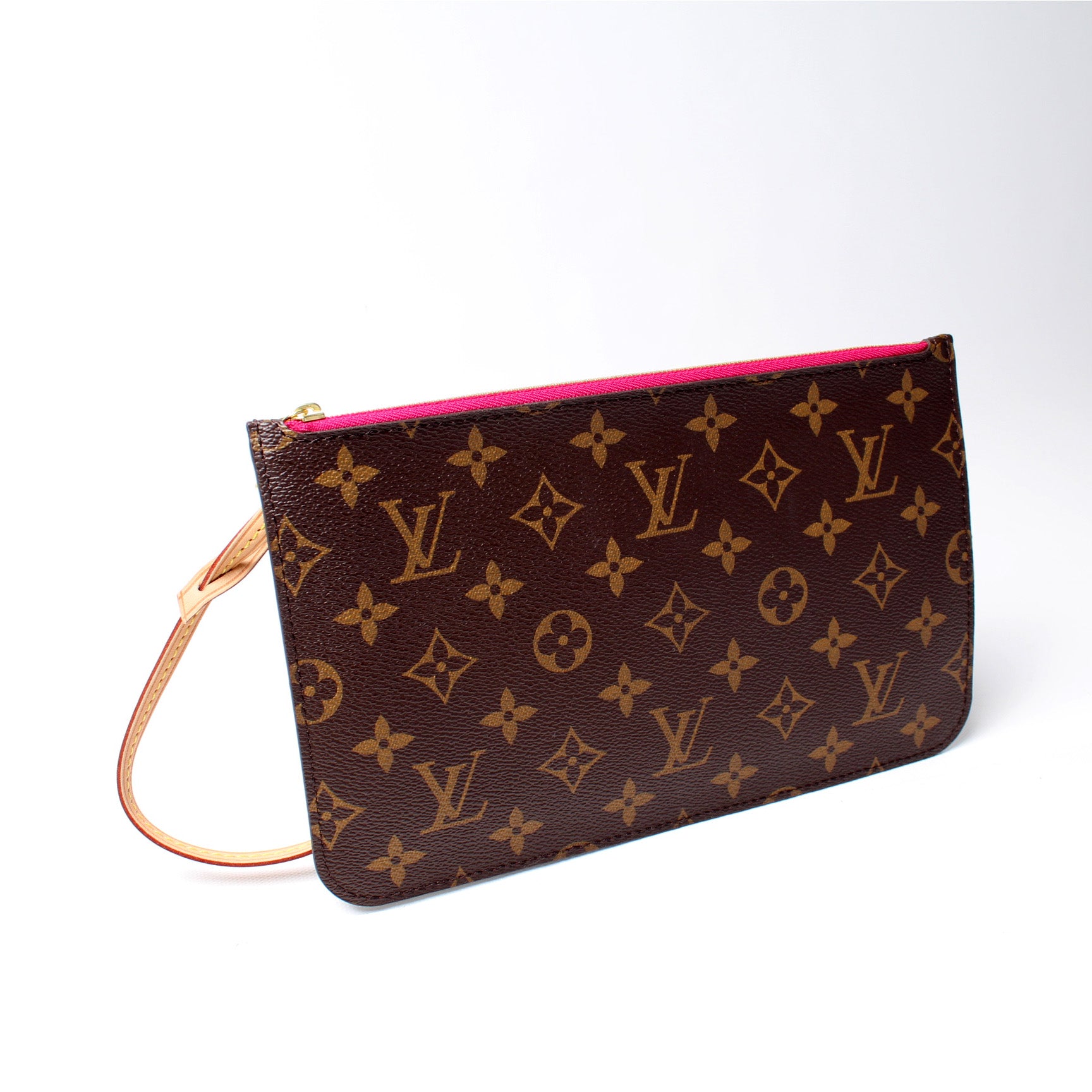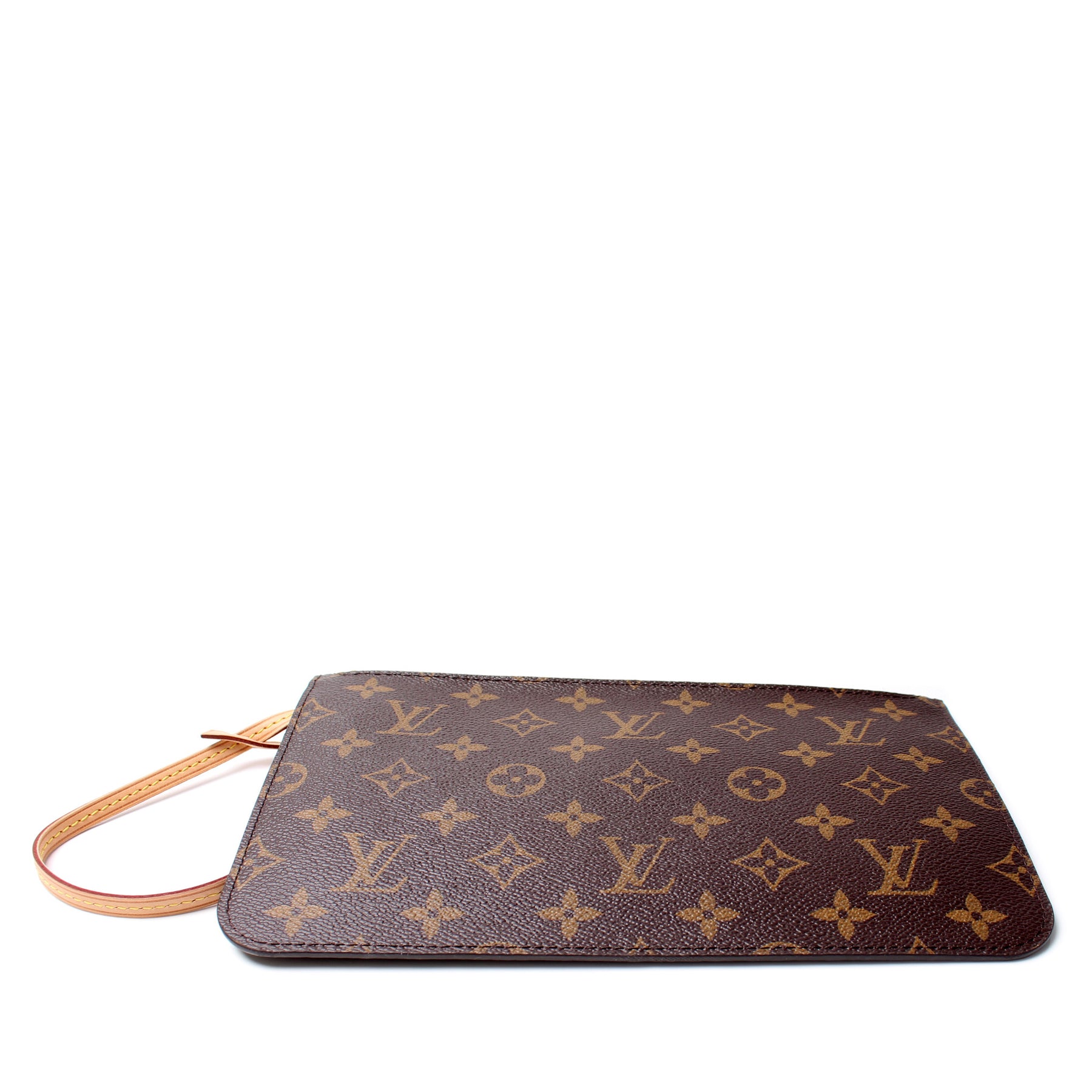 This pre-owned Louis Vuitton Pochette Only Neverfull is guaranteed 100% authentic. The exterior is in the classic Louis Vuitton Monogram coated canvas.