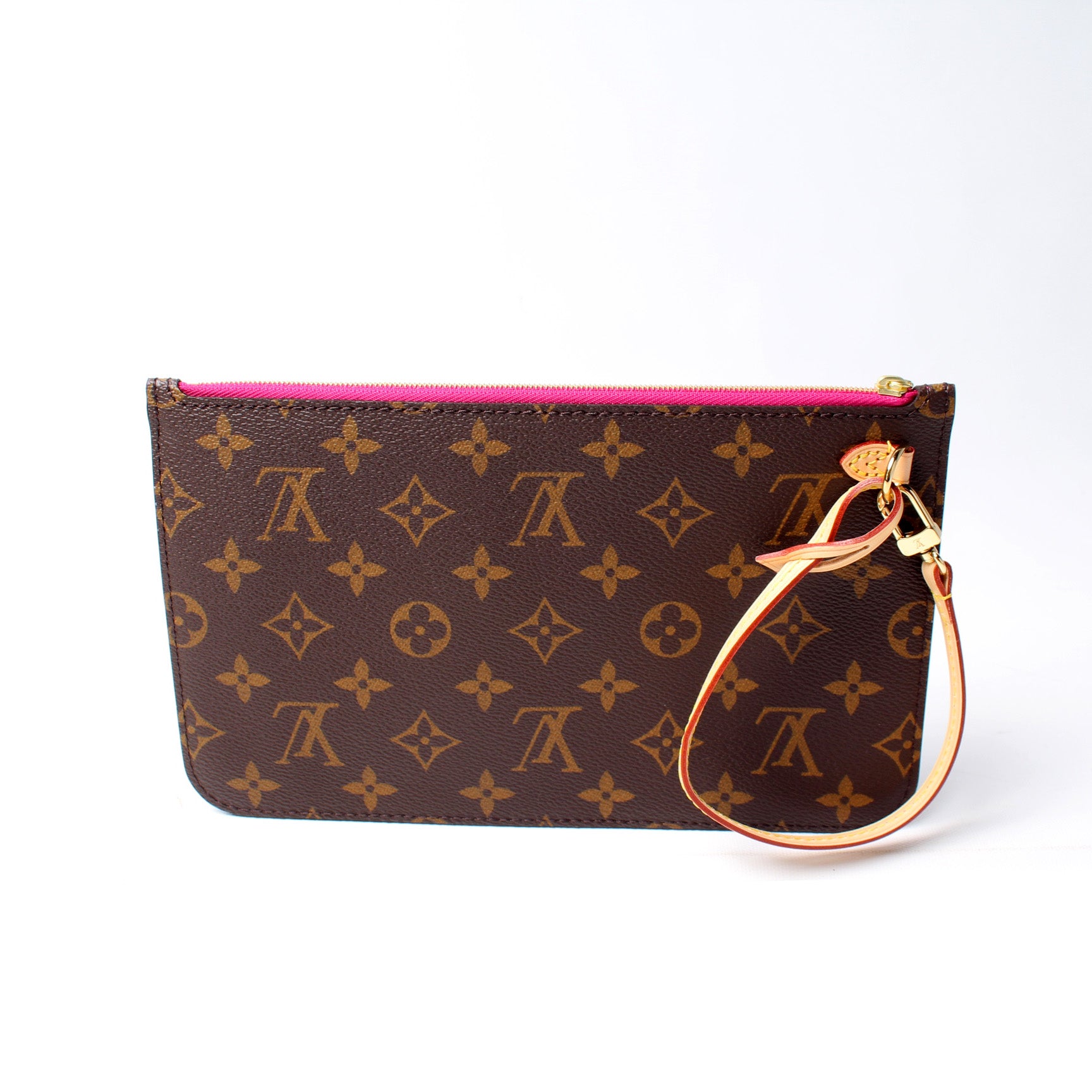 This pre-owned Louis Vuitton Pochette Only Neverfull is guaranteed 100% authentic. The exterior is in the classic Louis Vuitton Monogram coated canvas.