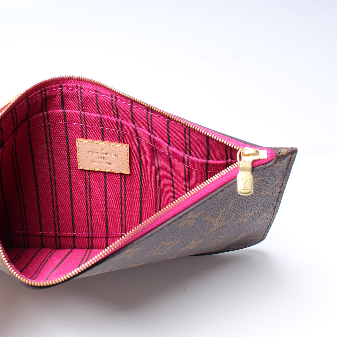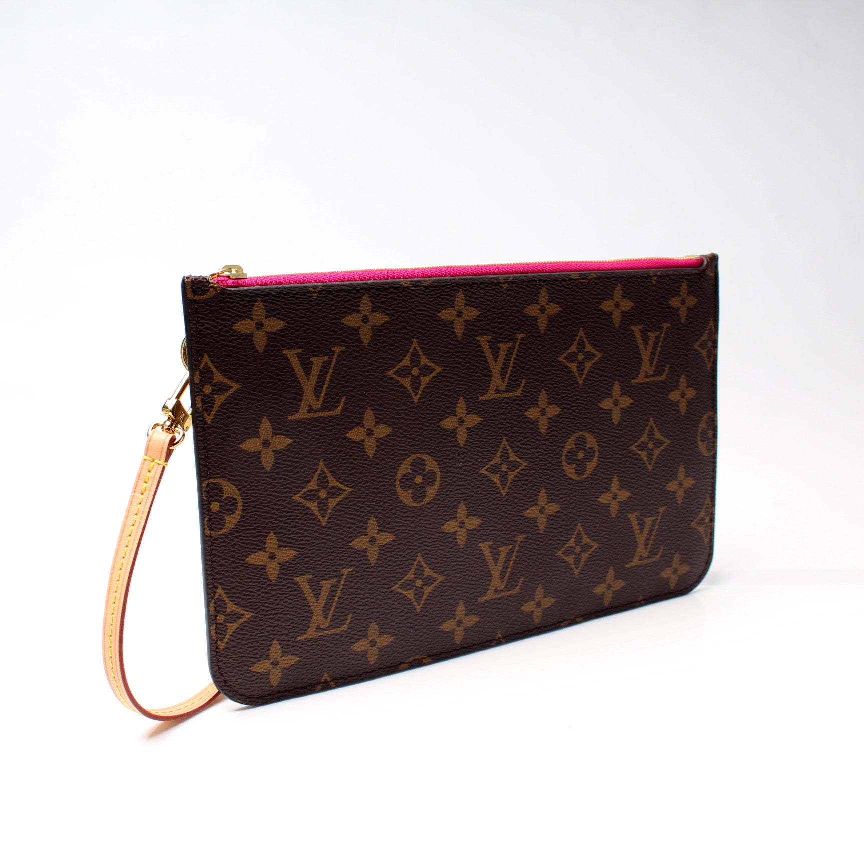 This pre-owned Louis Vuitton Pochette Only Neverfull is guaranteed 100% authentic. The exterior is in the classic Louis Vuitton Monogram coated canvas.