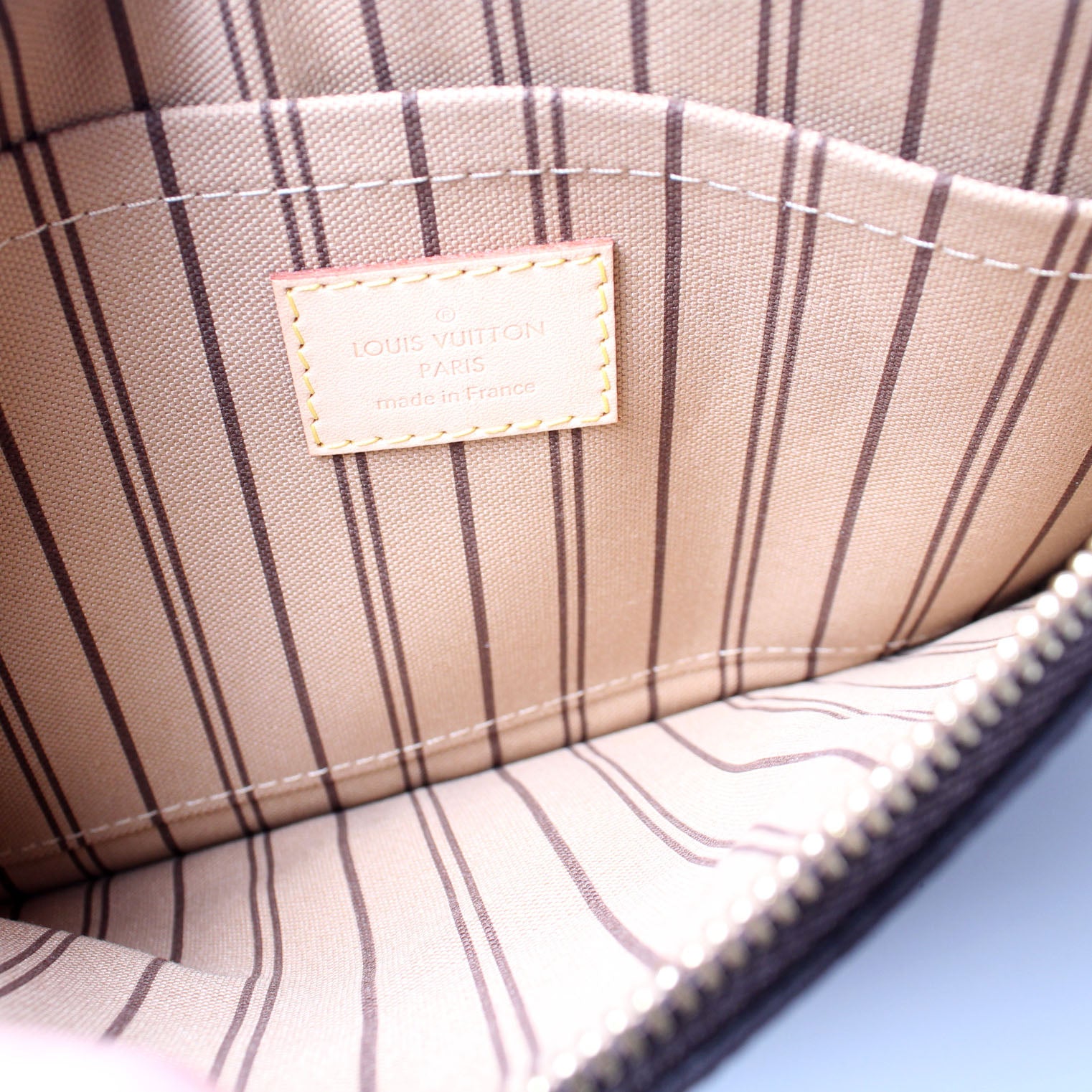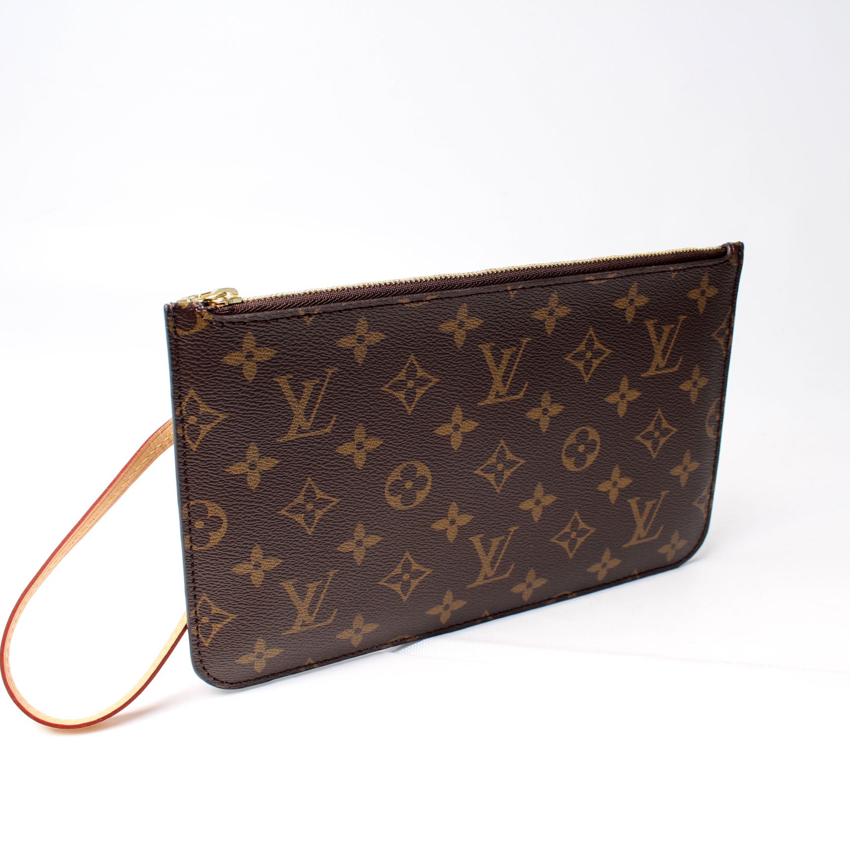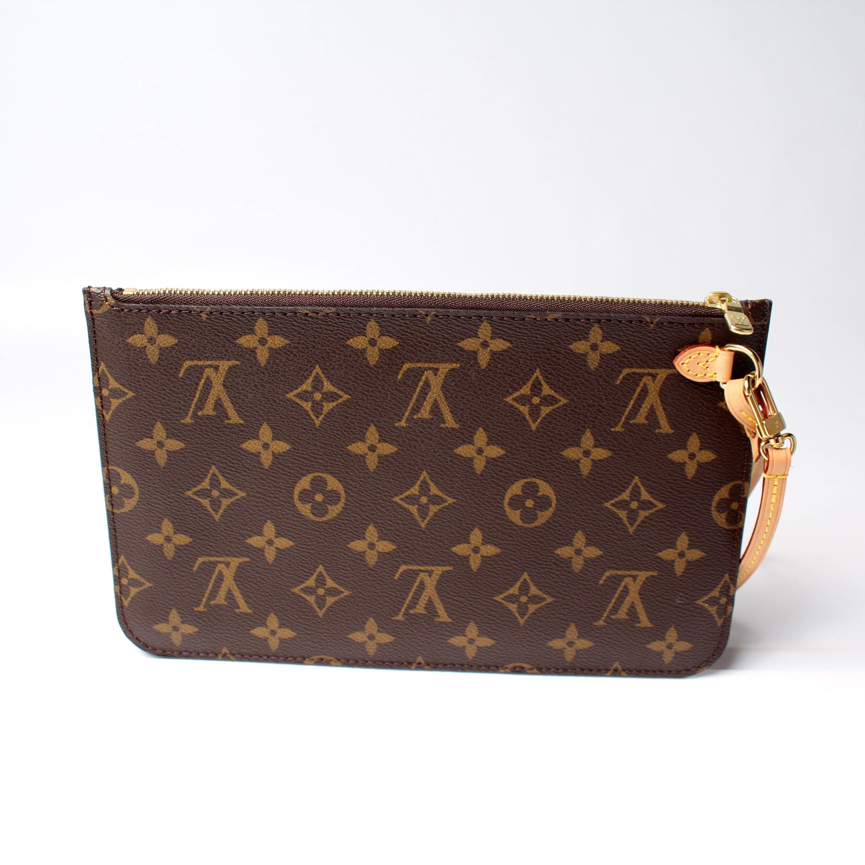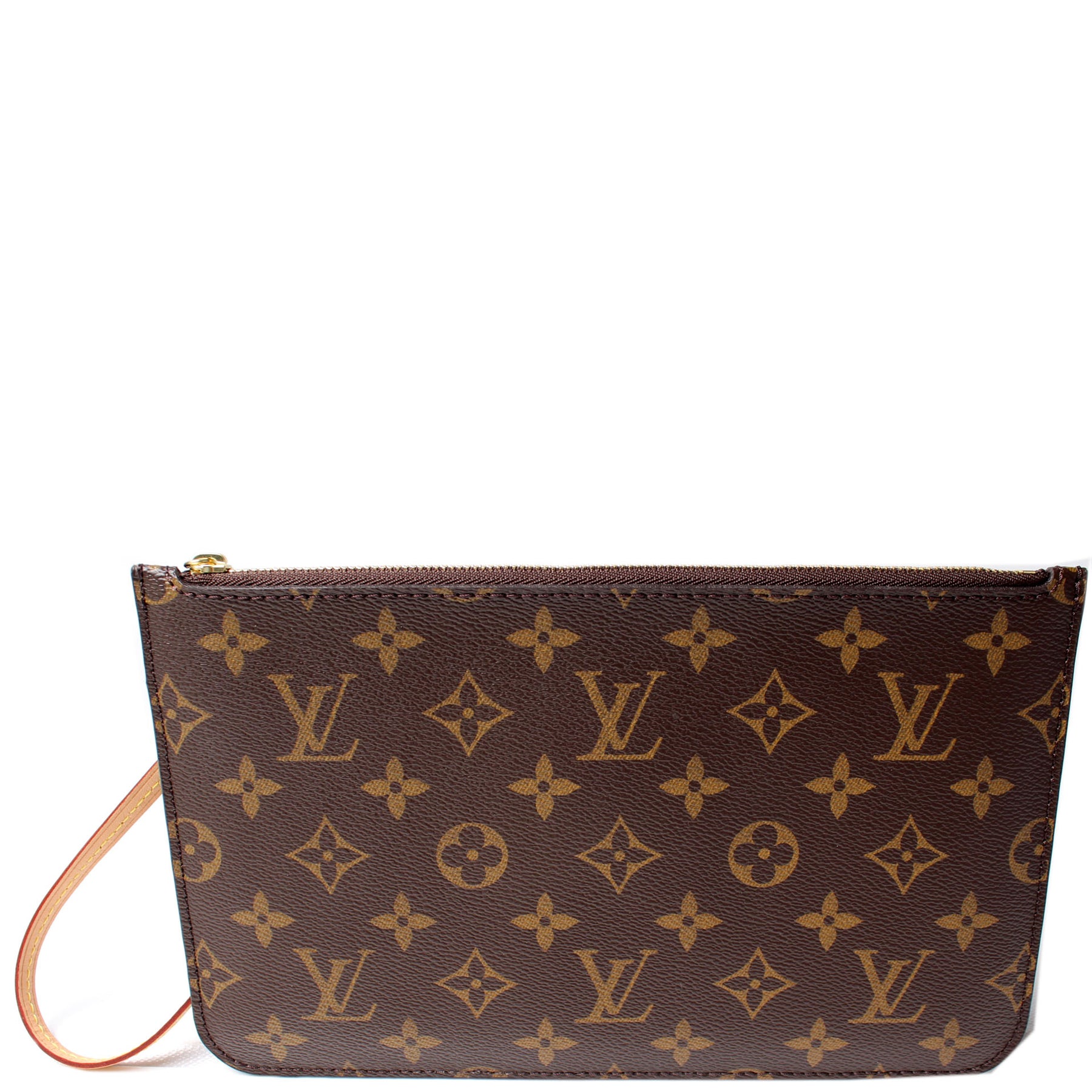 This pre-owned Louis Vuitton Pochette Only Neverfull is guaranteed 100% authentic. The exterior is in the classic Louis Vuitton Monogram coated canvas.