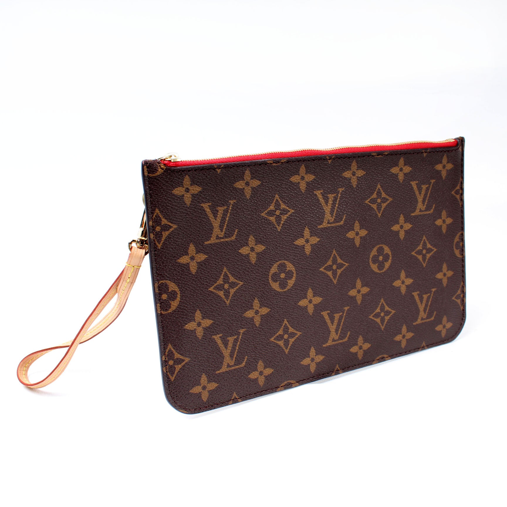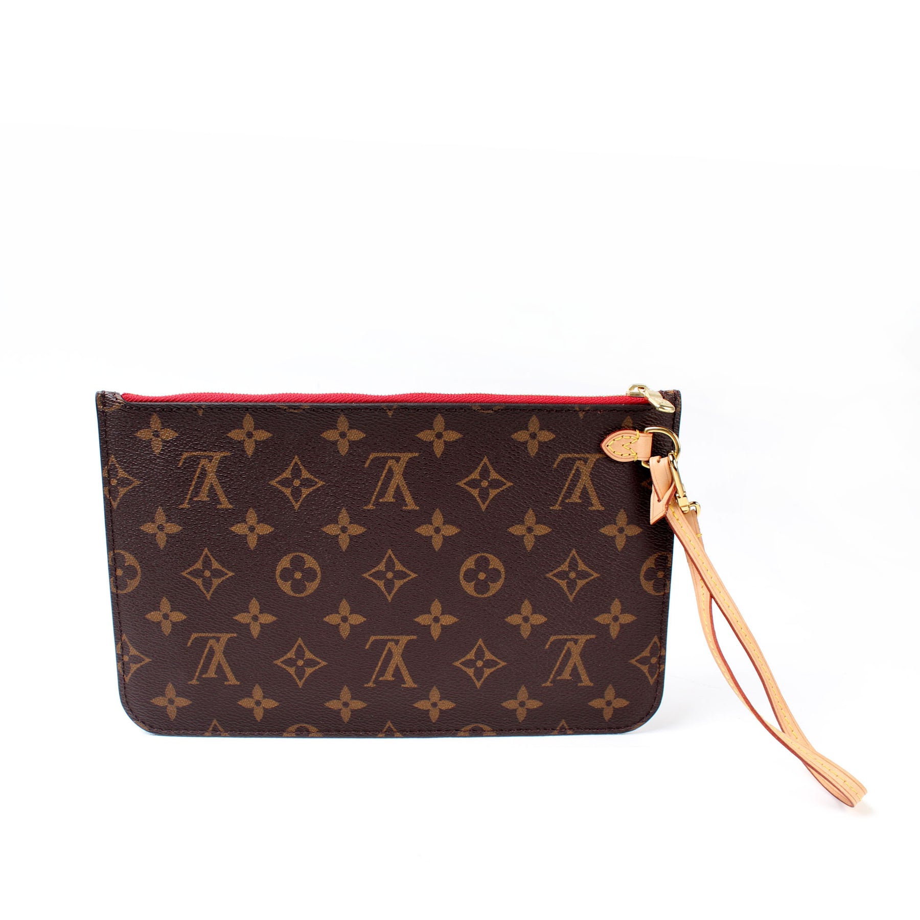 This pre-owned Louis Vuitton Pochette Only Neverfull is guaranteed 100% authentic. The exterior is in the classic Louis Vuitton Monogram coated canvas.