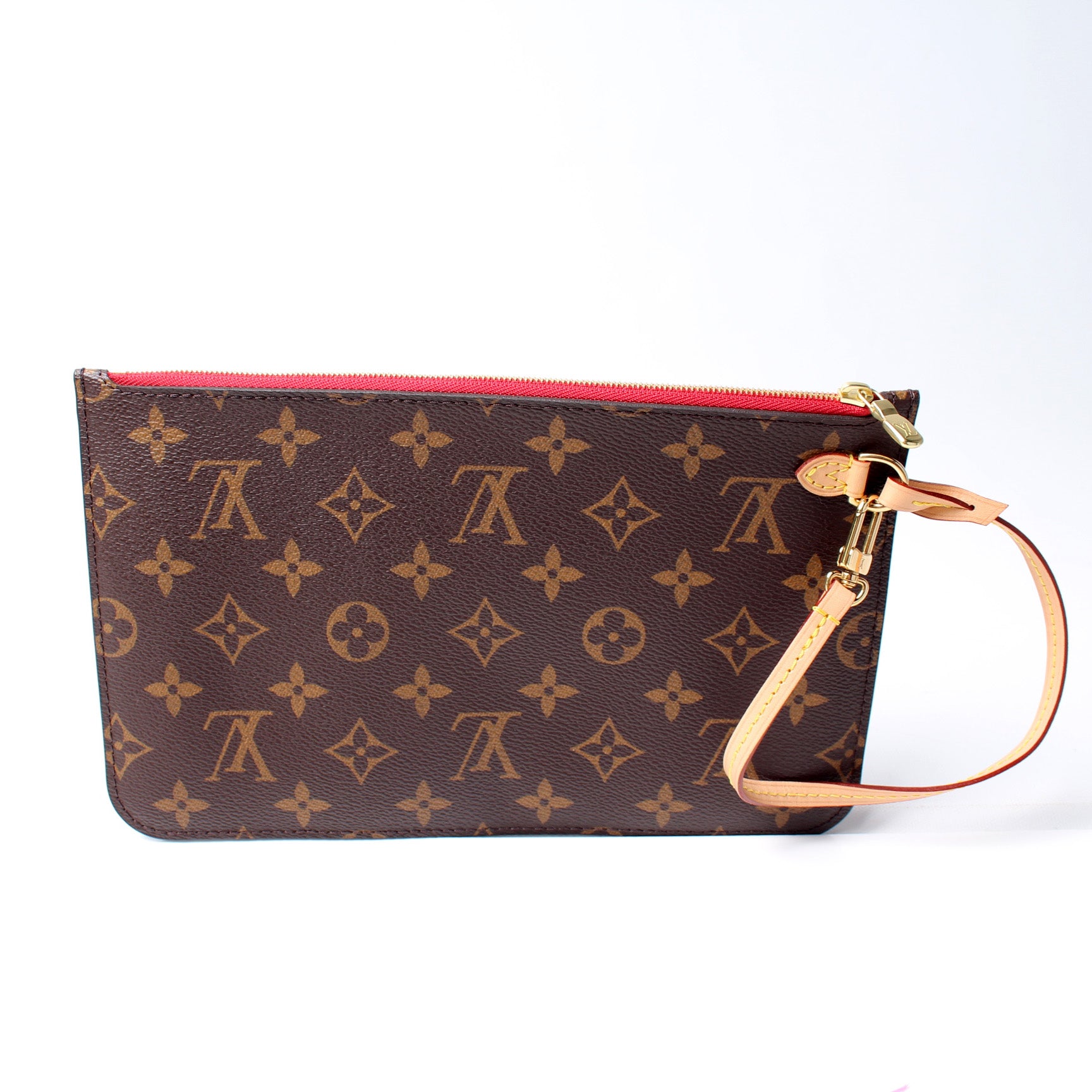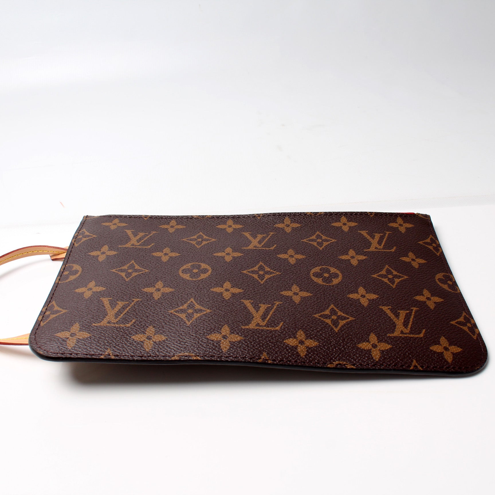 This pre-owned Louis Vuitton Pochette Only Neverfull is guaranteed 100% authentic. The exterior is in the classic Louis Vuitton Monogram coated canvas.