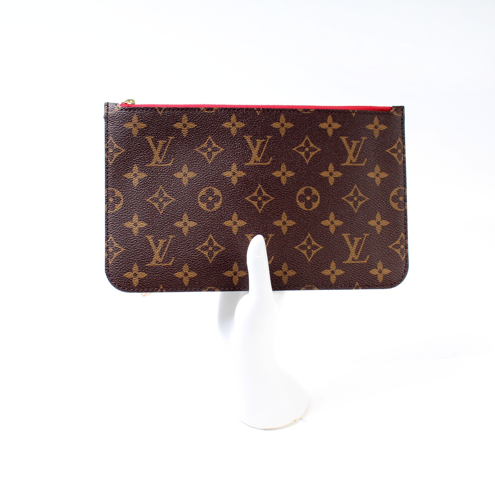 This pre-owned Louis Vuitton Pochette Only Neverfull is guaranteed 100% authentic. The exterior is in the classic Louis Vuitton Monogram coated canvas.