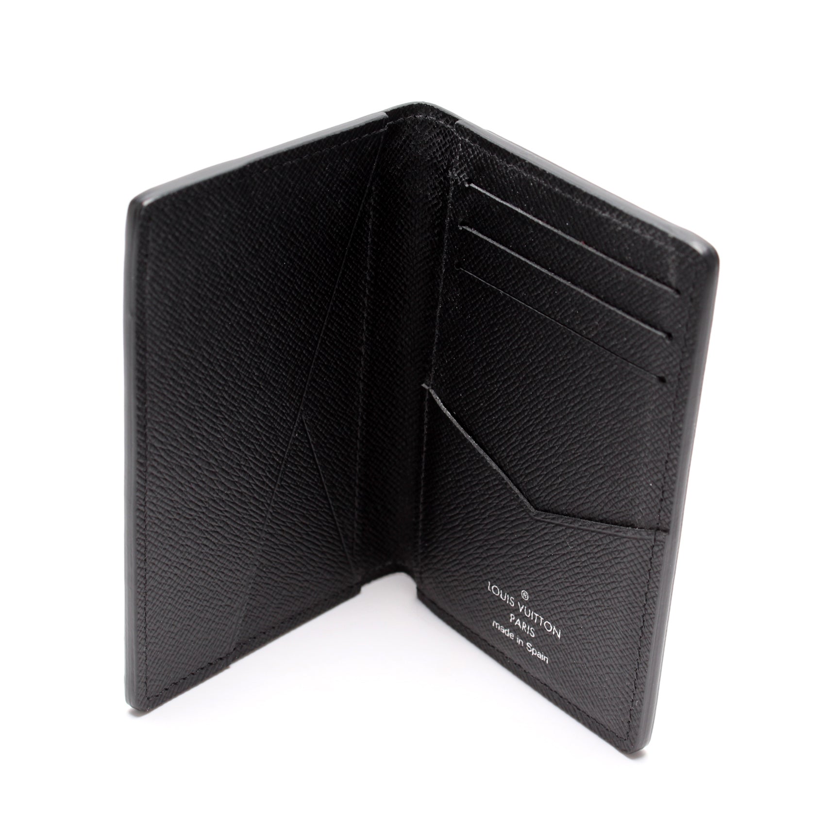 This pre-owned Louis Vuitton Pocket Organizer NM is guaranteed 100% authentic. The exterior is in the classic Louis Vuitton Eclipse coated canvas.