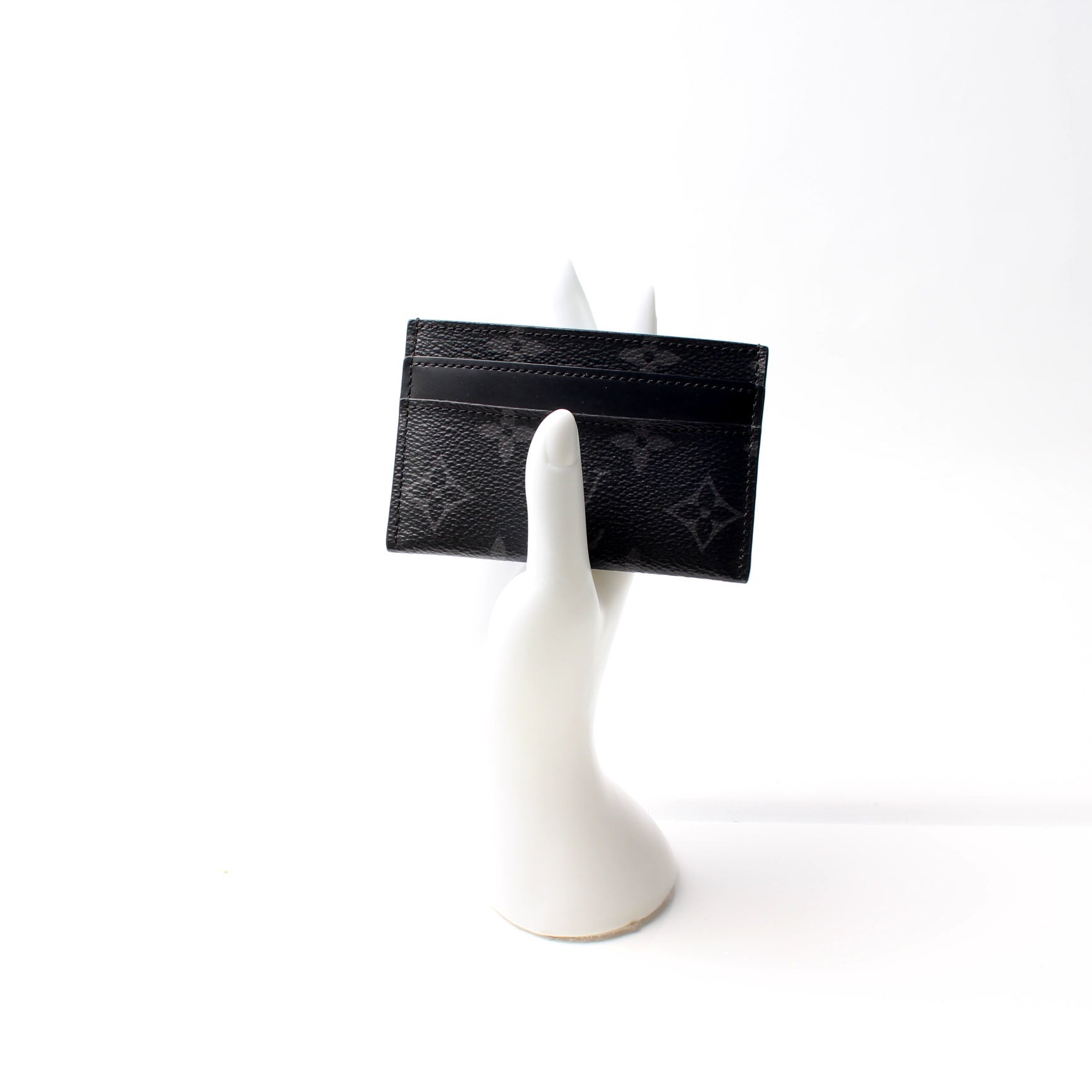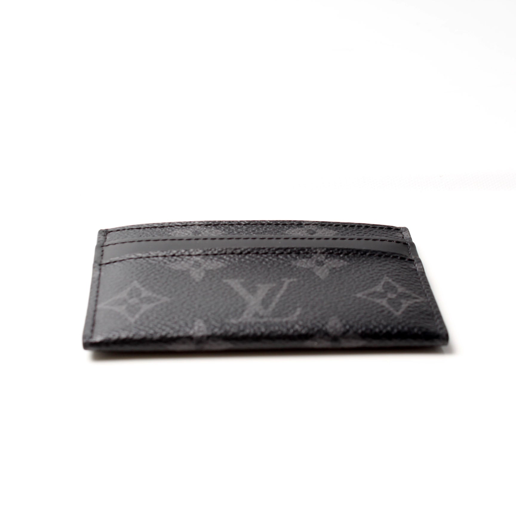 This pre-owned Louis Vuitton Neo Porte Cartes Card Holder is guaranteed 100% authentic. The exterior is in the classic eclipse monogram coated canvas.