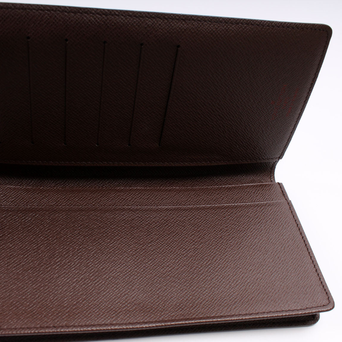 This pre-owned Louis Vuitton Porte Cartes Yen is guaranteed 100% authentic. The exterior is in the classic Louis Vuitton Damier Ebene coated canvas.