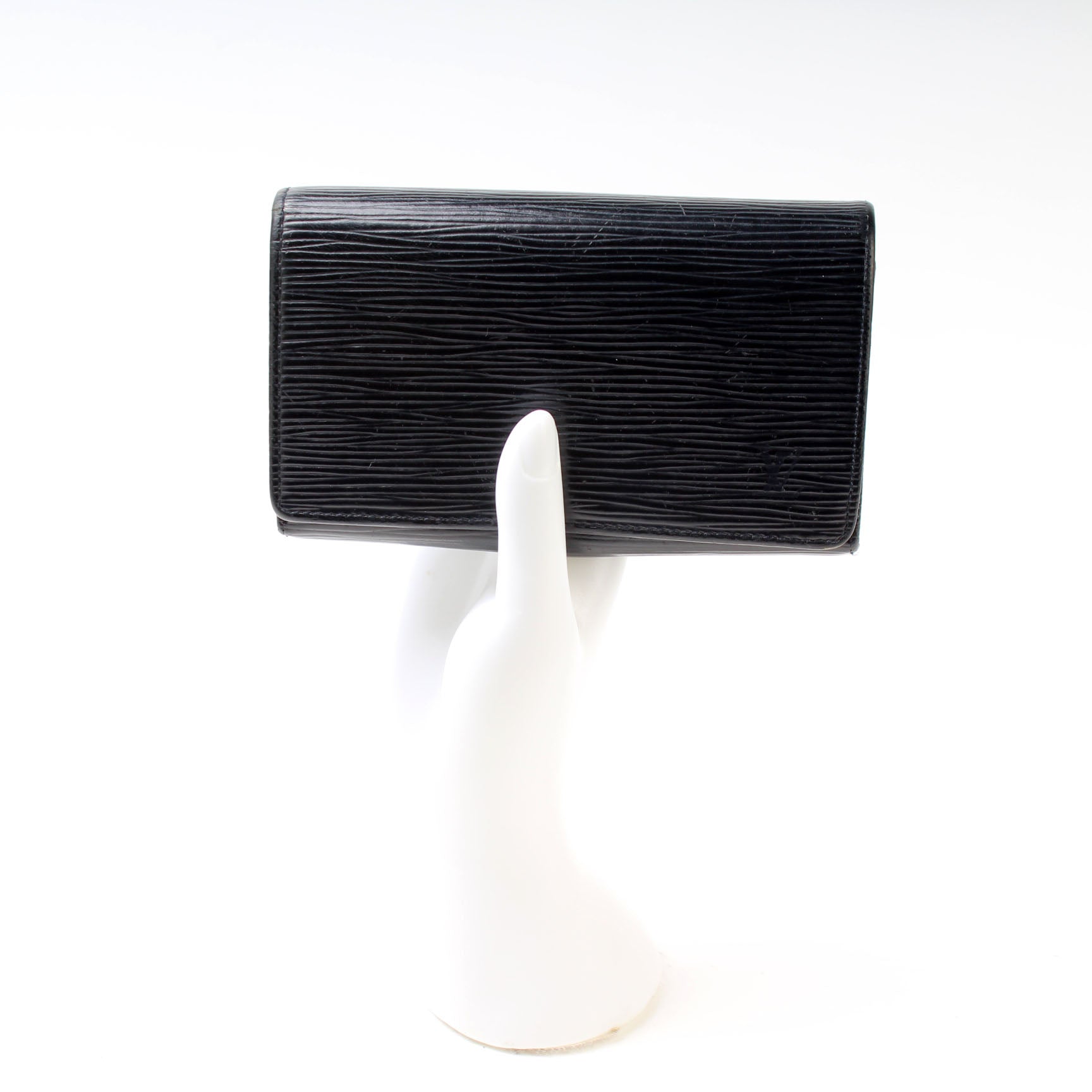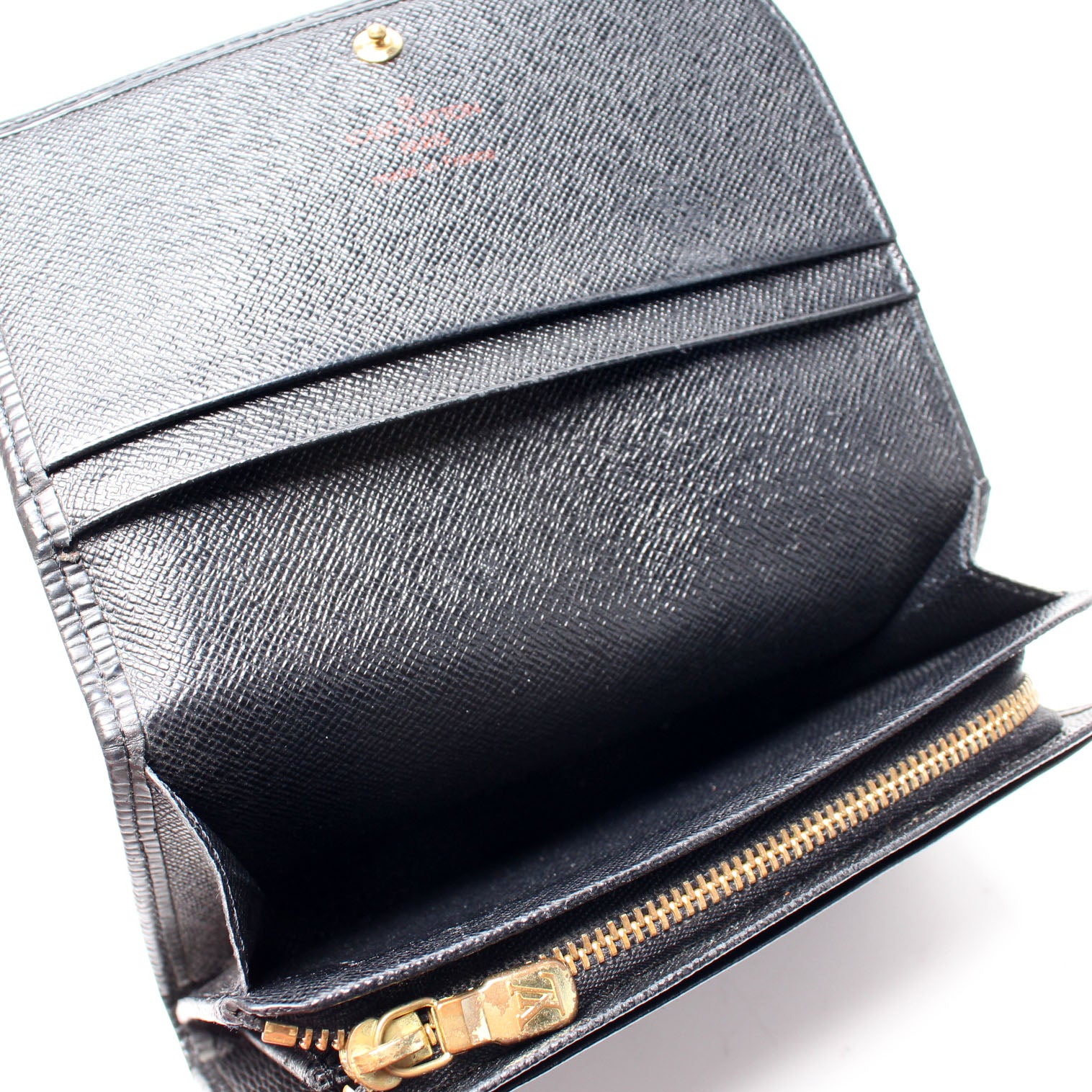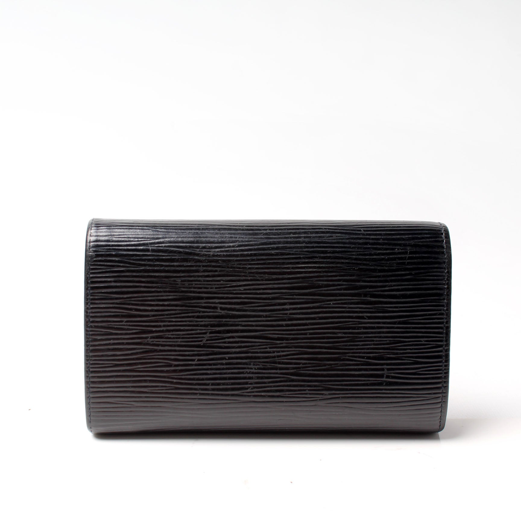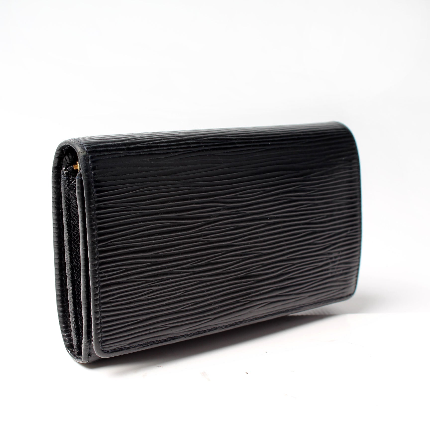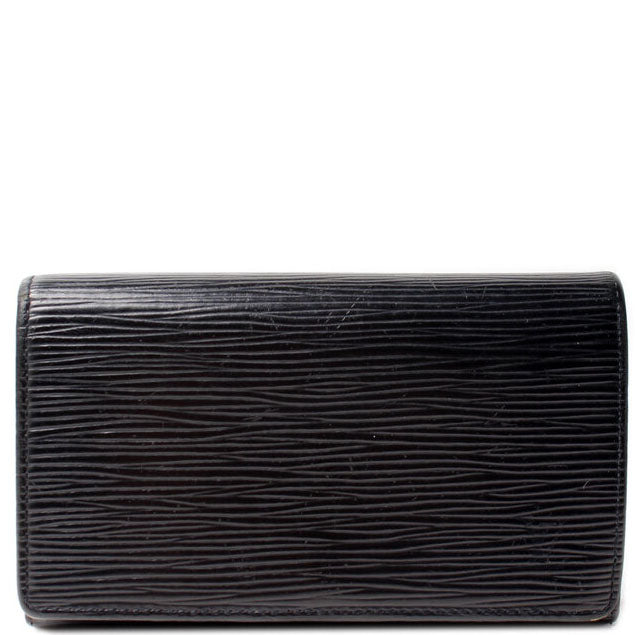 This pre-owned Louis Vuitton Pochette Porte Monnaie Billets Tres Wallet is guaranteed 100% authentic. The exterior is in the classic Louis Vuitton Epi leather.