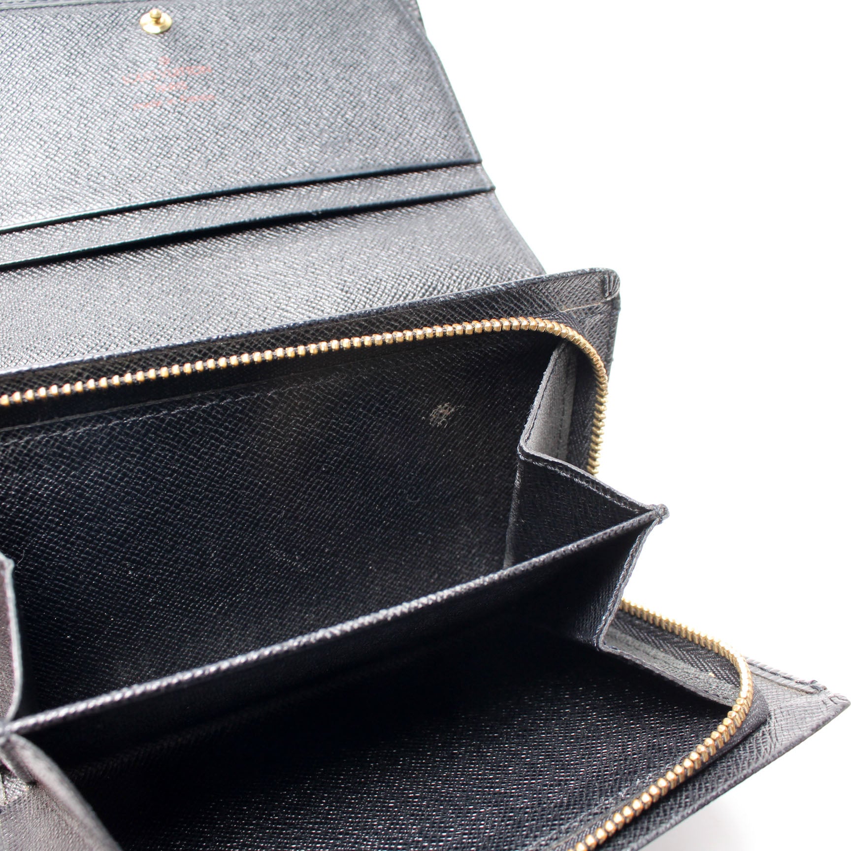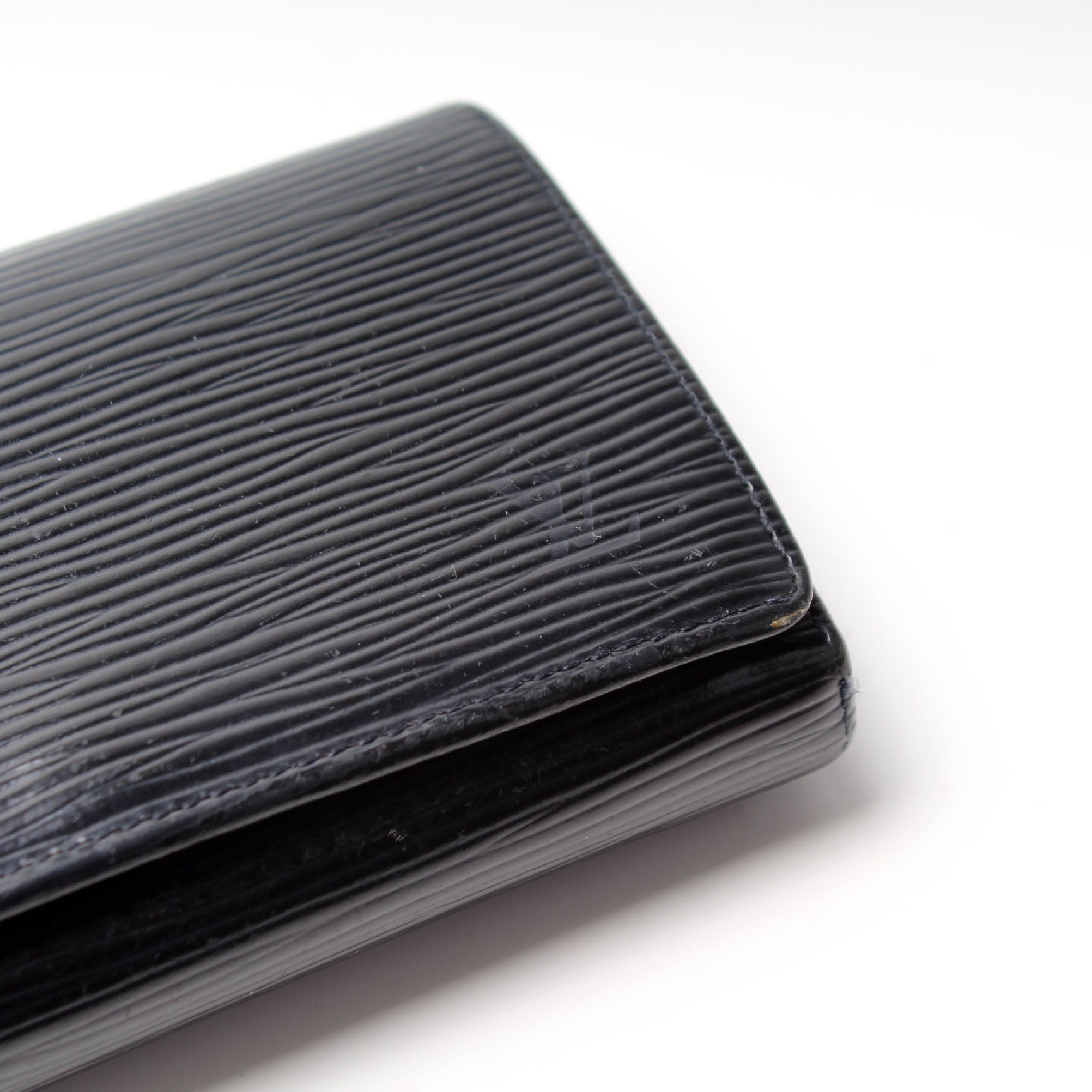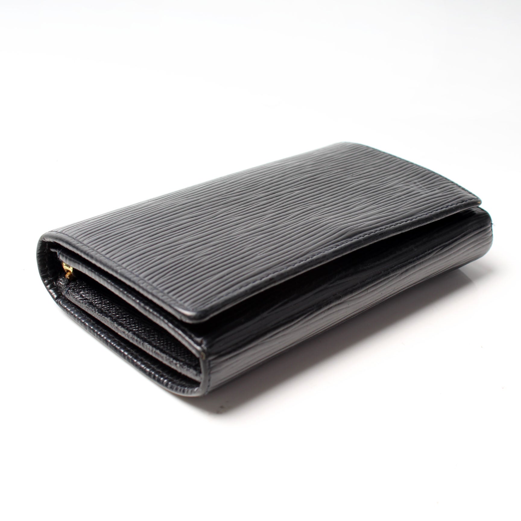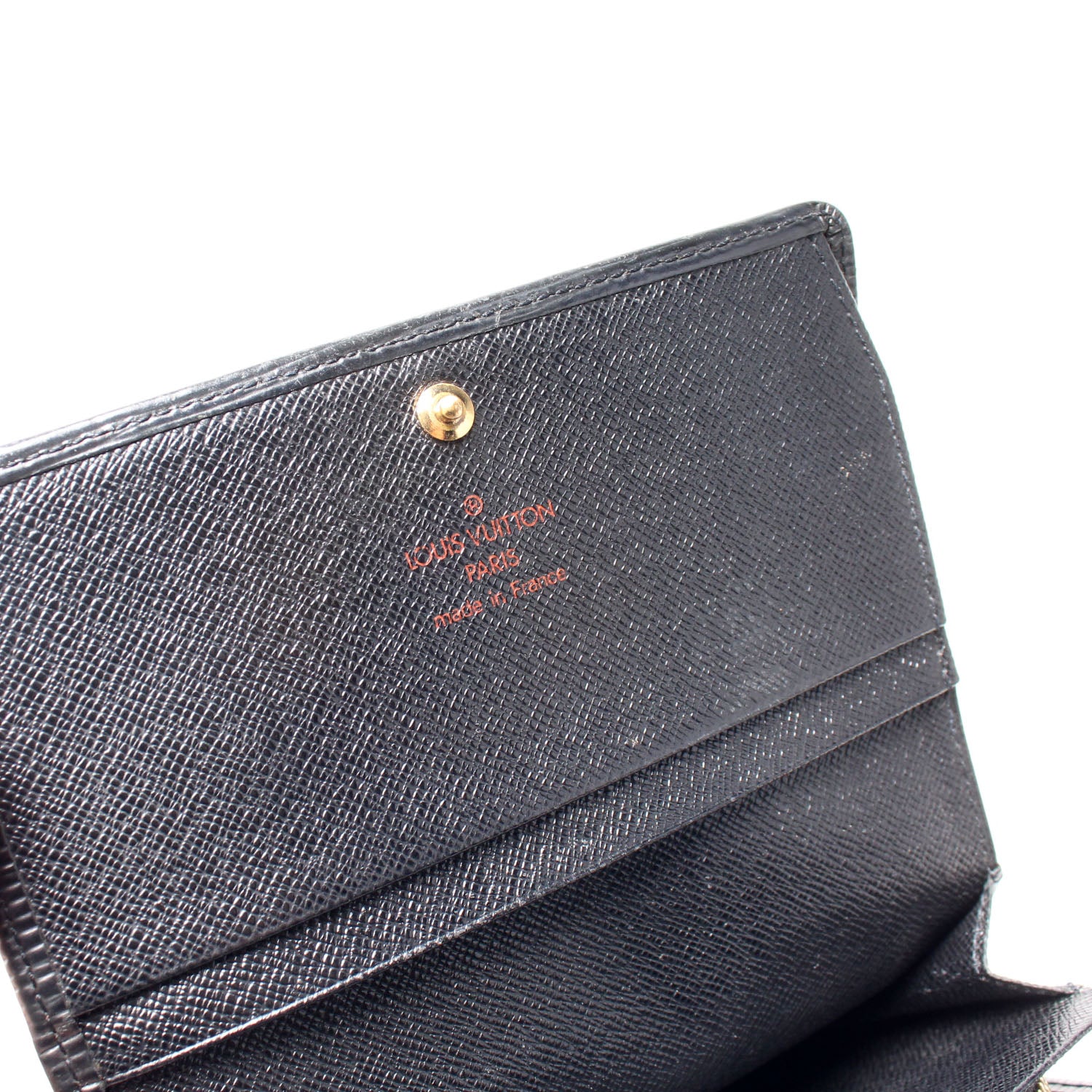 This pre-owned Louis Vuitton Pochette Porte Monnaie Billets Tres Wallet is guaranteed 100% authentic. The exterior is in the classic Louis Vuitton Epi leather.