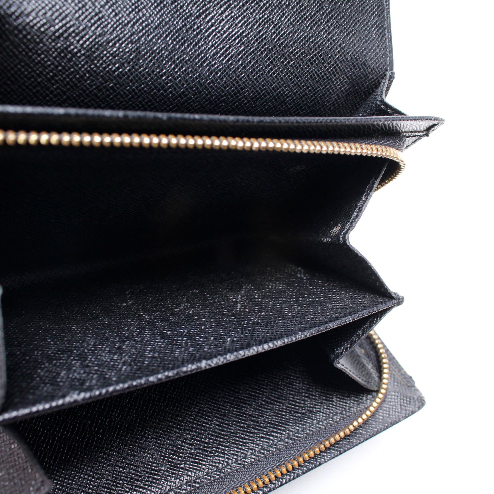 Interior: The interior is clean and free of rips or tears. The interior features three open slots and one zip closure pocket.