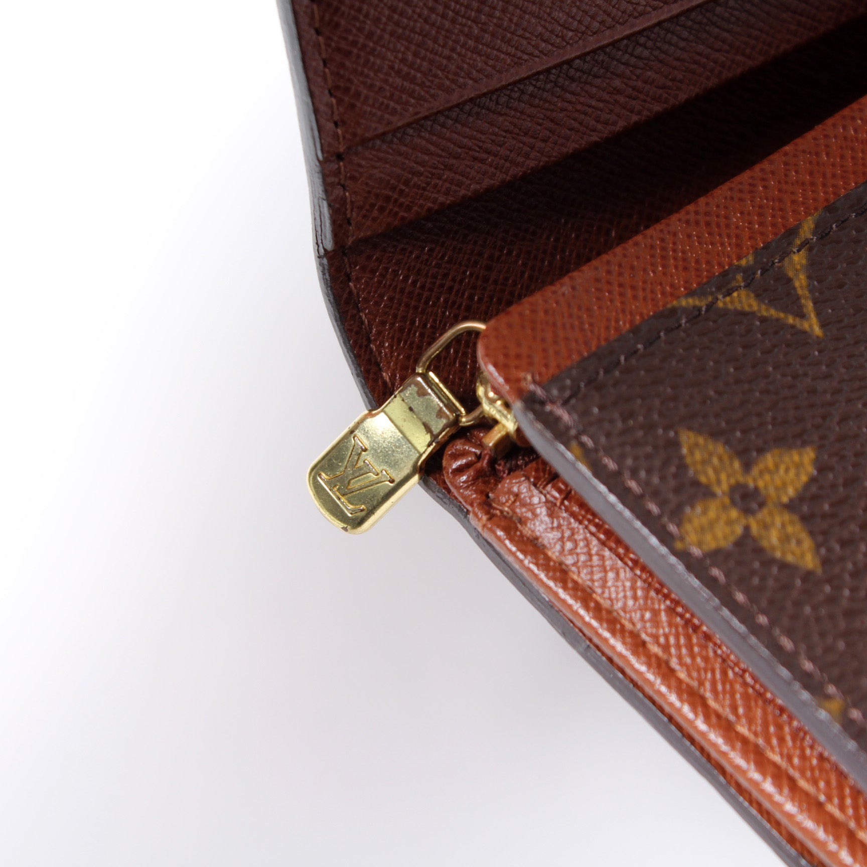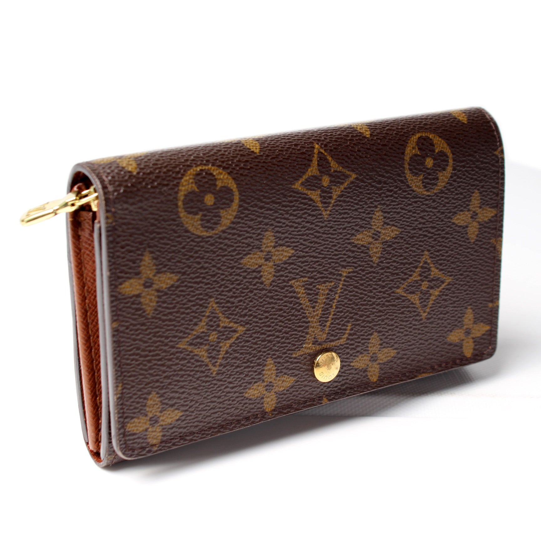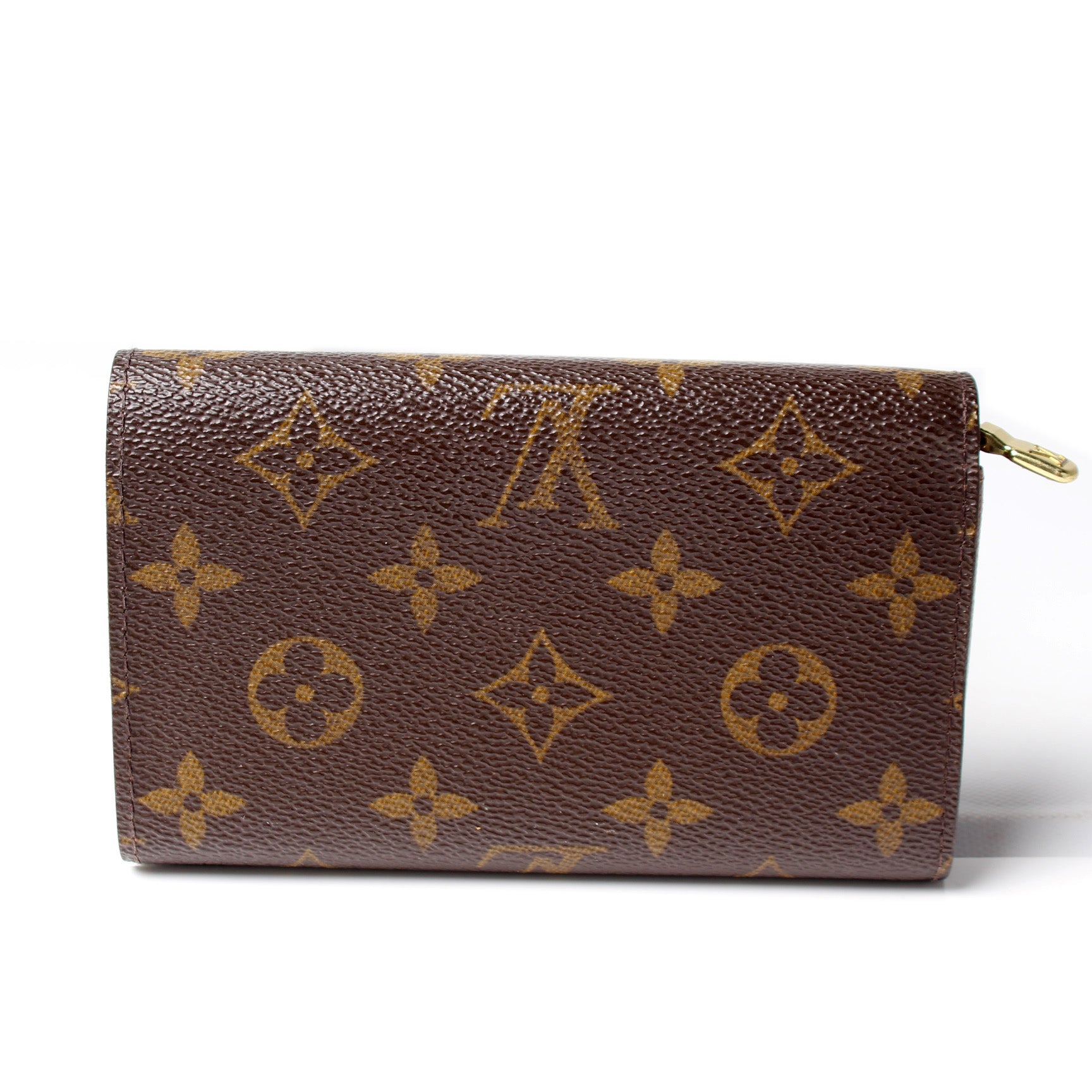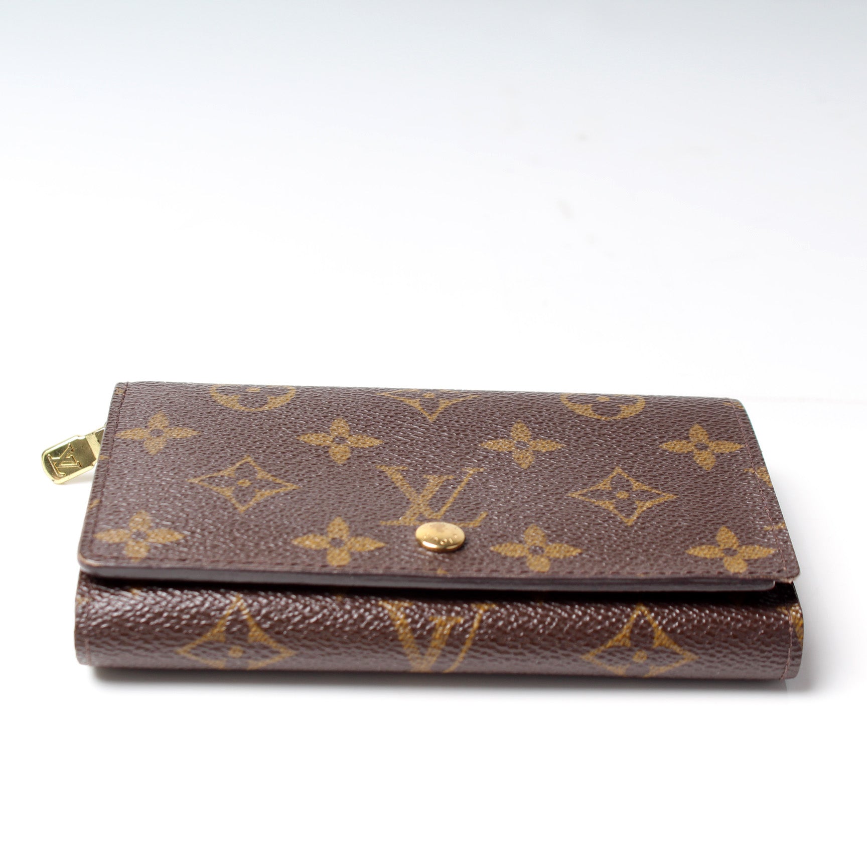 This pre-owned Louis Vuitton Porte Monnaie Billets Tres is guaranteed 100% authentic. The exterior is in the classic Louis Vuitton Monogram coated canvas.