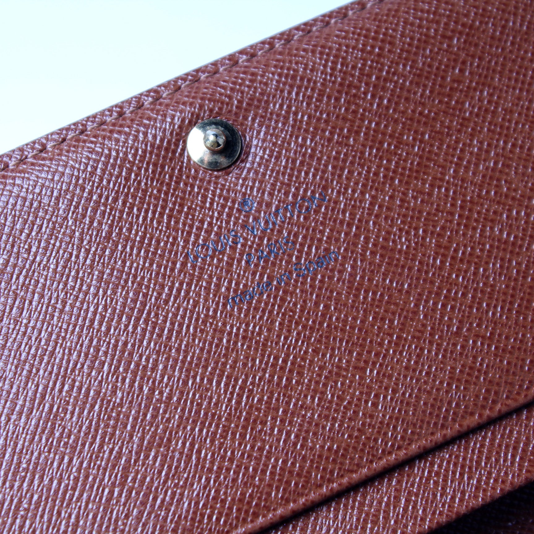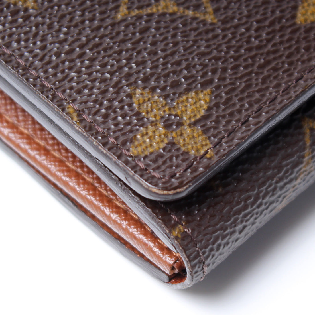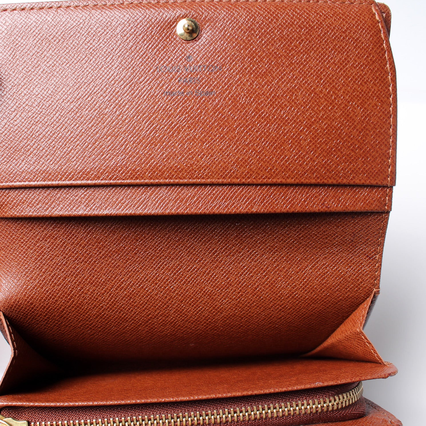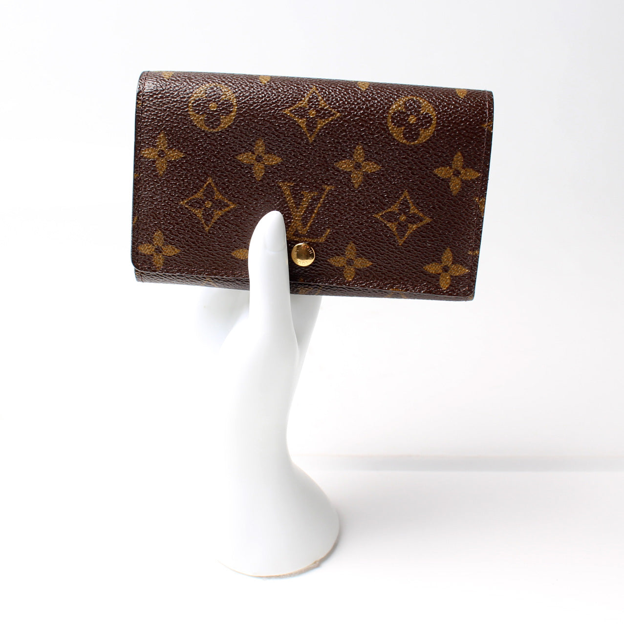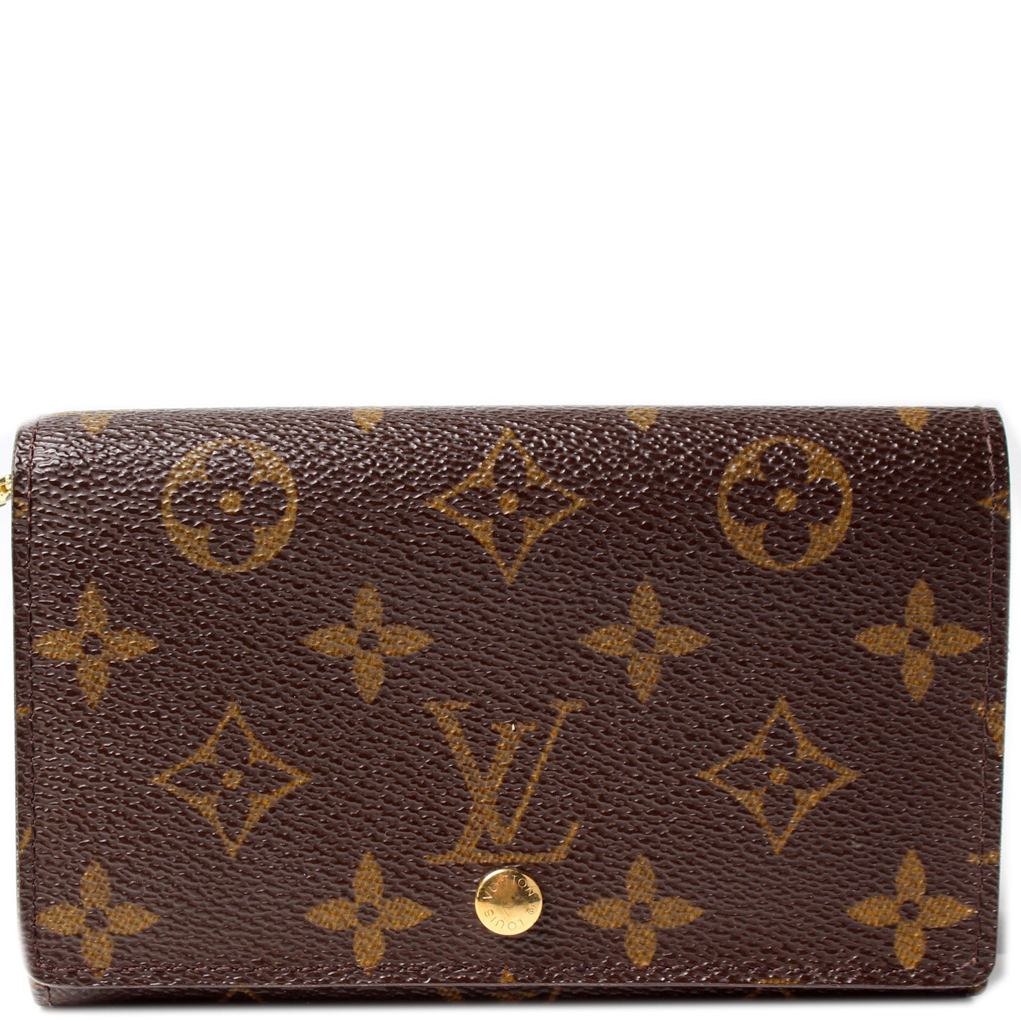 This pre-owned Louis Vuitton Porte Monnaie Billets Tres is guaranteed 100% authentic. The exterior is in the classic Louis Vuitton Monogram coated canvas.