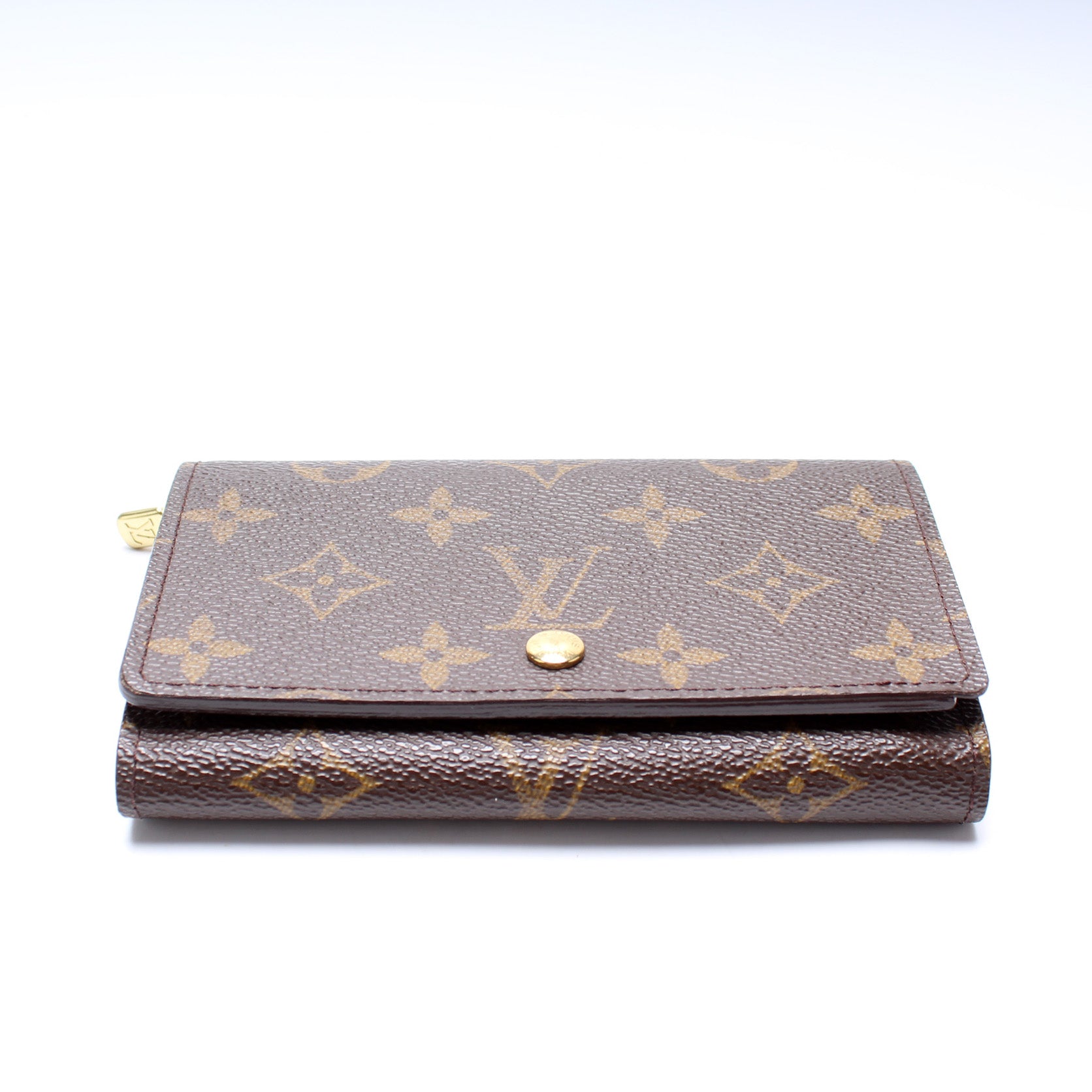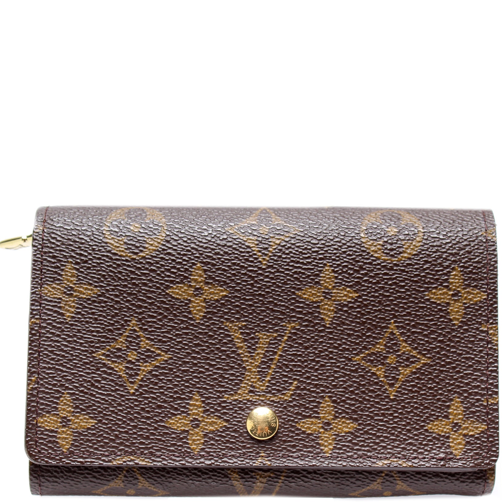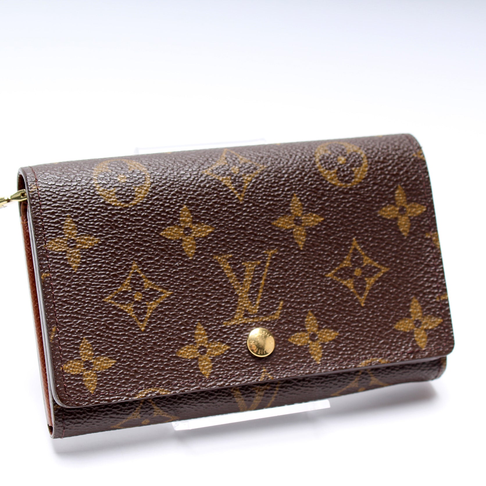 This pre-owned Louis Vuitton Porte Monnaie Billiets is guaranteed 100% authentic. The exterior is in the classic Louis Vuitton Monogram coated canvas.