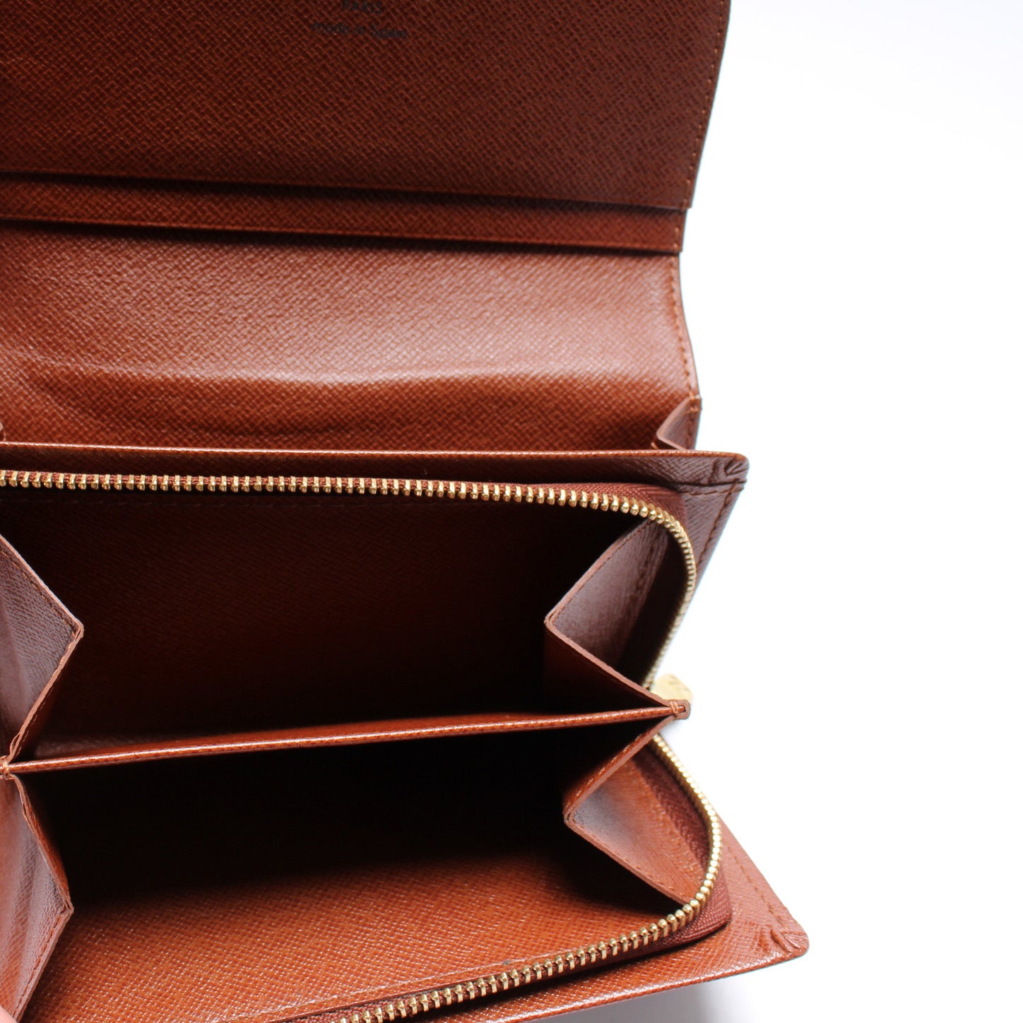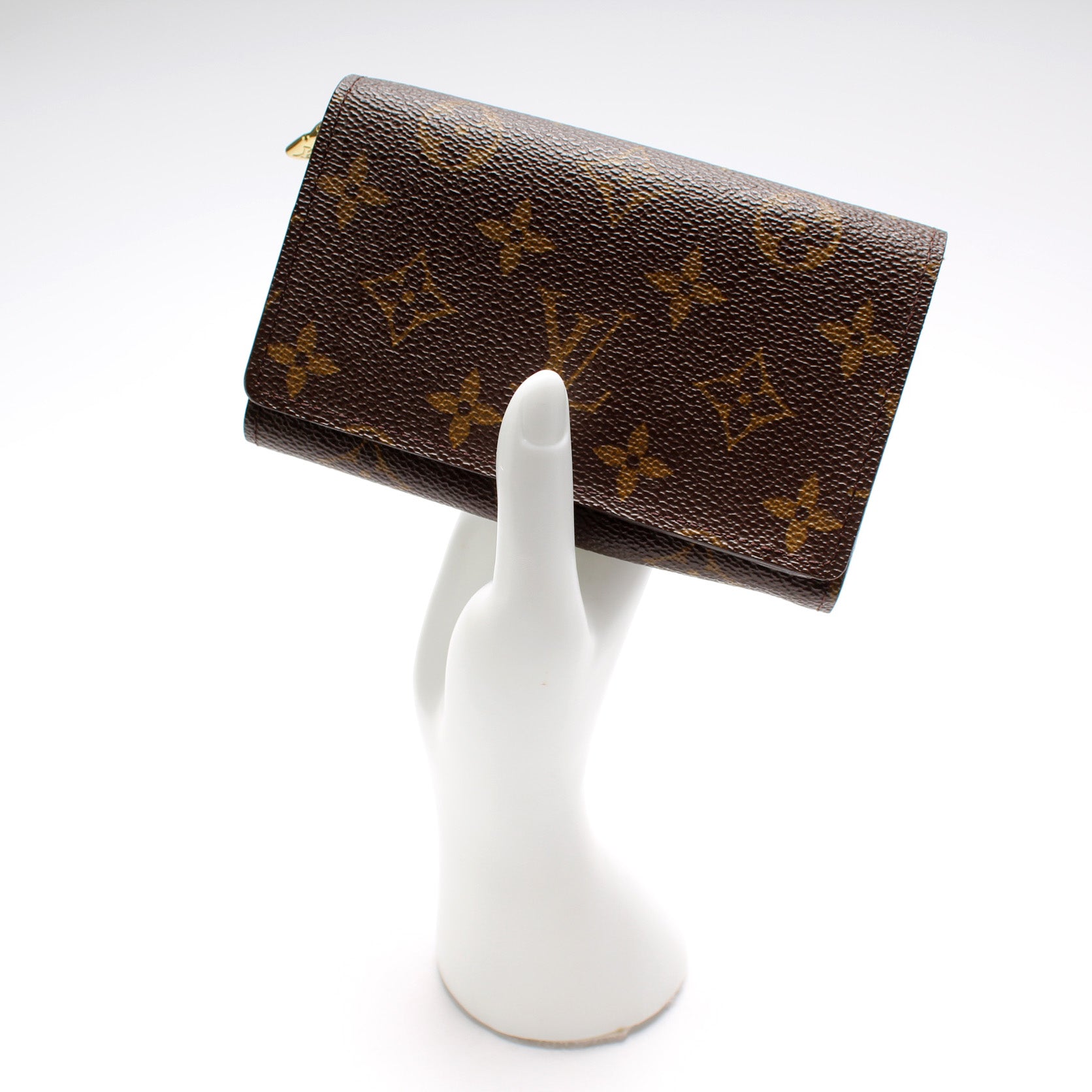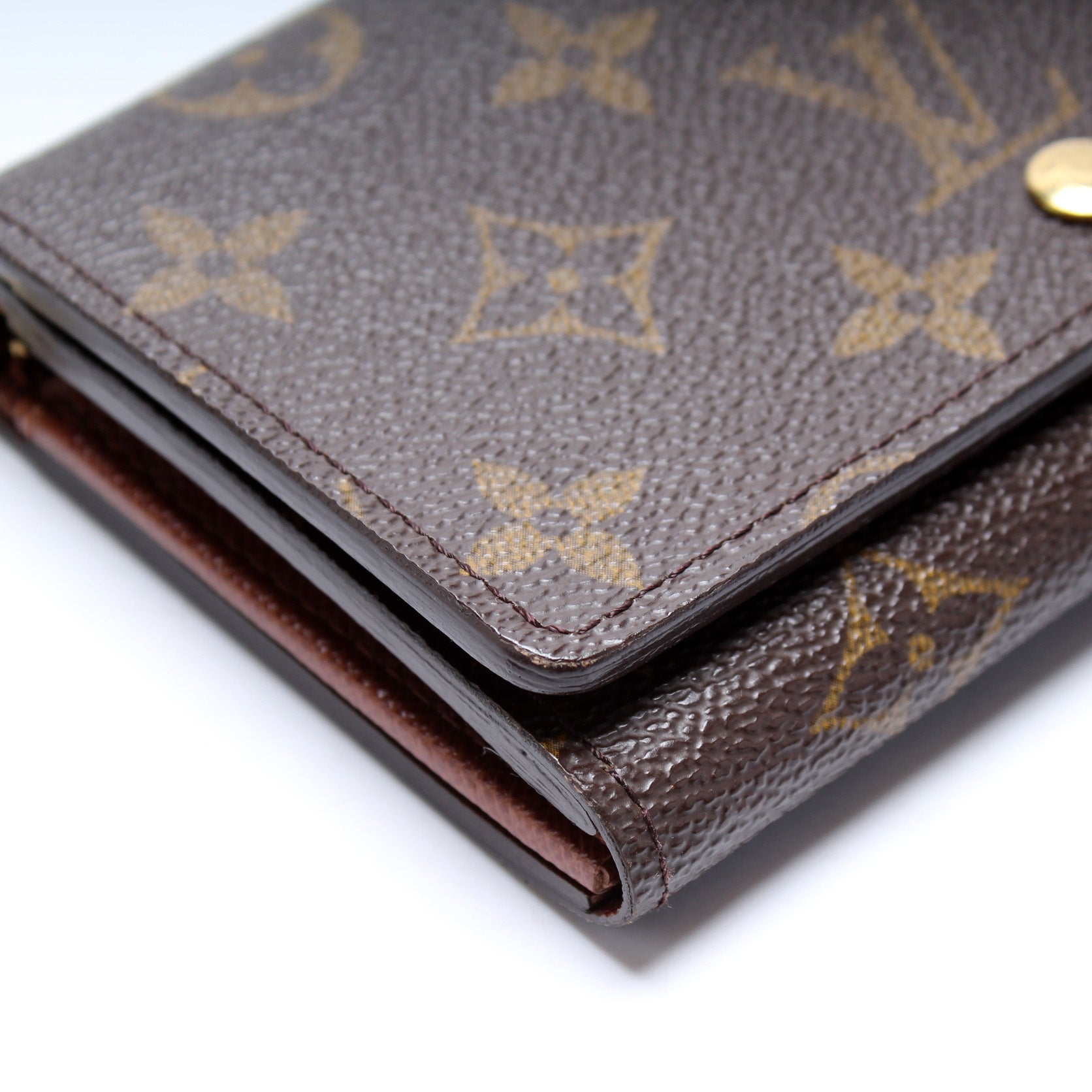 This pre-owned Louis Vuitton Porte Monnaie Billiets is guaranteed 100% authentic. The exterior is in the classic Louis Vuitton Monogram coated canvas.