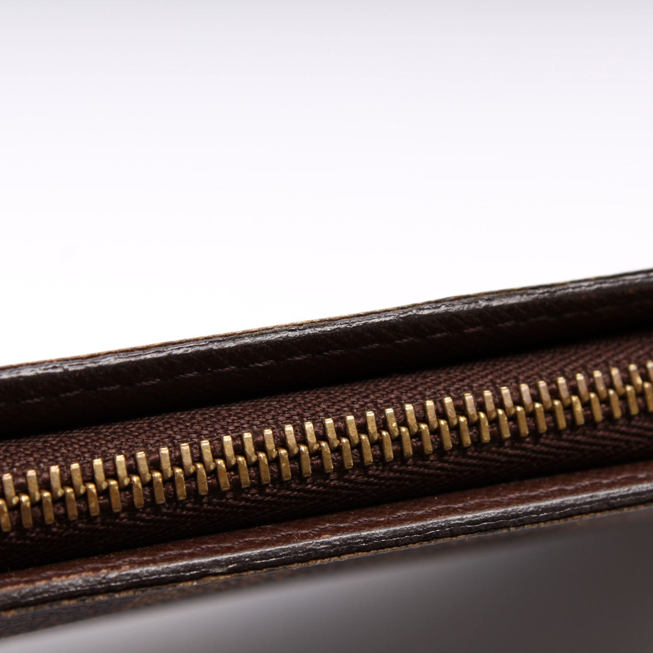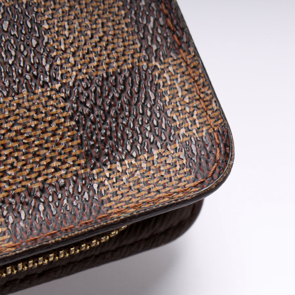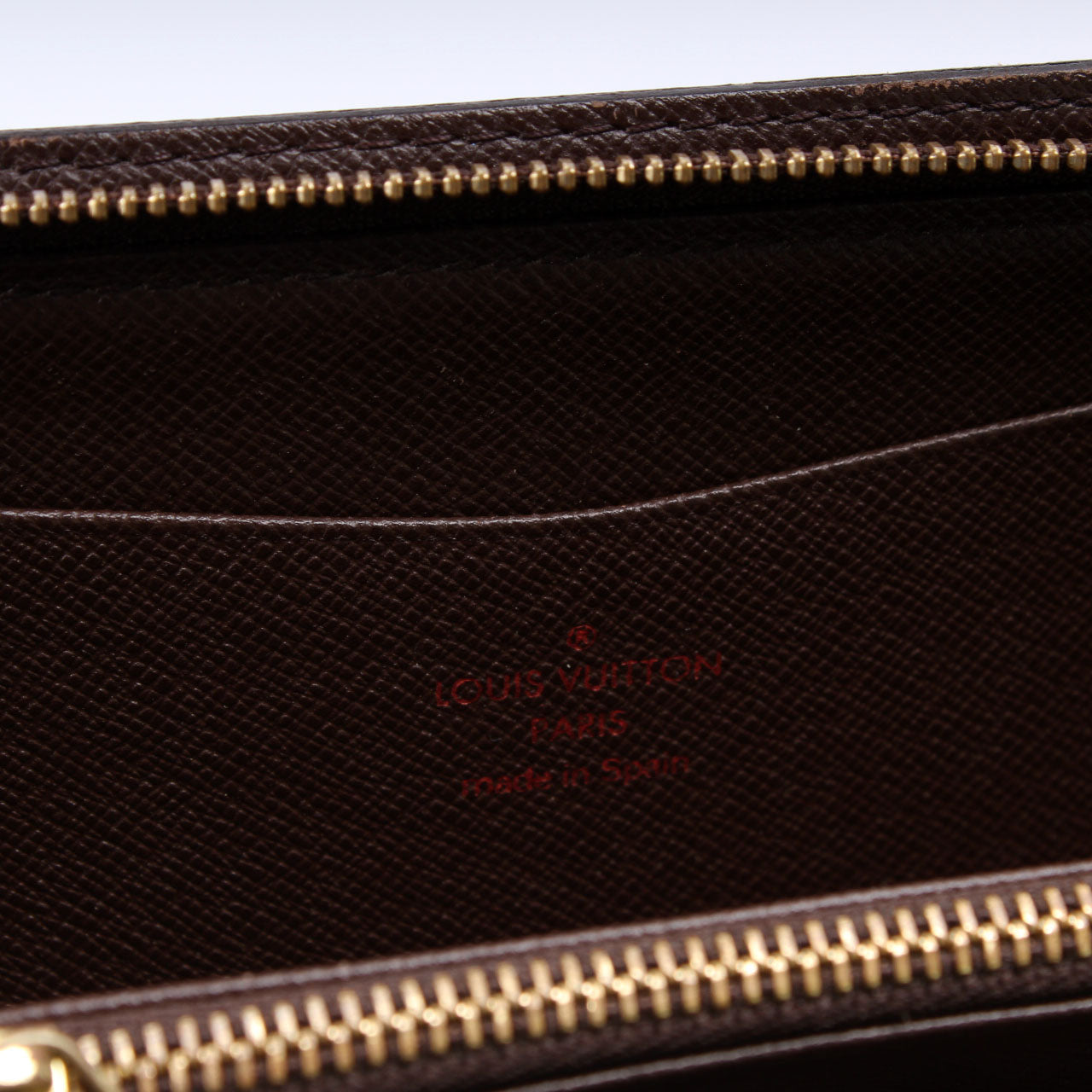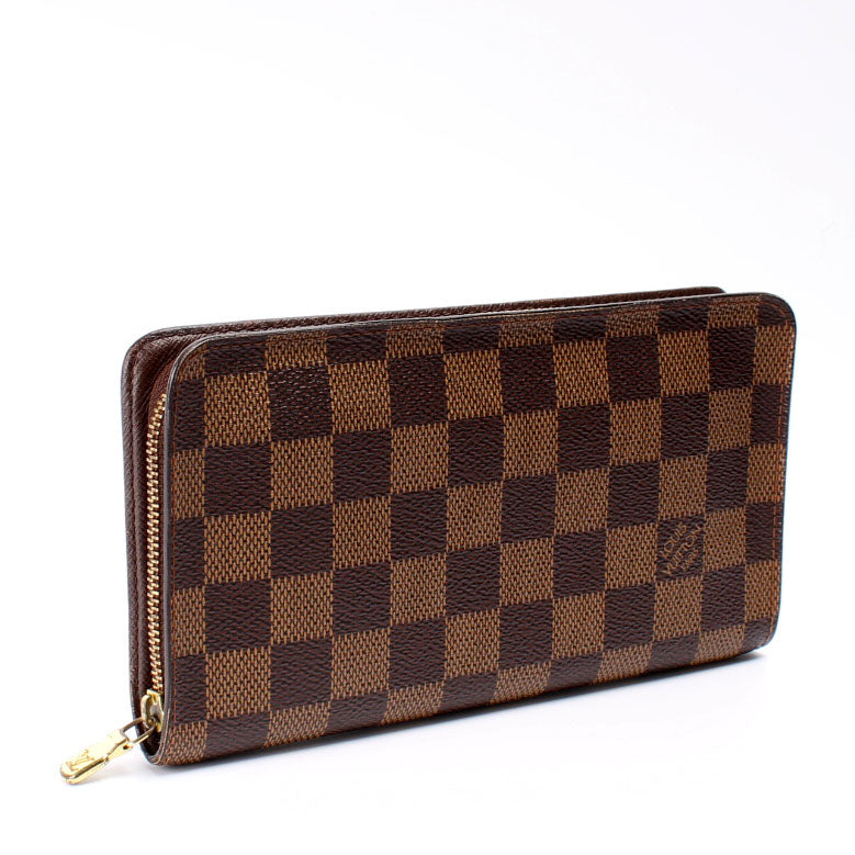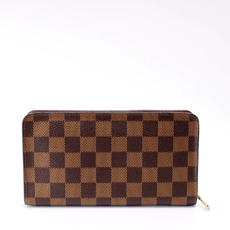 This pre-owned Louis Vuitton Porte Monnaie Zippy is guaranteed 100% authentic. The exterior is in the classic Louis Vuitton Damier Ebene coated canvas.