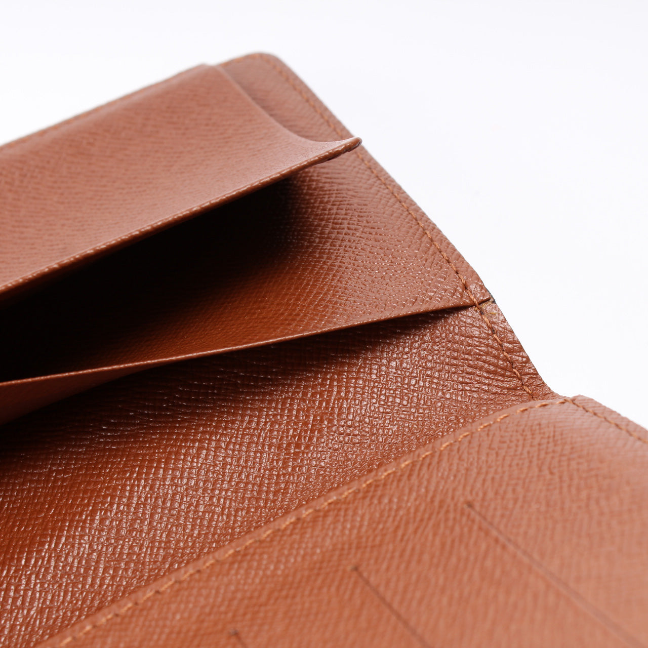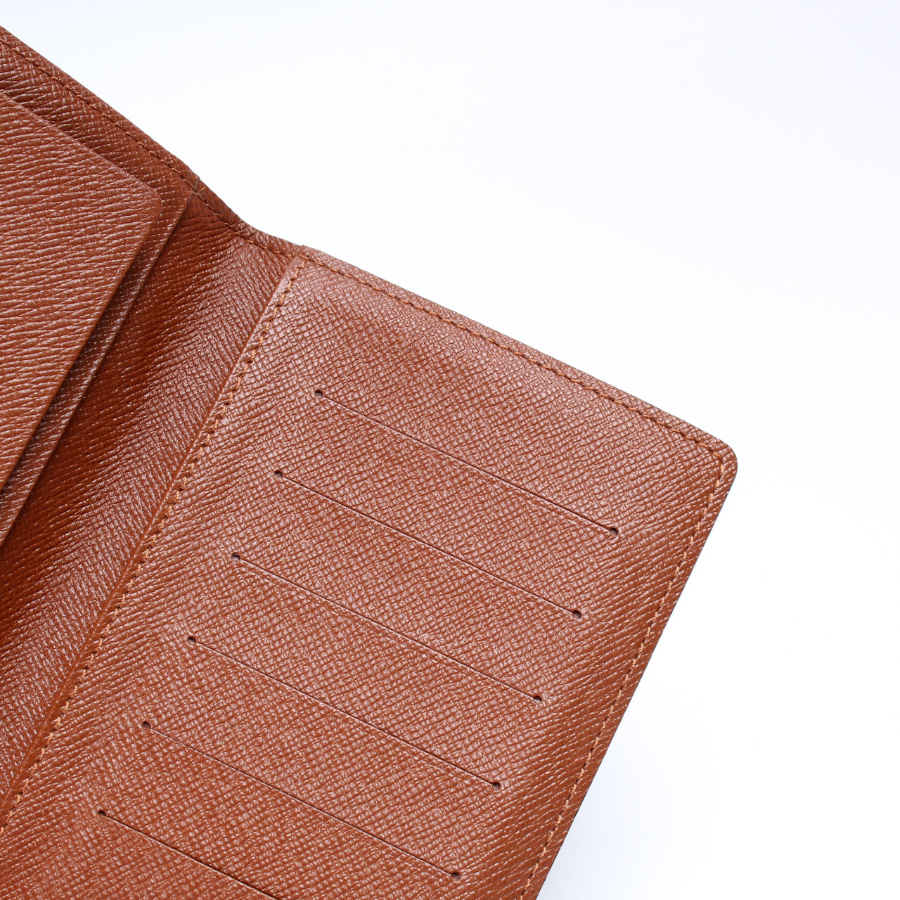 Interior: The interior is clean and free of rips or tears. The interior features six card slots, three bill slots, and one additional slot.