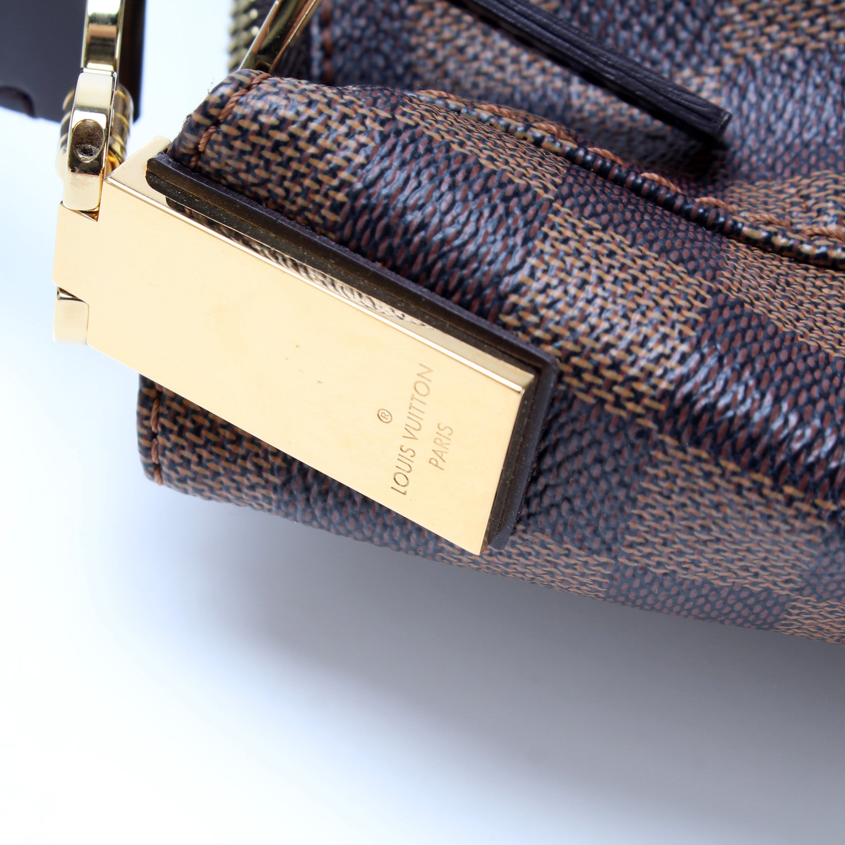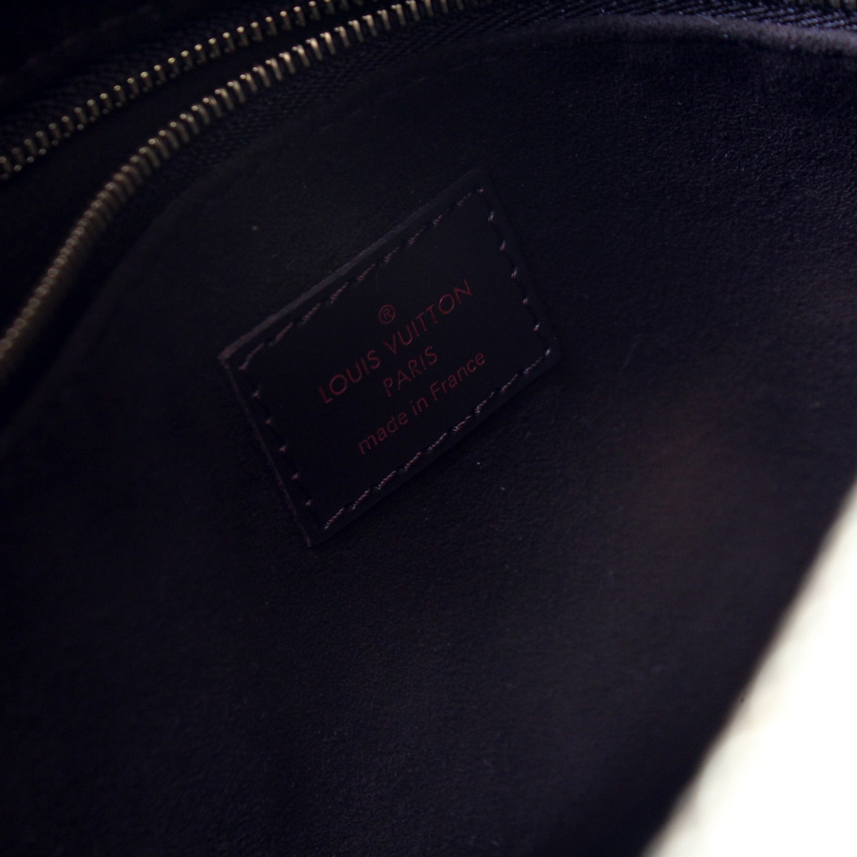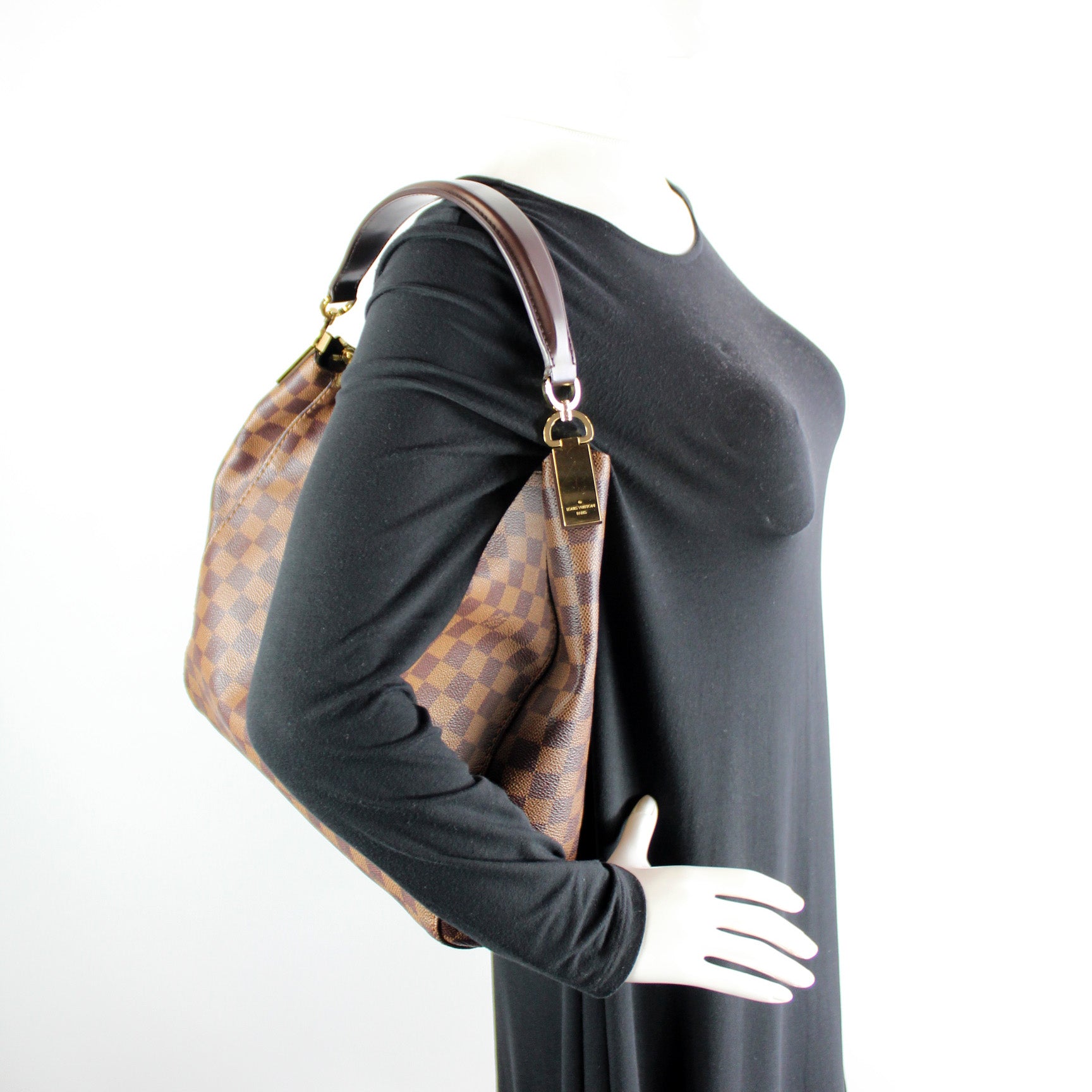 This pre-owned Louis Vuitton Portobello PM is guaranteed 100% authentic. The exterior is in the Louis Vuitton Damier Ebene coated canvas.