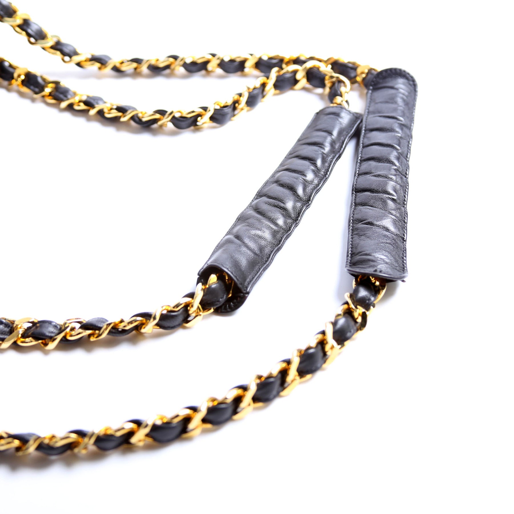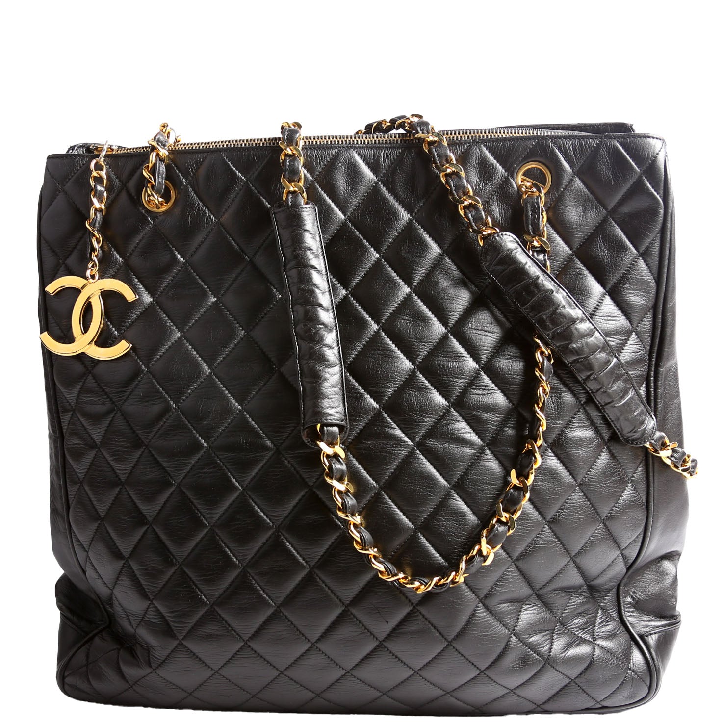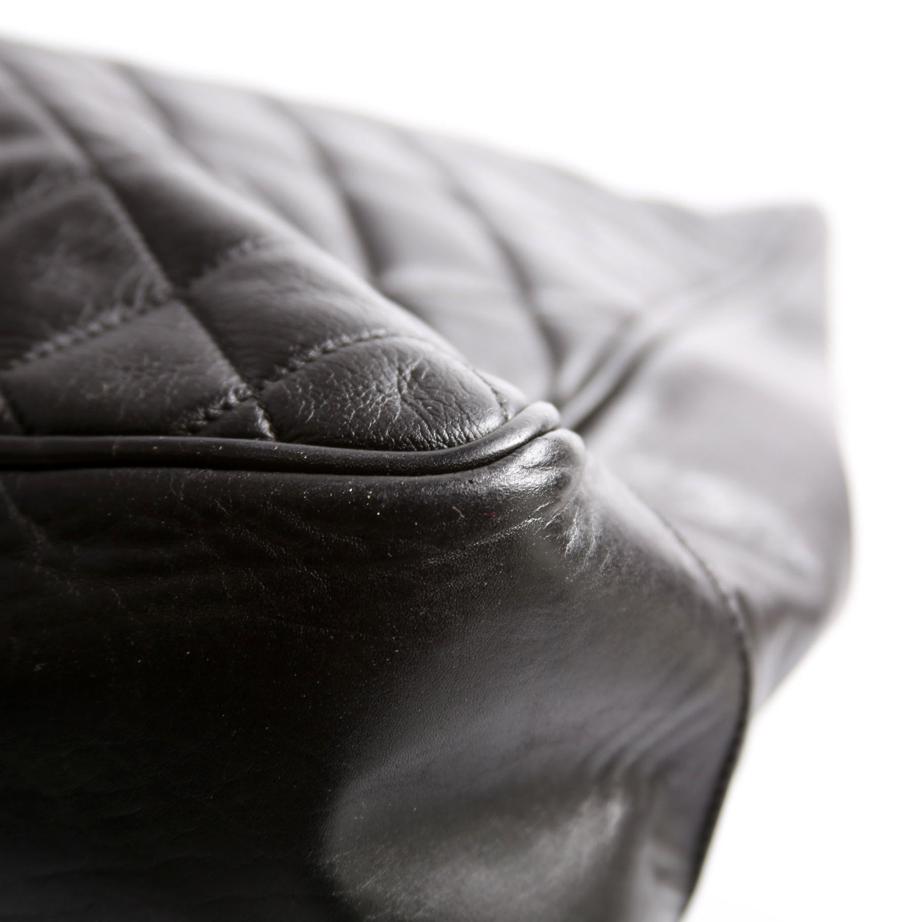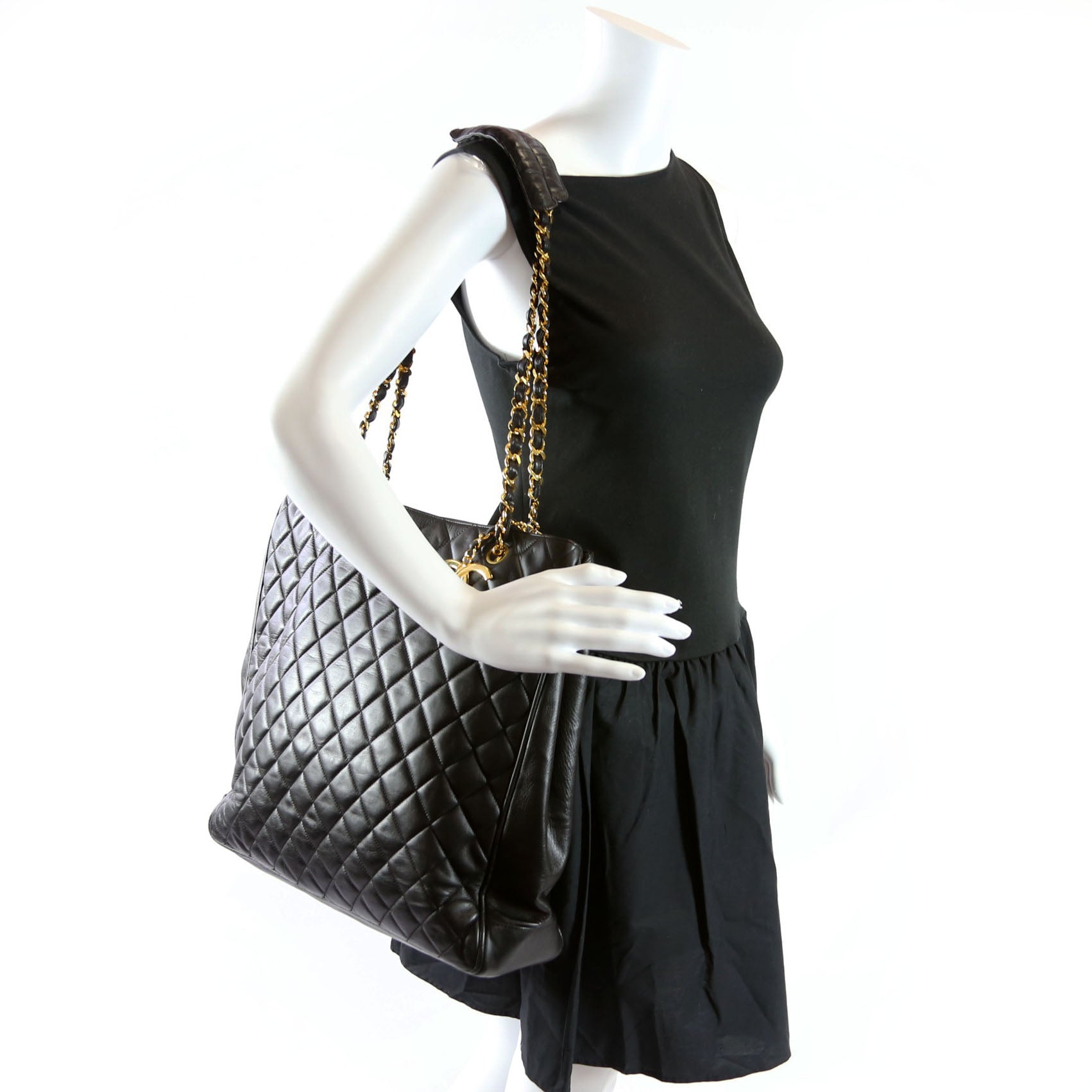 This pre-owned Chanel Chain Shoulder Tote is guaranteed 100% authentic. The exterior is in the classic Chanel Quilted Lambskin leather.