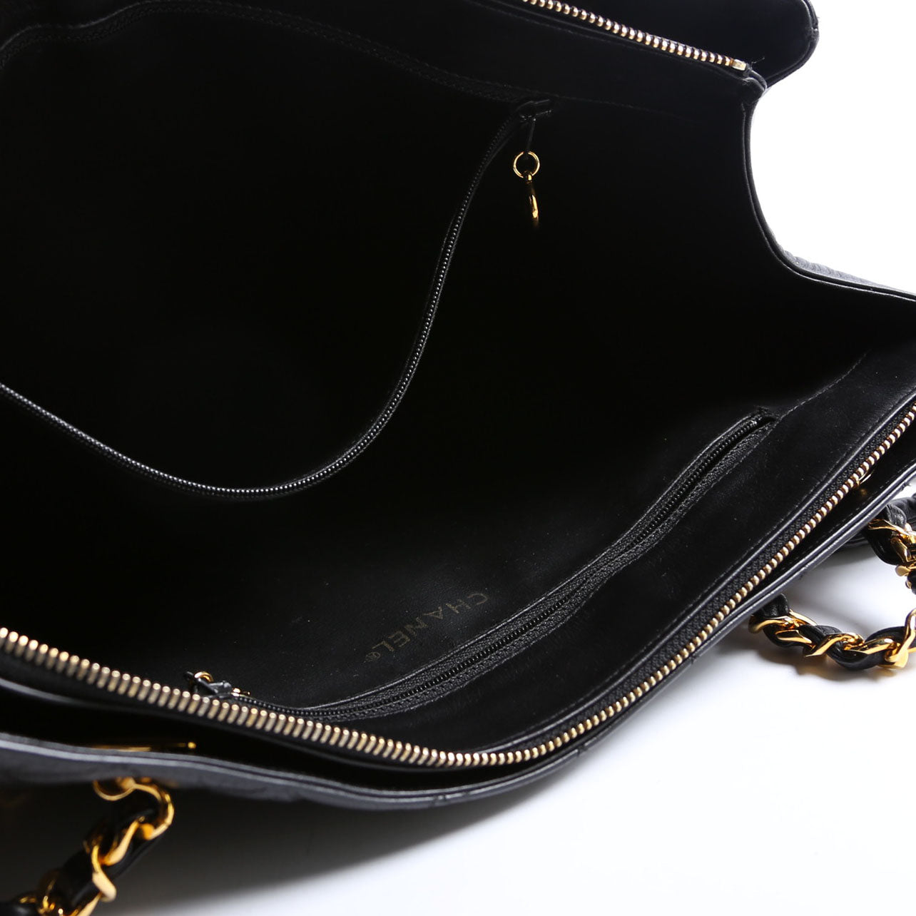 Quilted Lambskin Chain Shoulder Tote 1M Black