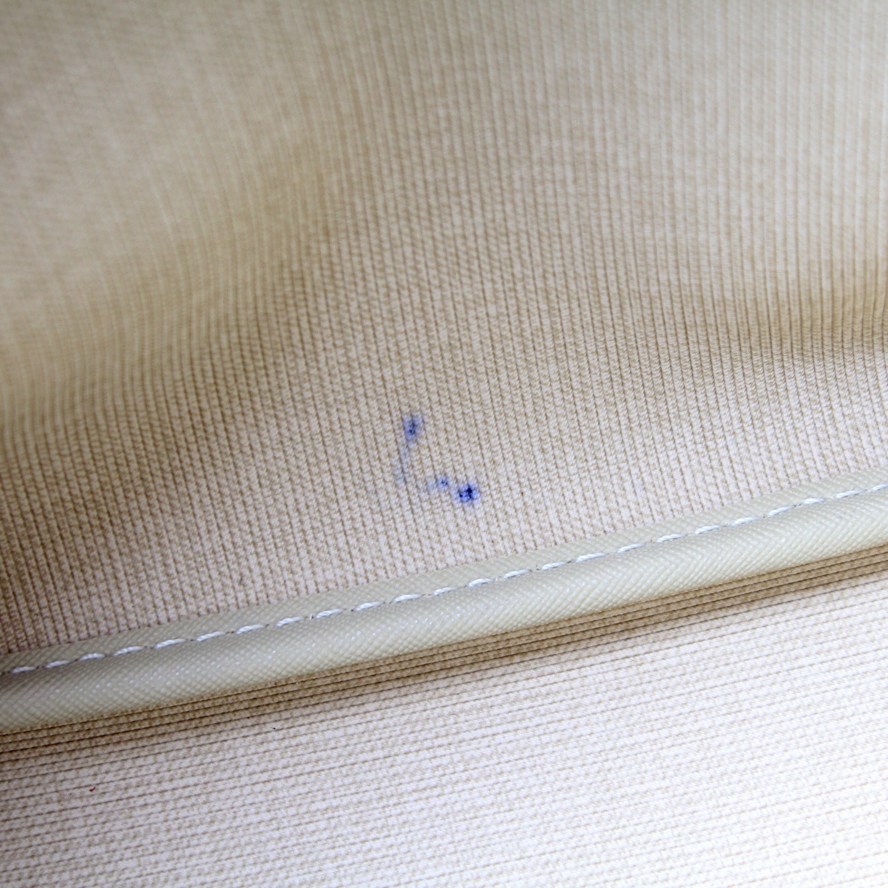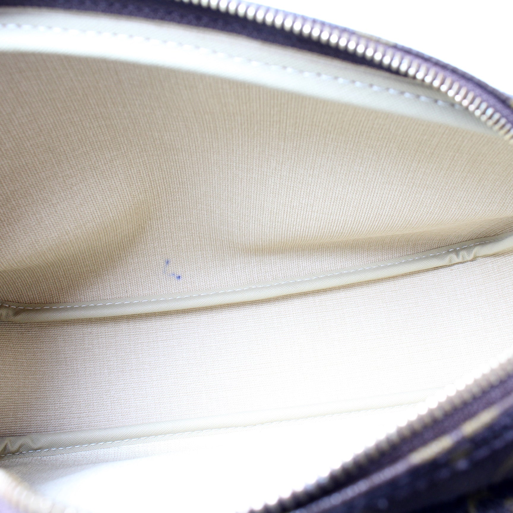 Exterior: The exterior coated canvas is free of any rips or cracks. The exterior features one open pocket. The leather details show minimal wear.