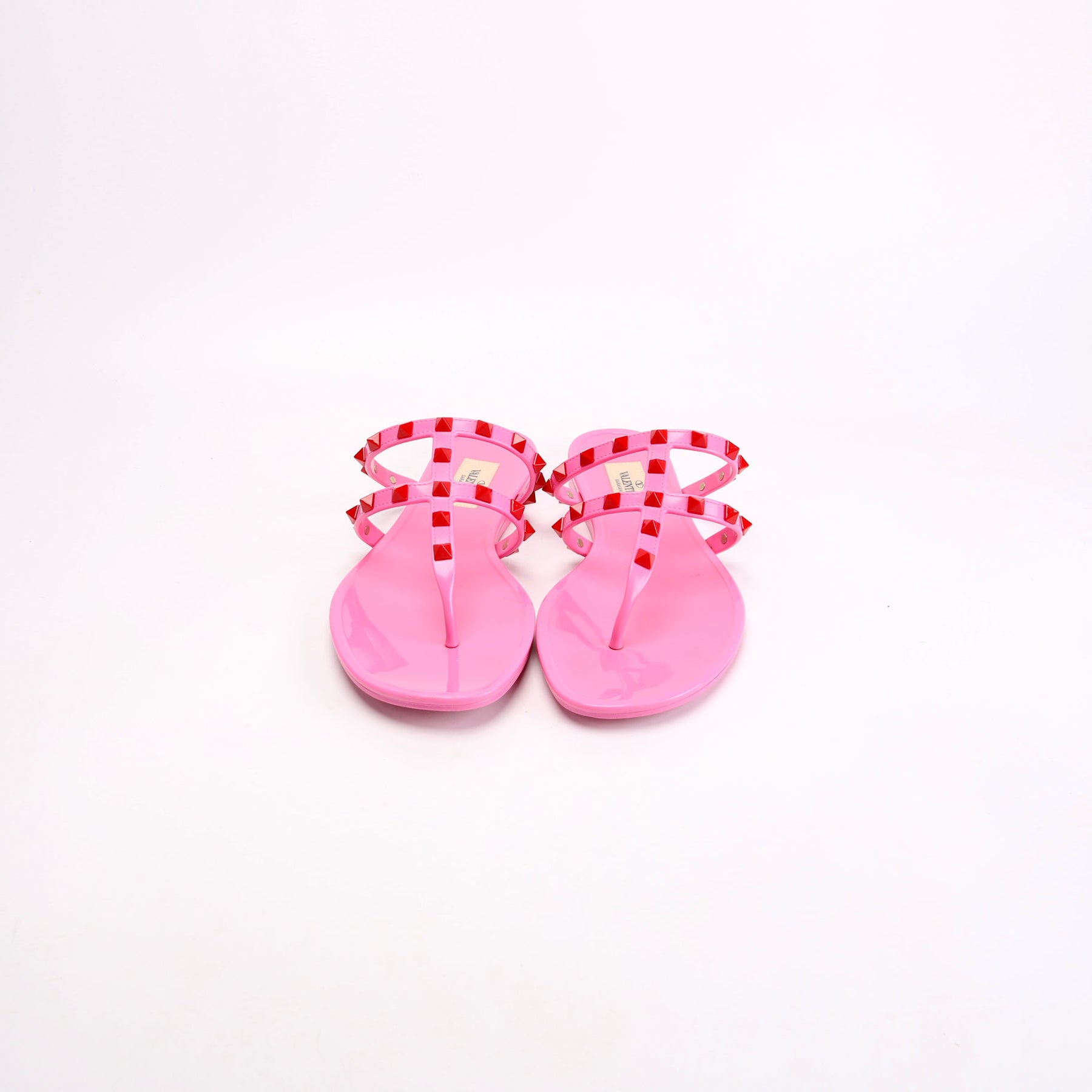 Rockstud T-Strap Rubber Sandals Size 38 Pink