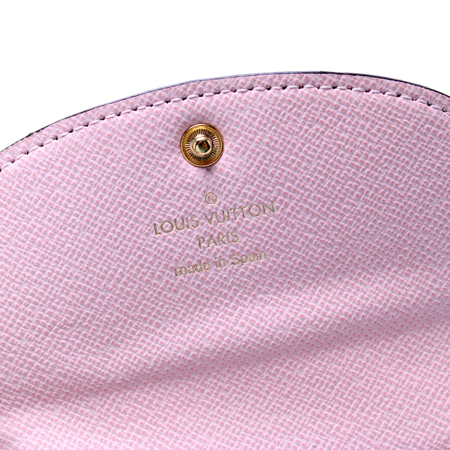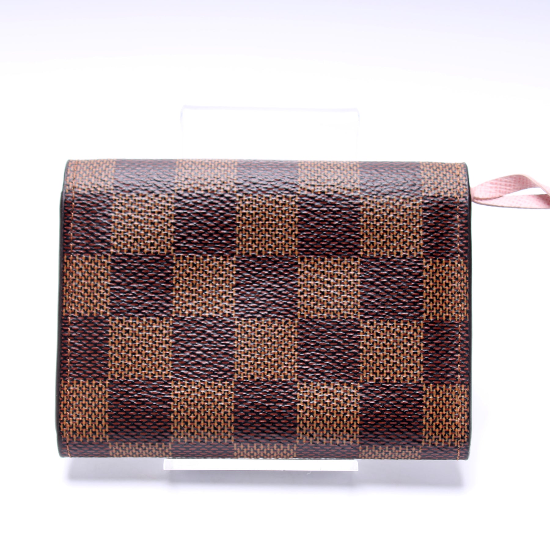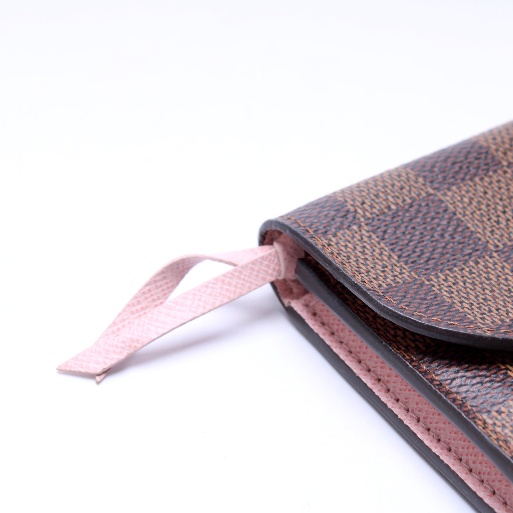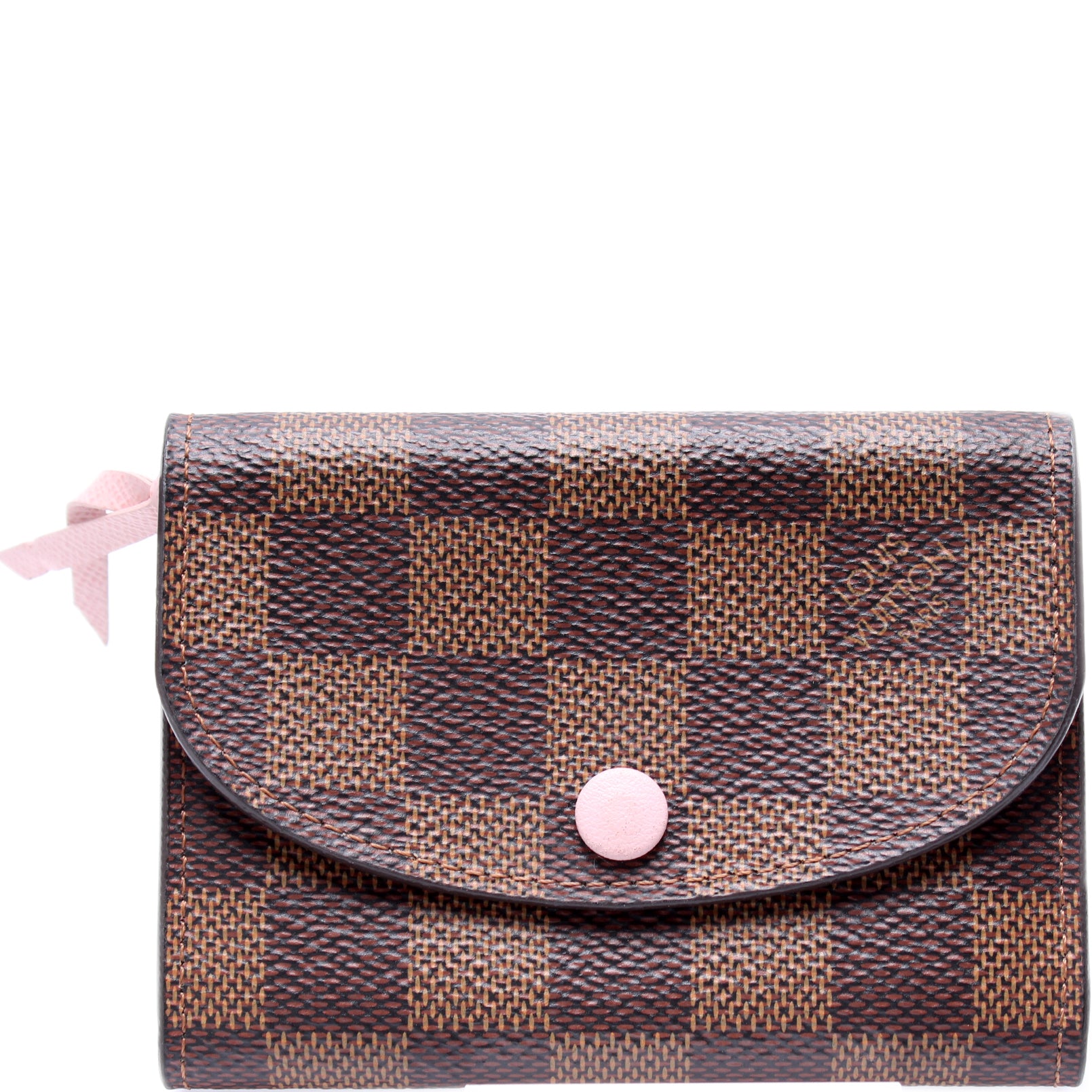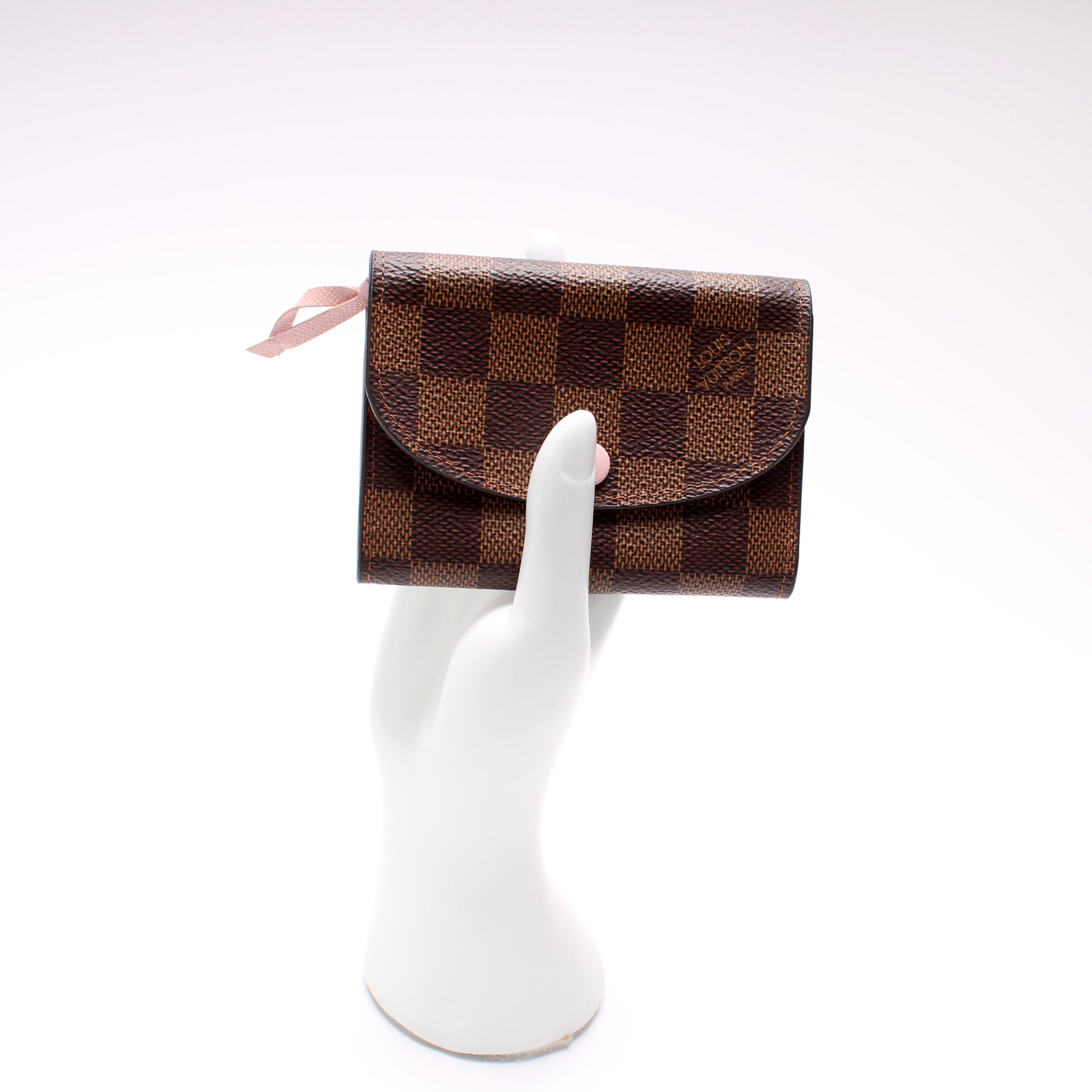 This pre-owned Louis Vuitton Rosalie Coin Purse is guaranteed 100% authentic. The exterior is in the classic Louis Vuitton Damier Ebene coated canvas.