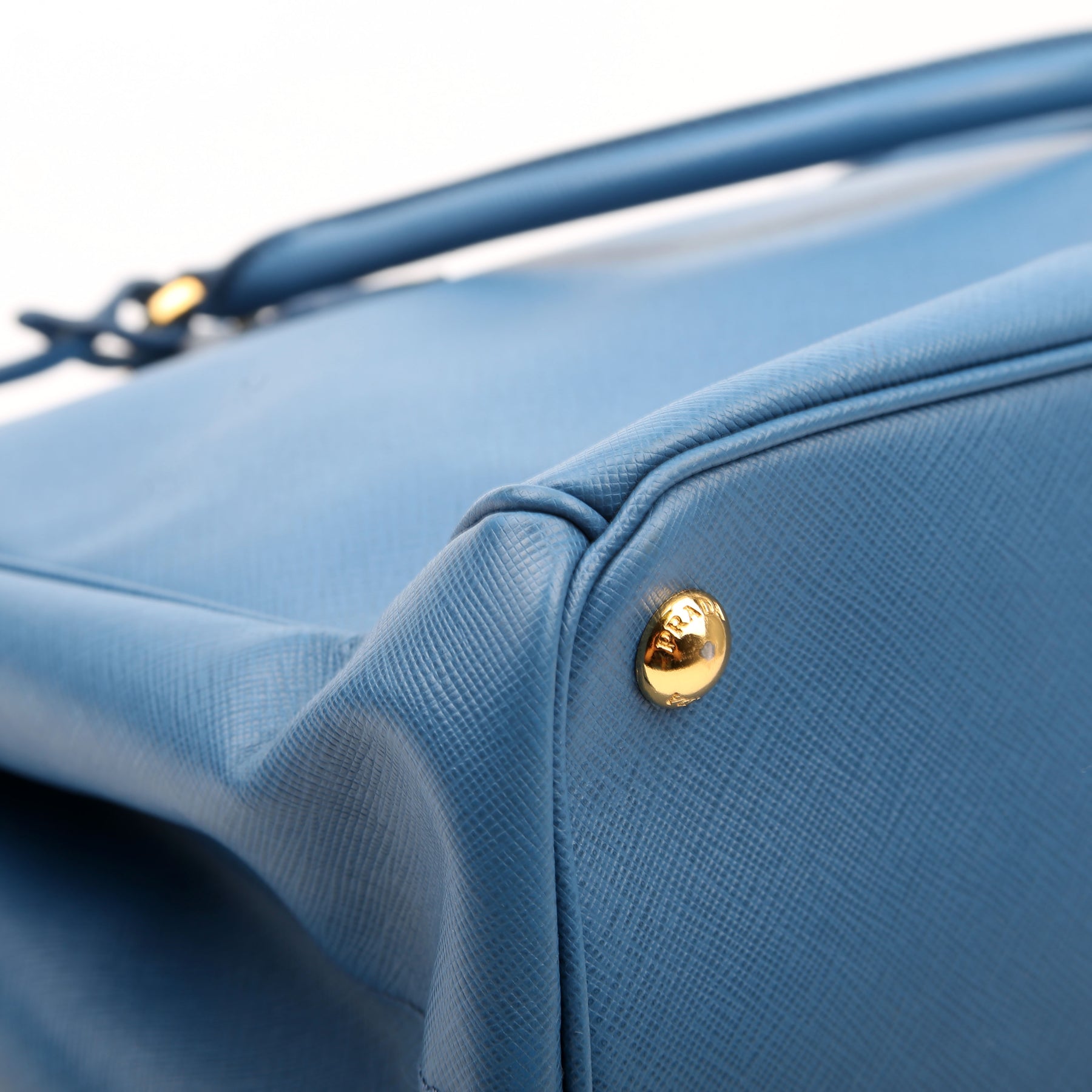 This pre-owned Prada Galleria Medium is guaranteed 100% authentic. The exterior is in the classic Prada Saffiano leather.