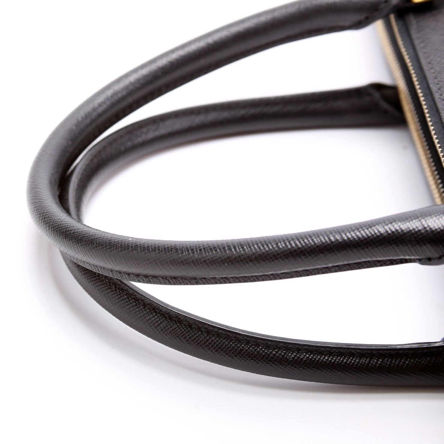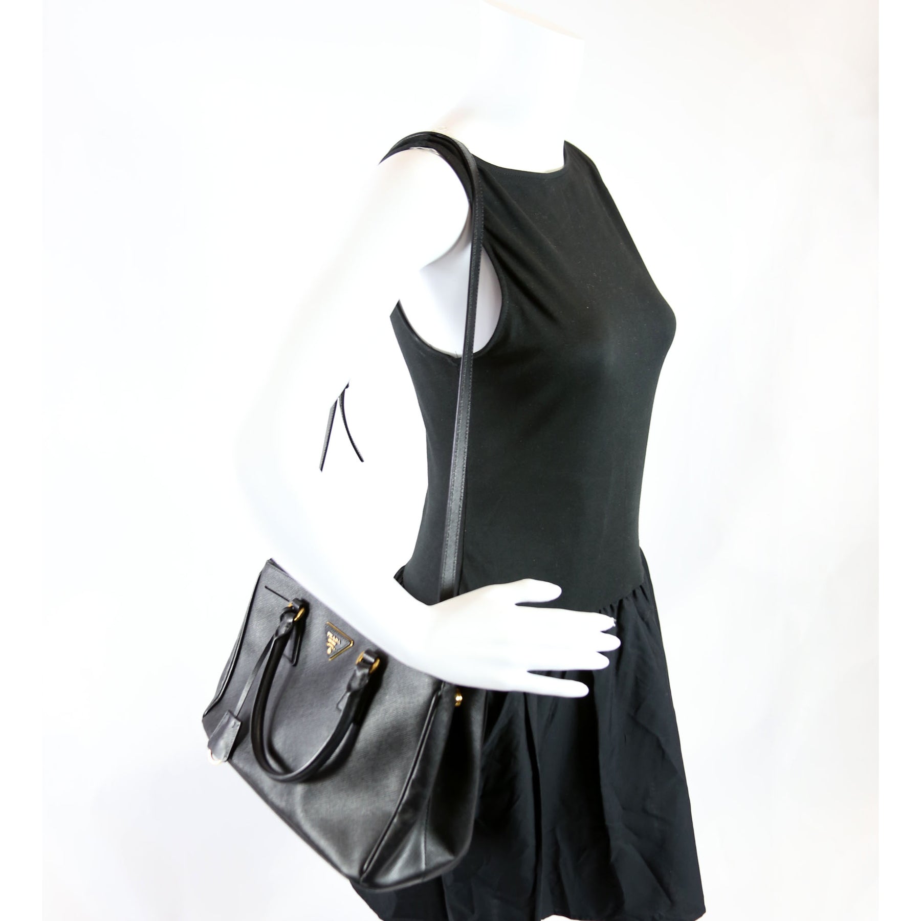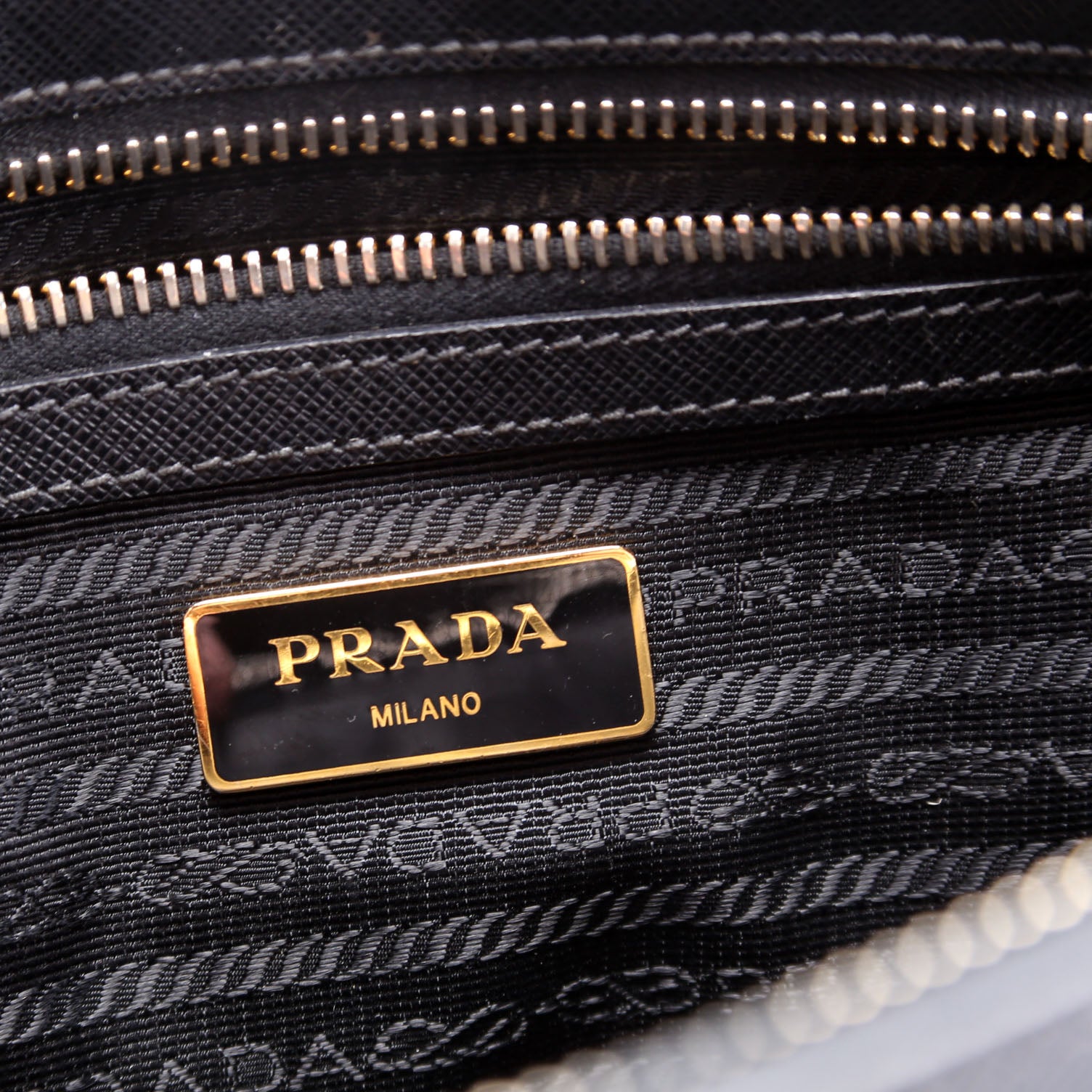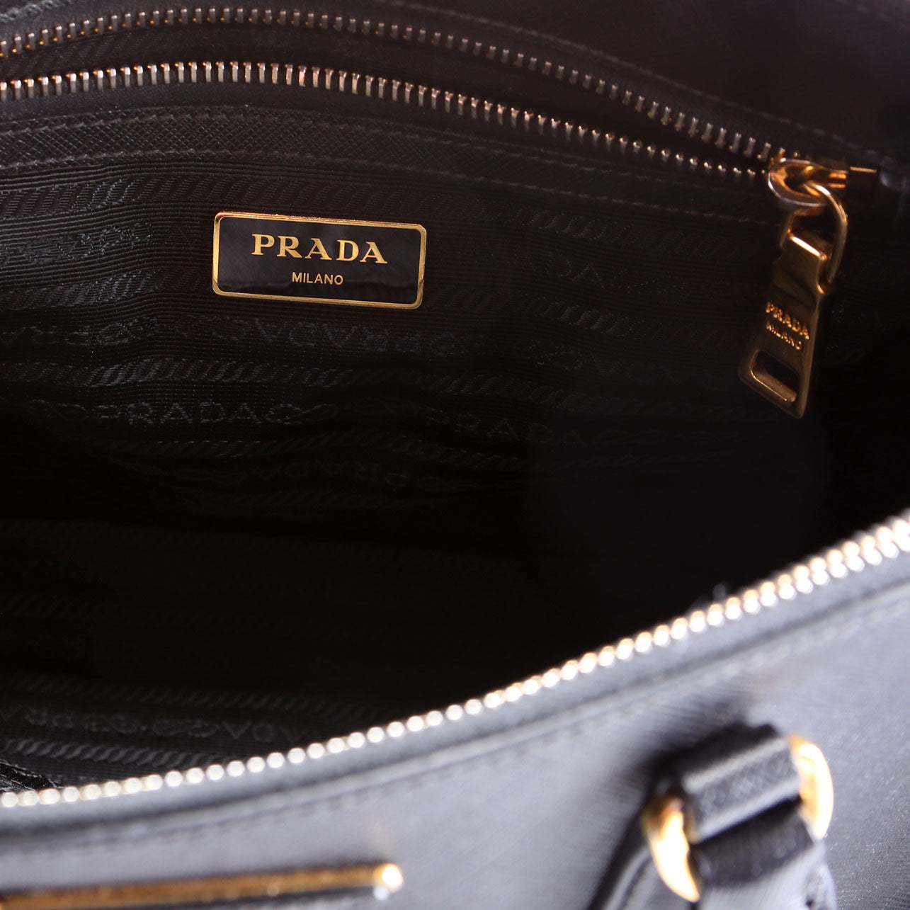 This pre-owned Prada Saffiano Galleria Small is guaranteed 100% authentic. The exterior is in the classic Prada Saffiano leather.