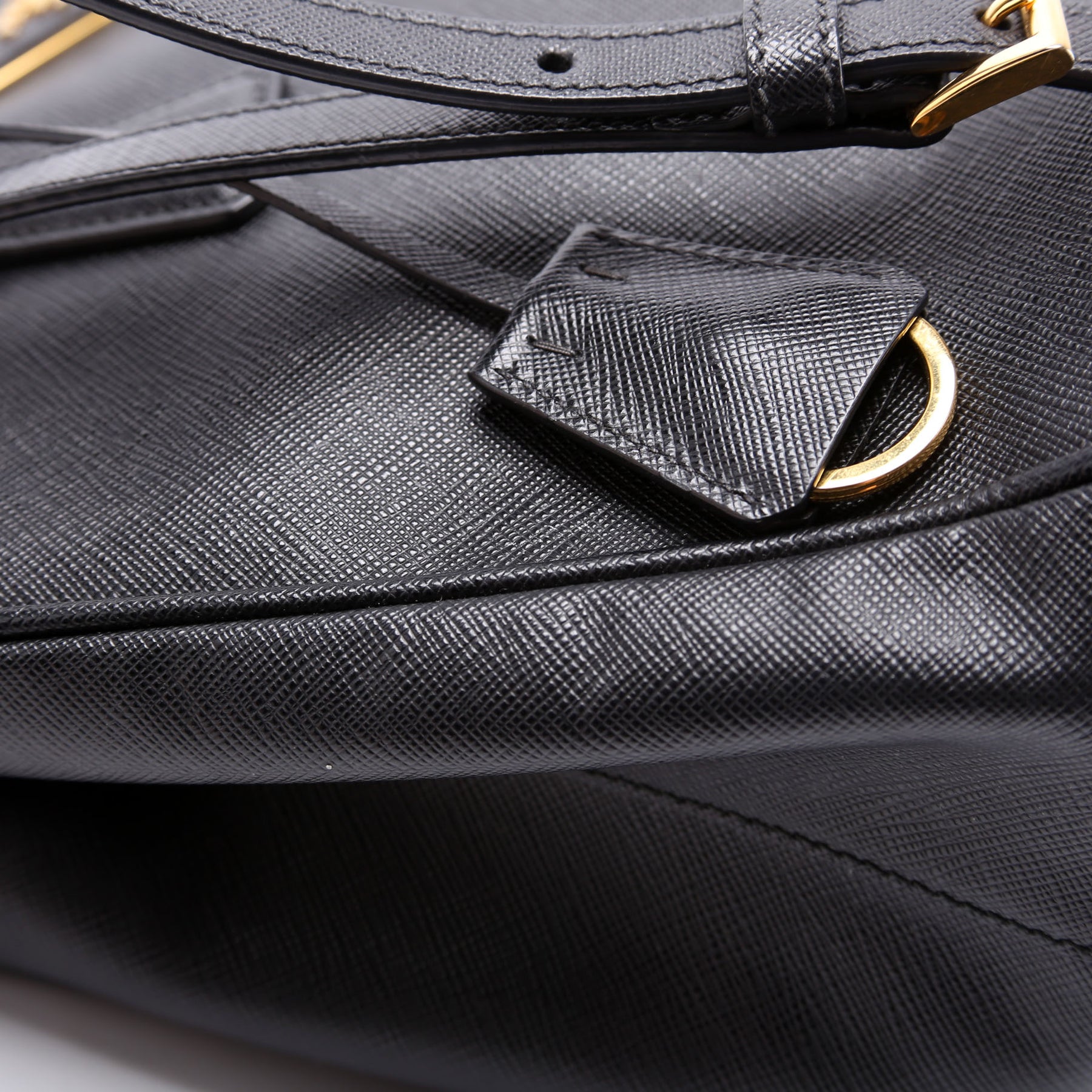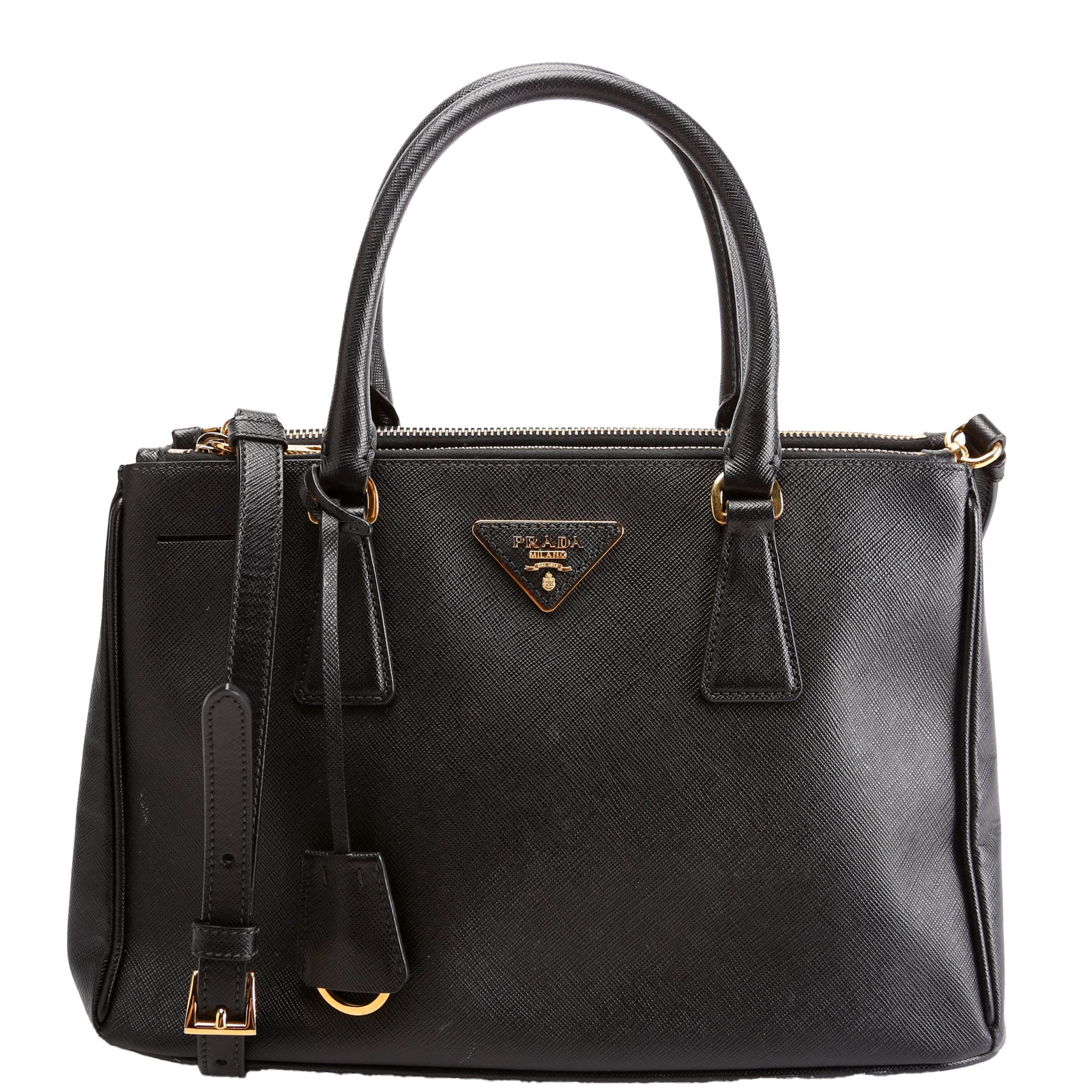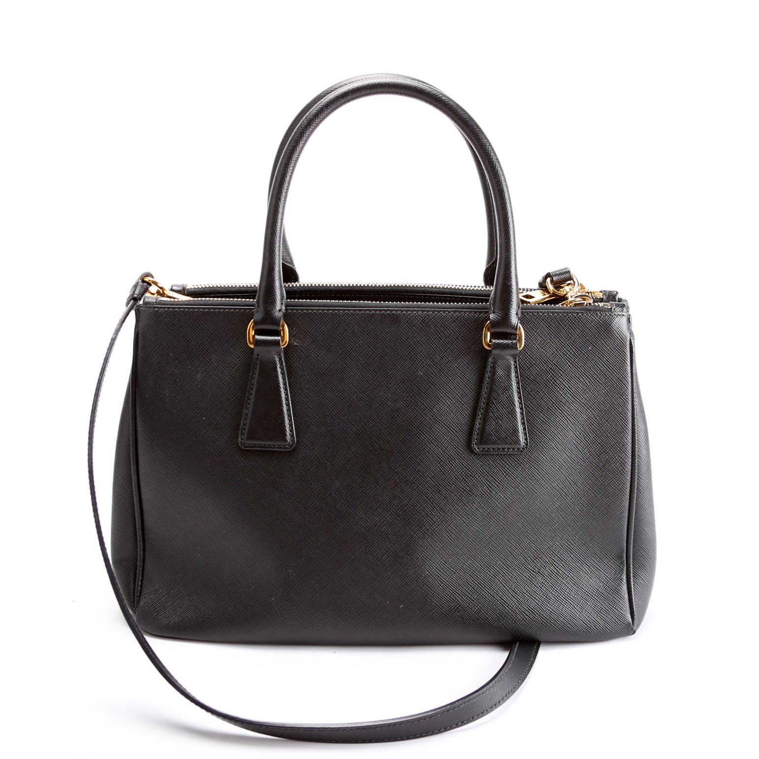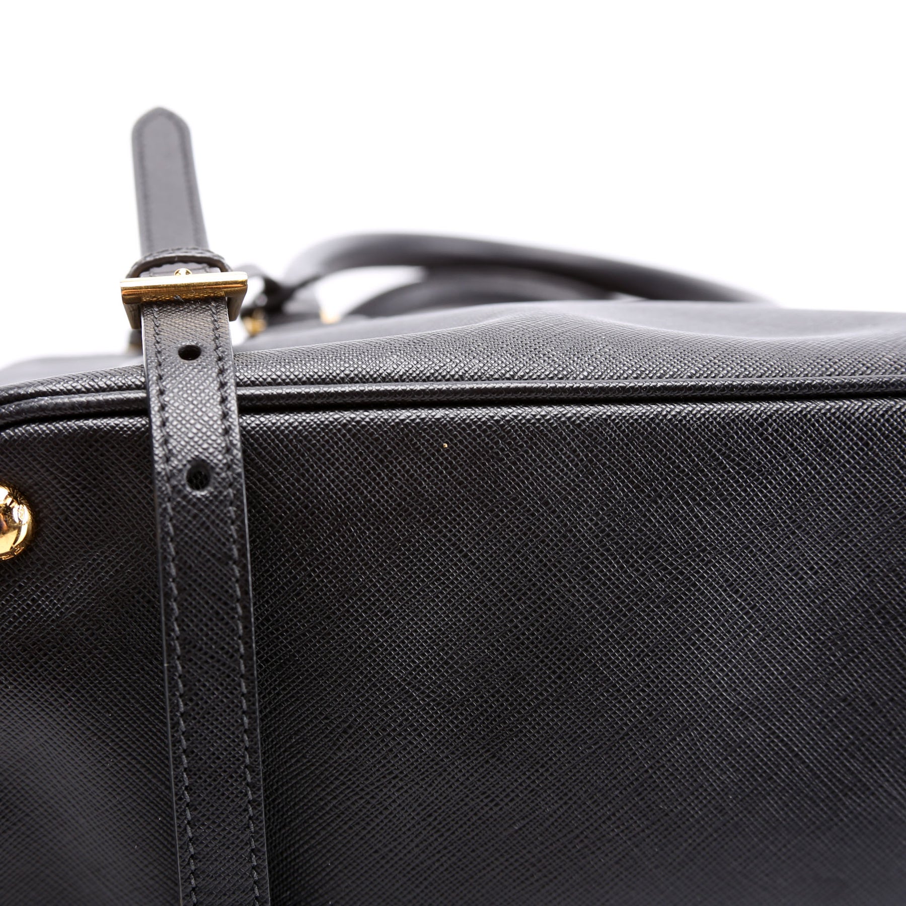 This pre-owned Prada Saffiano Galleria Small is guaranteed 100% authentic. The exterior is in the classic Prada Saffiano leather.