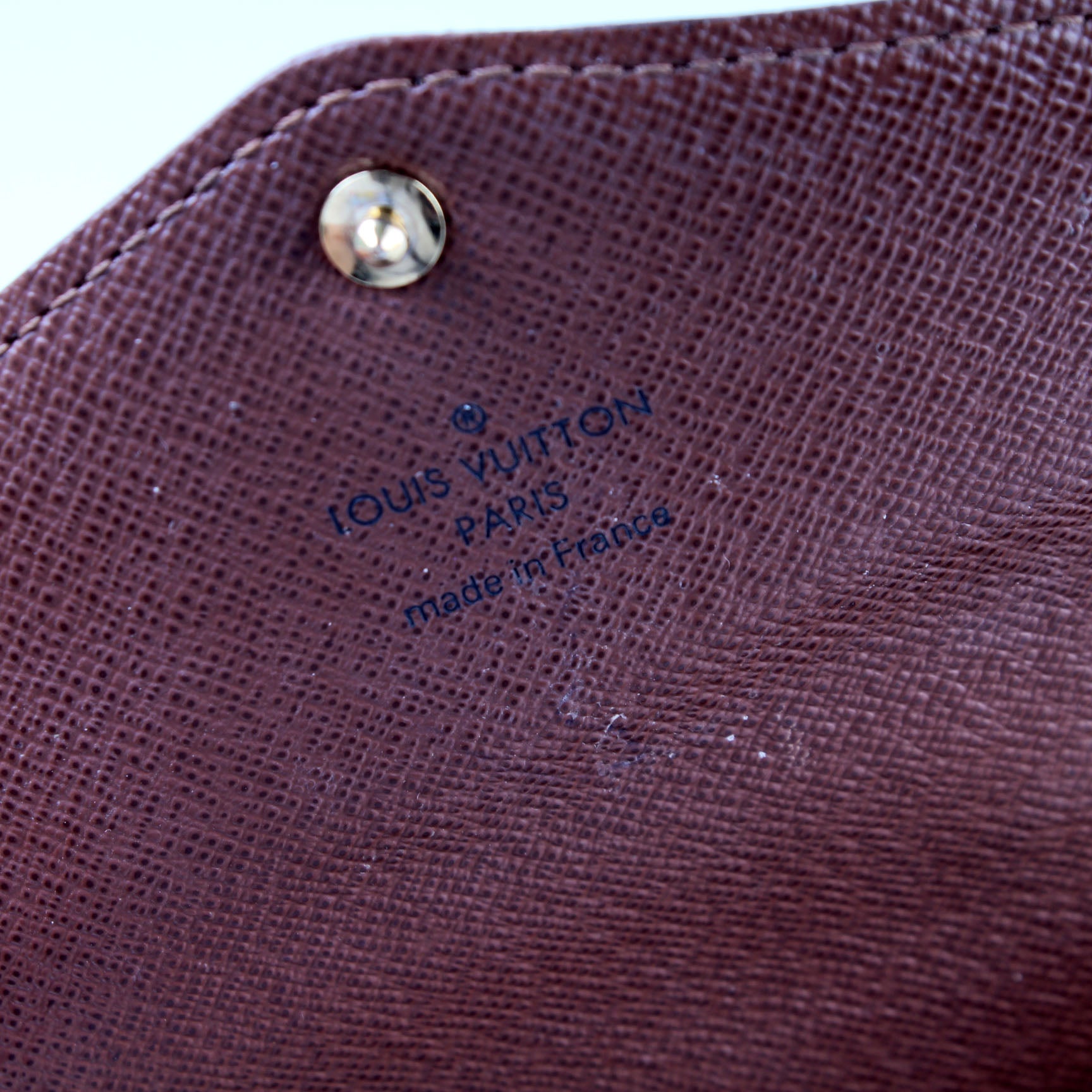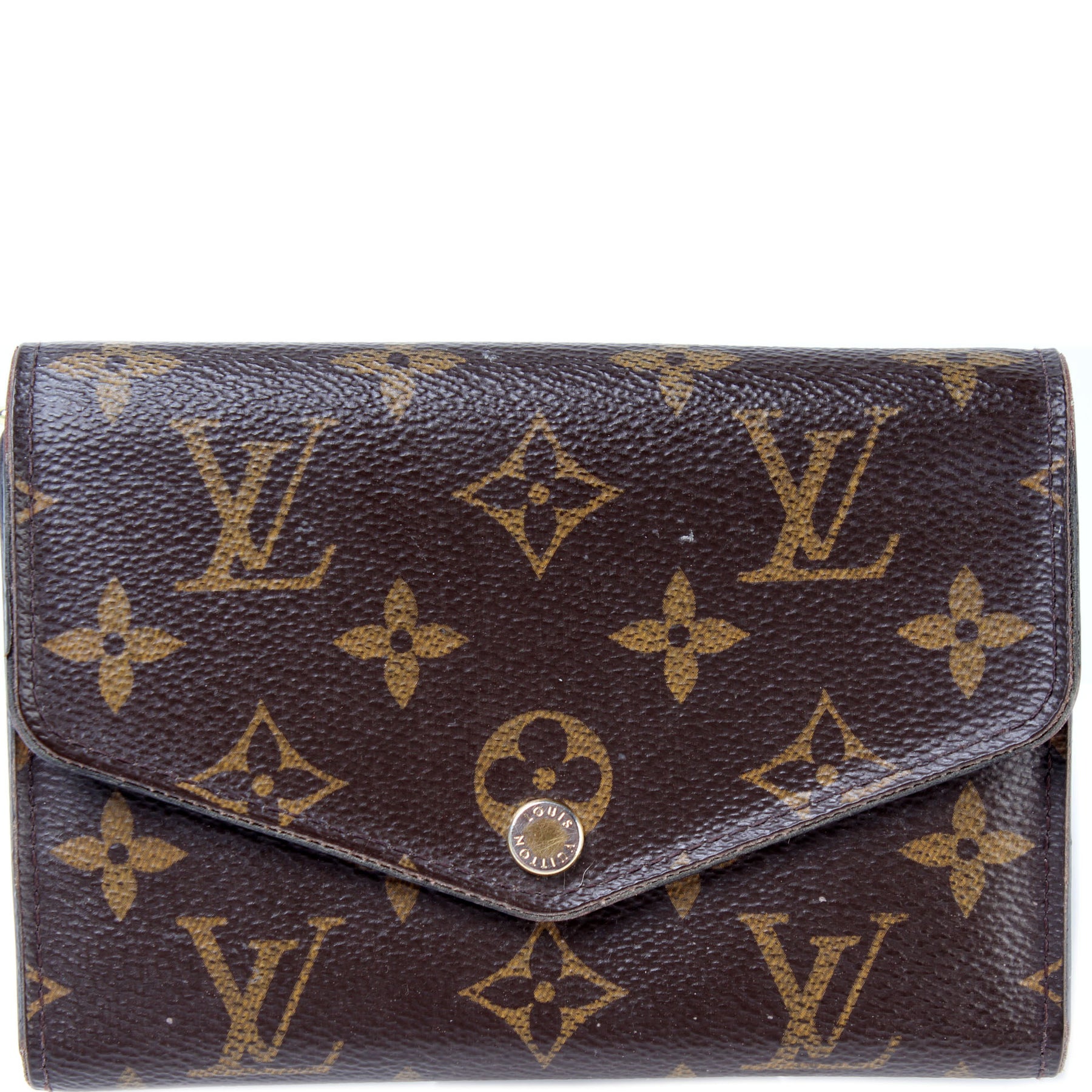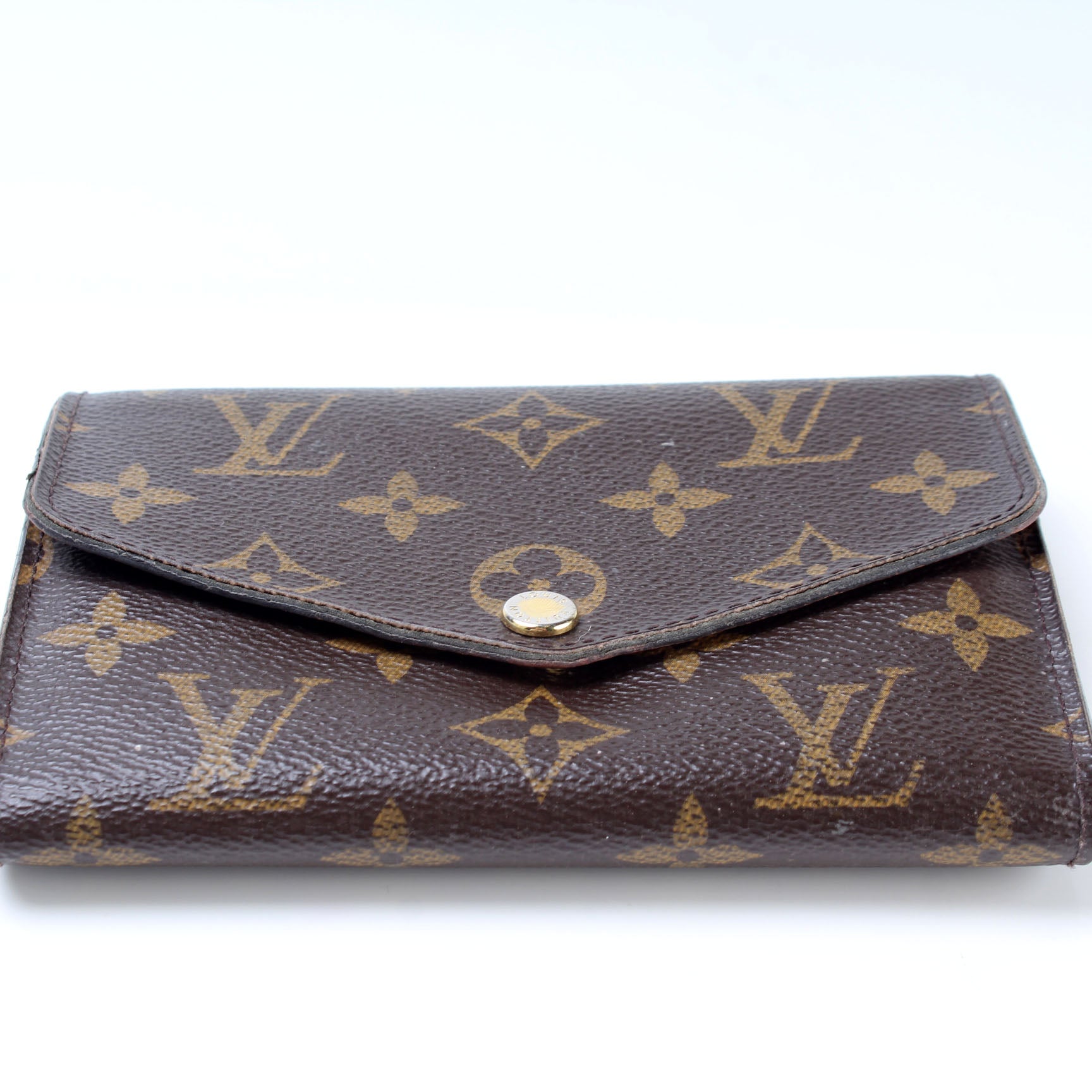 This Louis Vuitton Sarah Compact Wallet is guaranteed 100% authentic. The exterior is in the classic Louis Vuitton Monogram coated canvas.