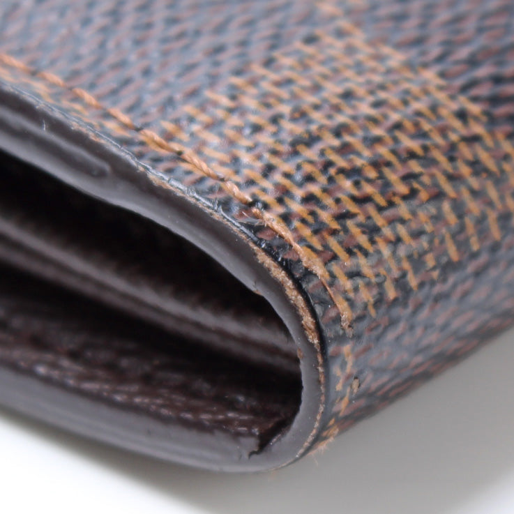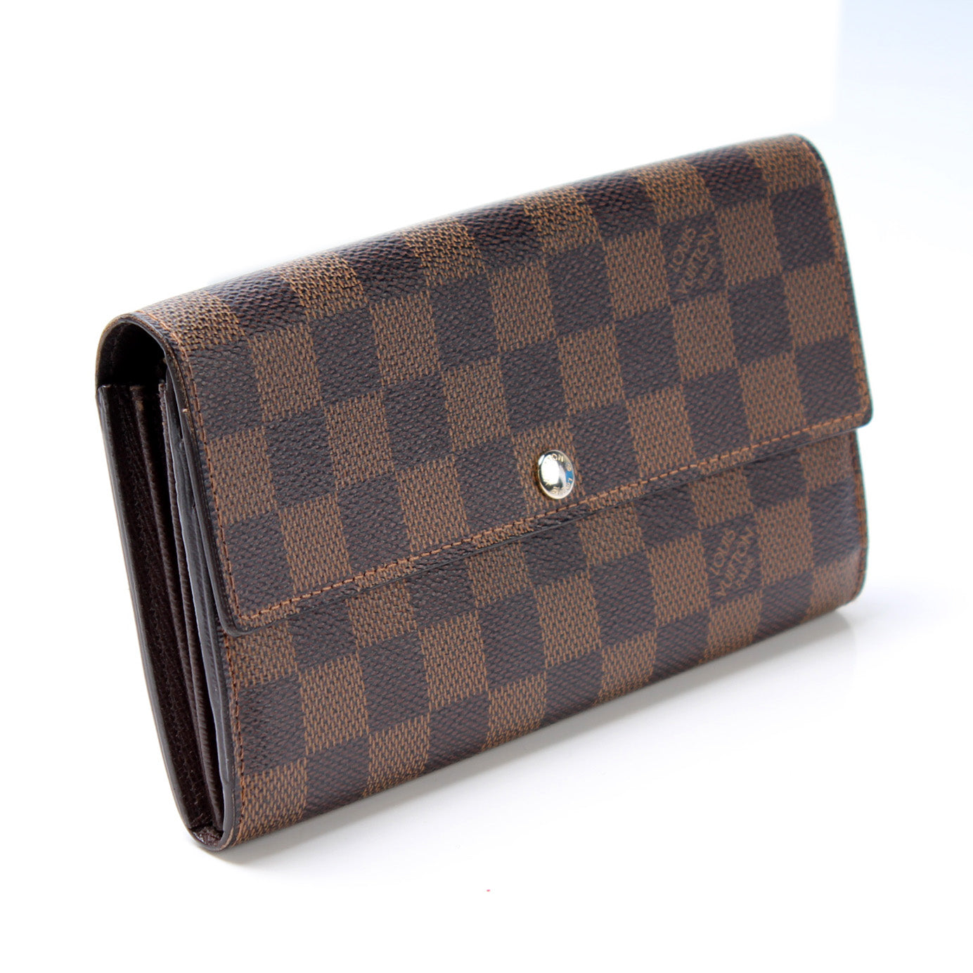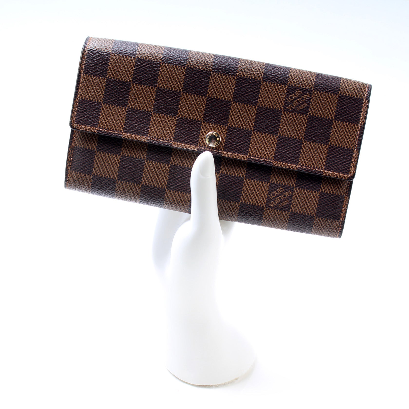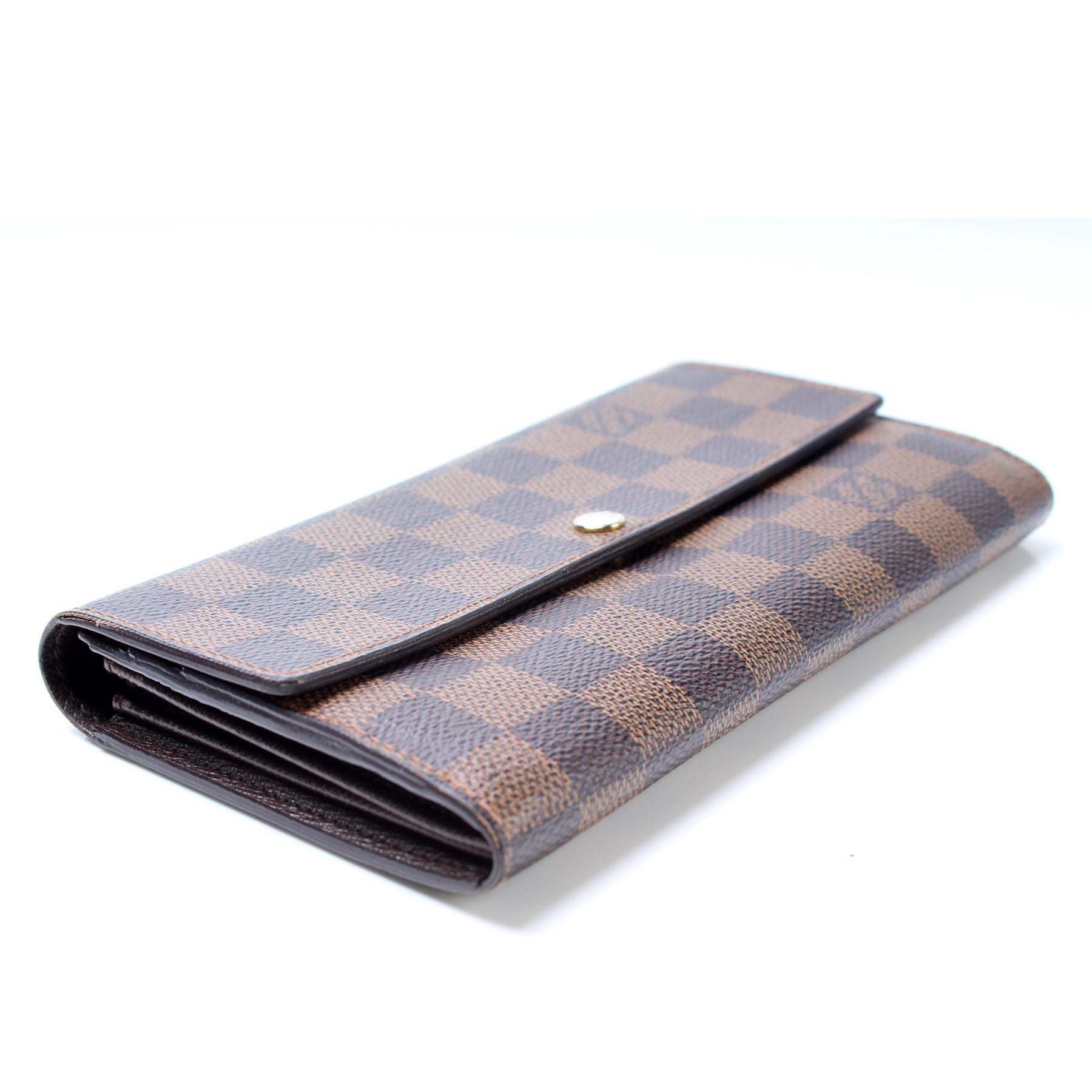 This Louis Vuitton Sarah Wallet is guaranteed 100% authentic. The exterior is in the classic Damier Ebene coated canvas.
