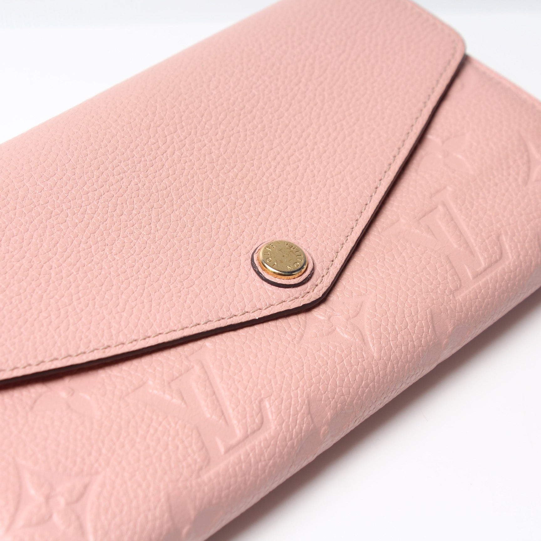 This Louis Vuitton Sarah Wallet is guaranteed 100% authentic. The exterior is in the classic Empreinte Leather.