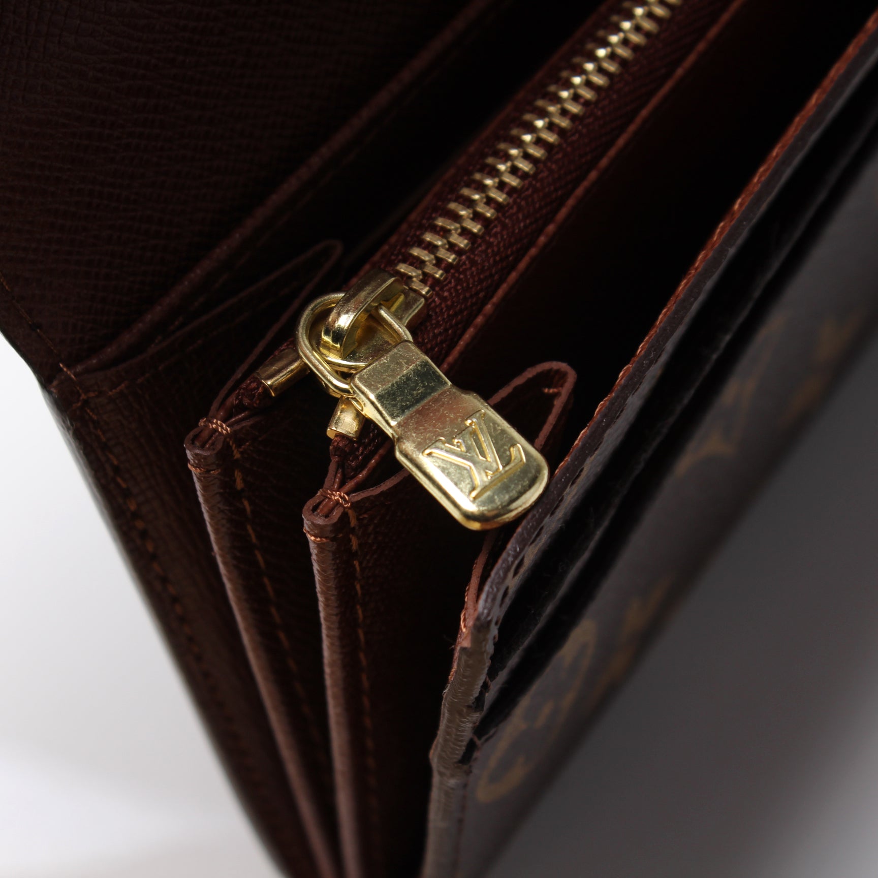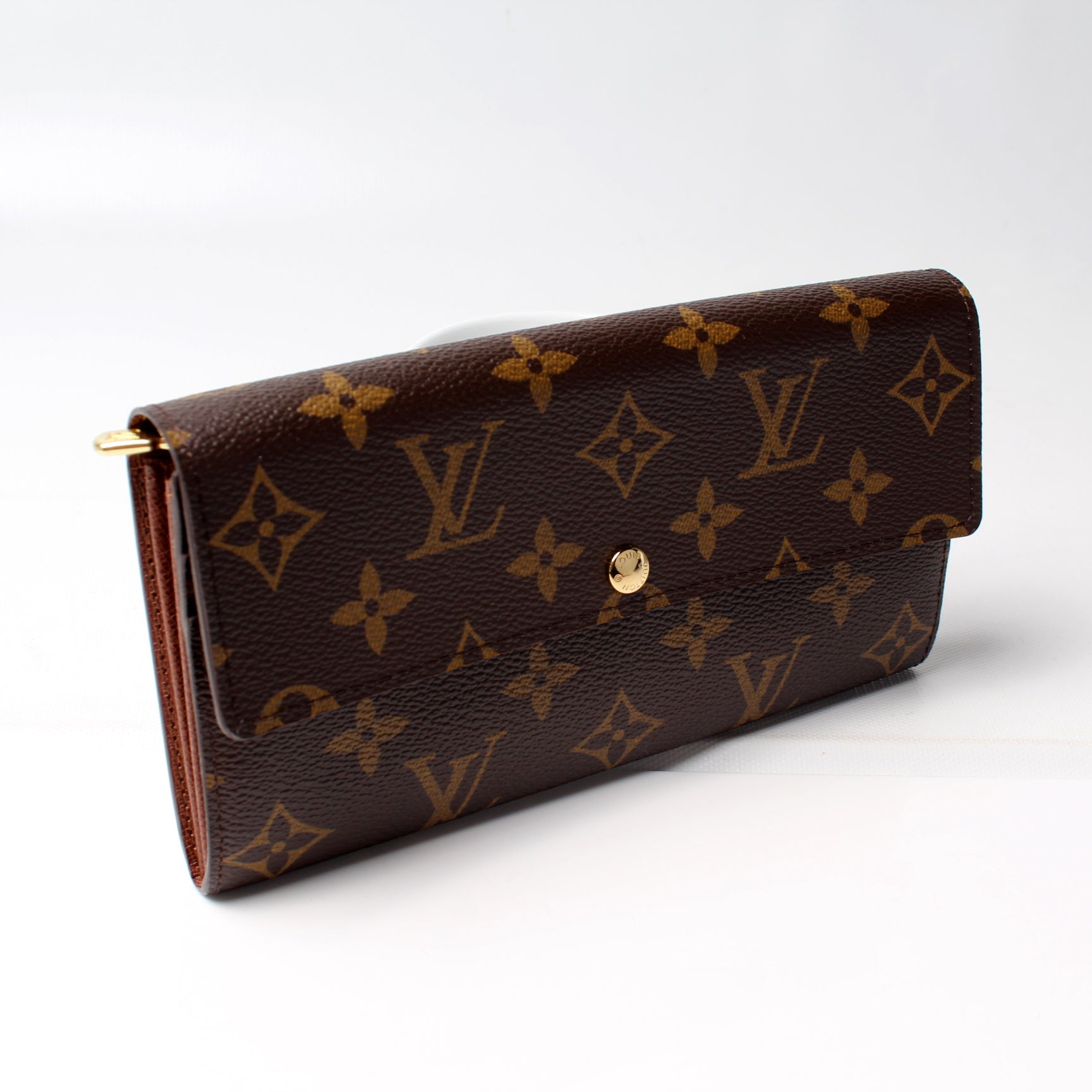 This Louis Vuitton Sarah Wallet is guaranteed 100% authentic. The exterior is in the classic Louis Vuitton Monogram coated canvas.