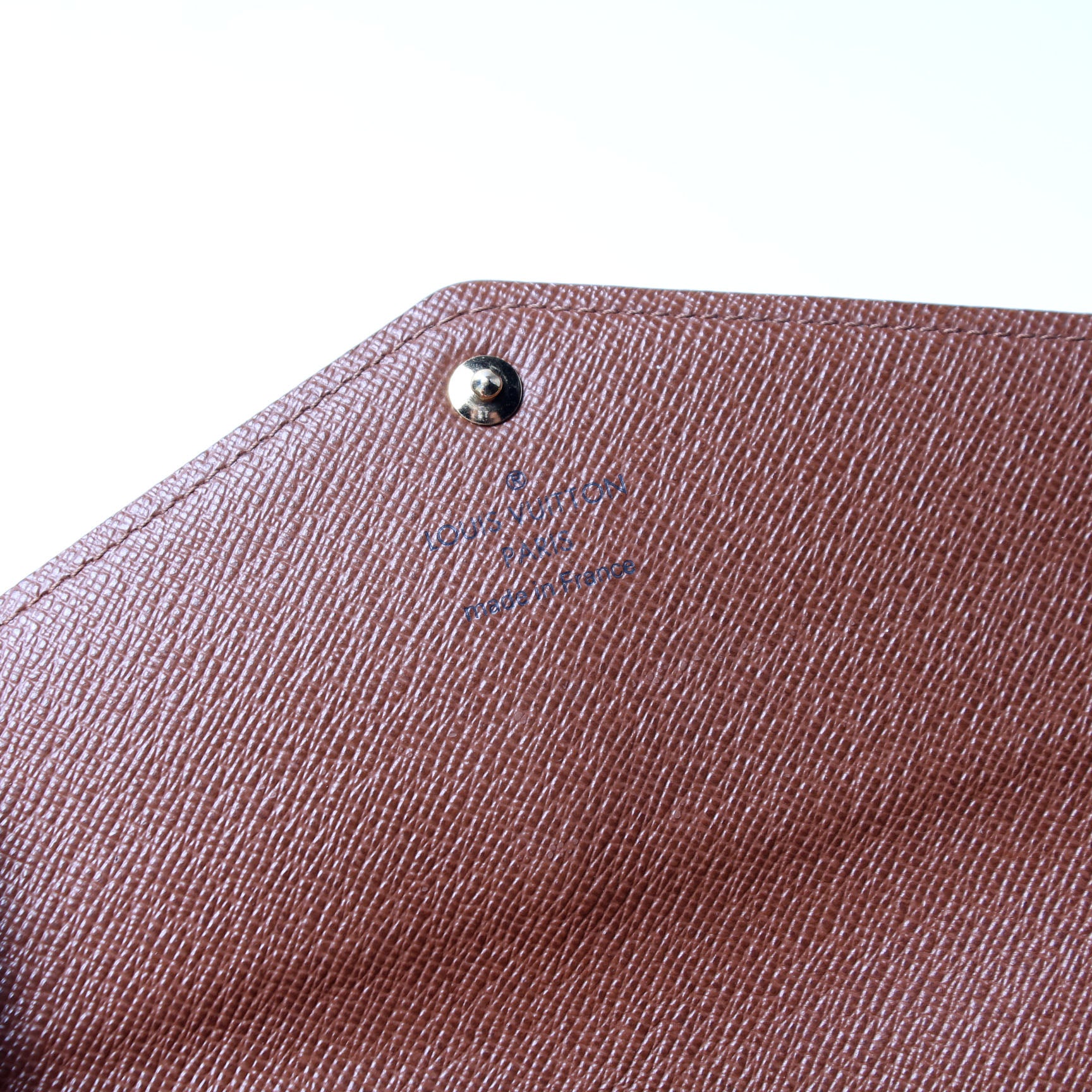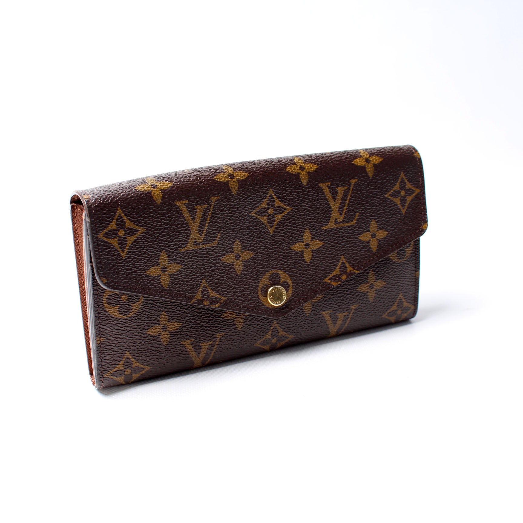 This Louis Vuitton Sarah Wallet is guaranteed 100% authentic. The exterior is in the classic Louis Vuitton Monogram coated canvas.