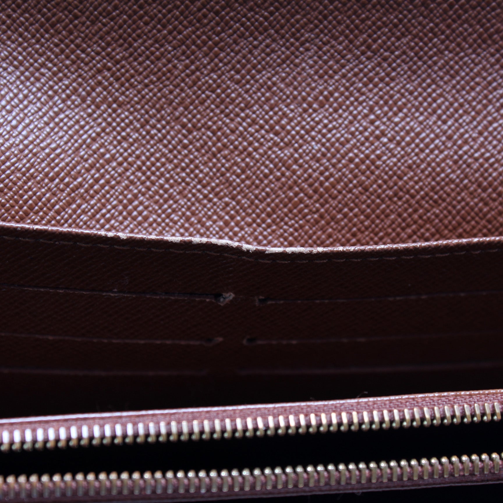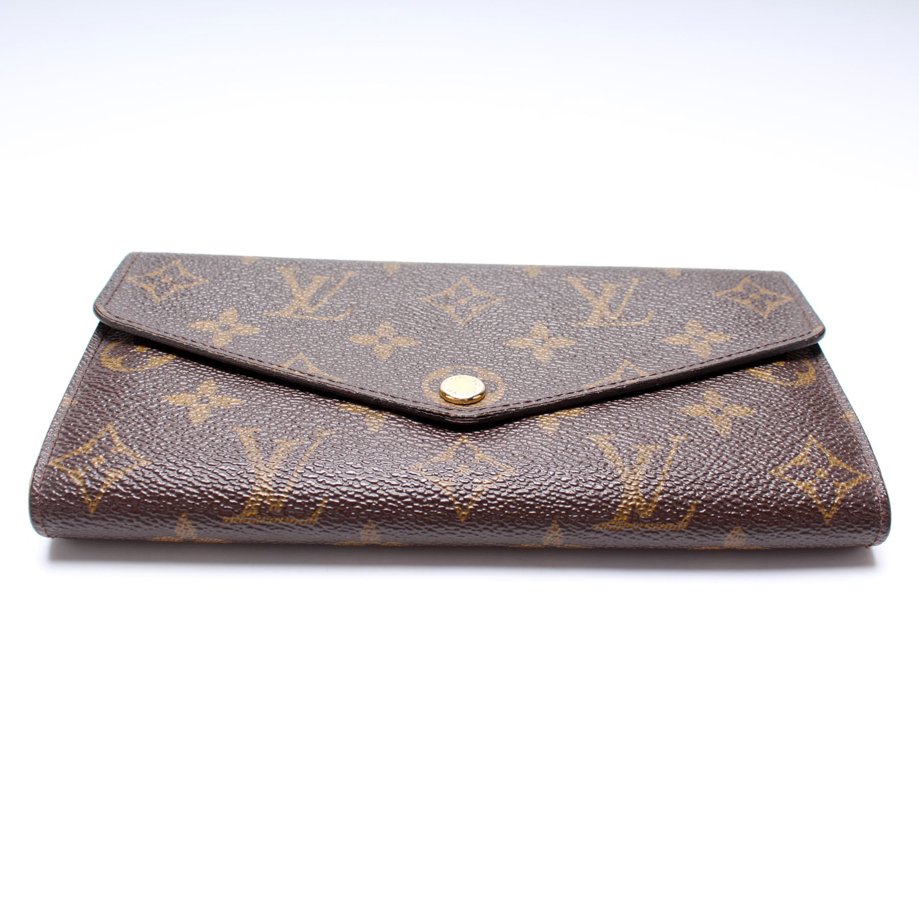 This pre-owned Louis Vuitton Sarah Wallet is guaranteed 100% authentic. The exterior is in the classic Louis Vuitton Monogram coated canvas.