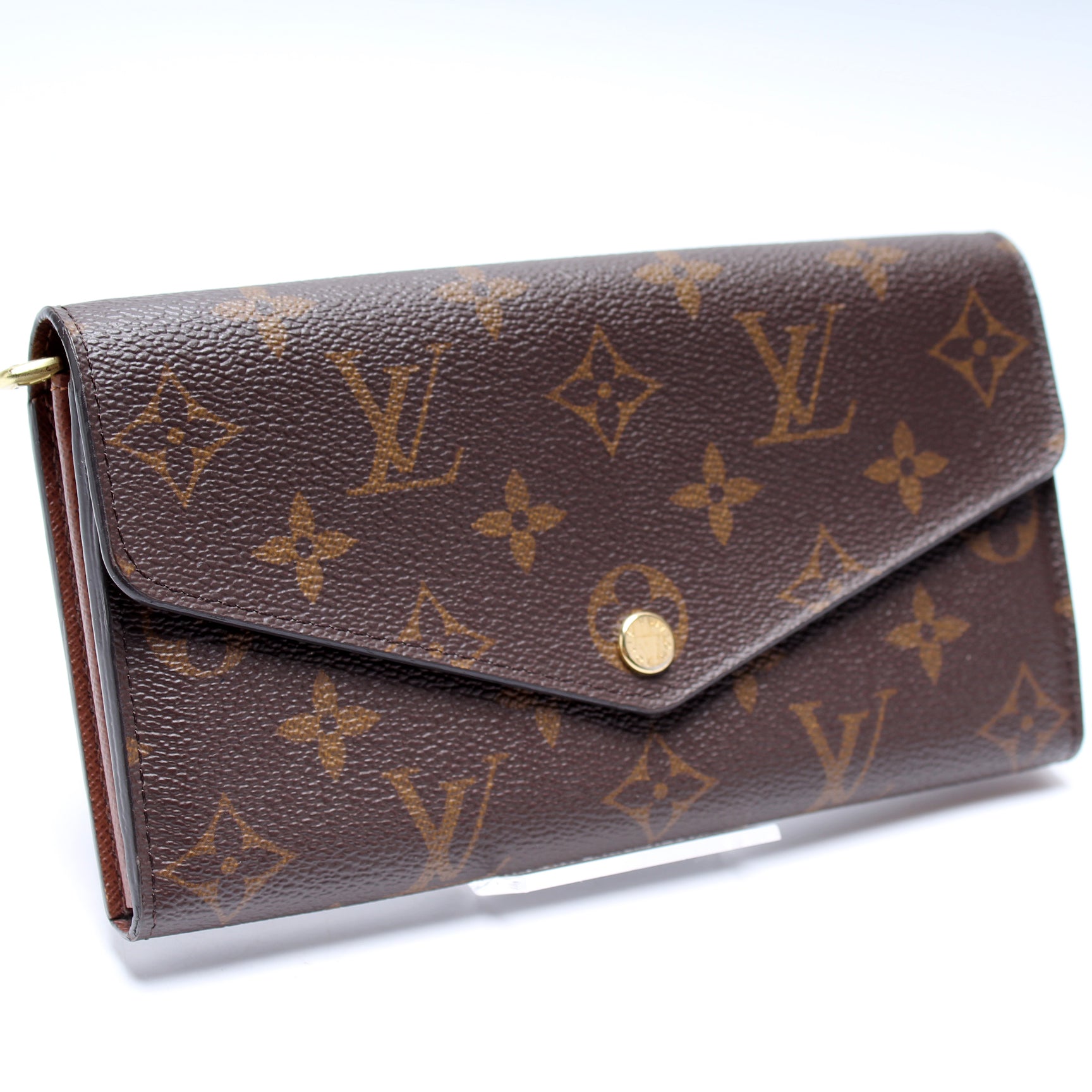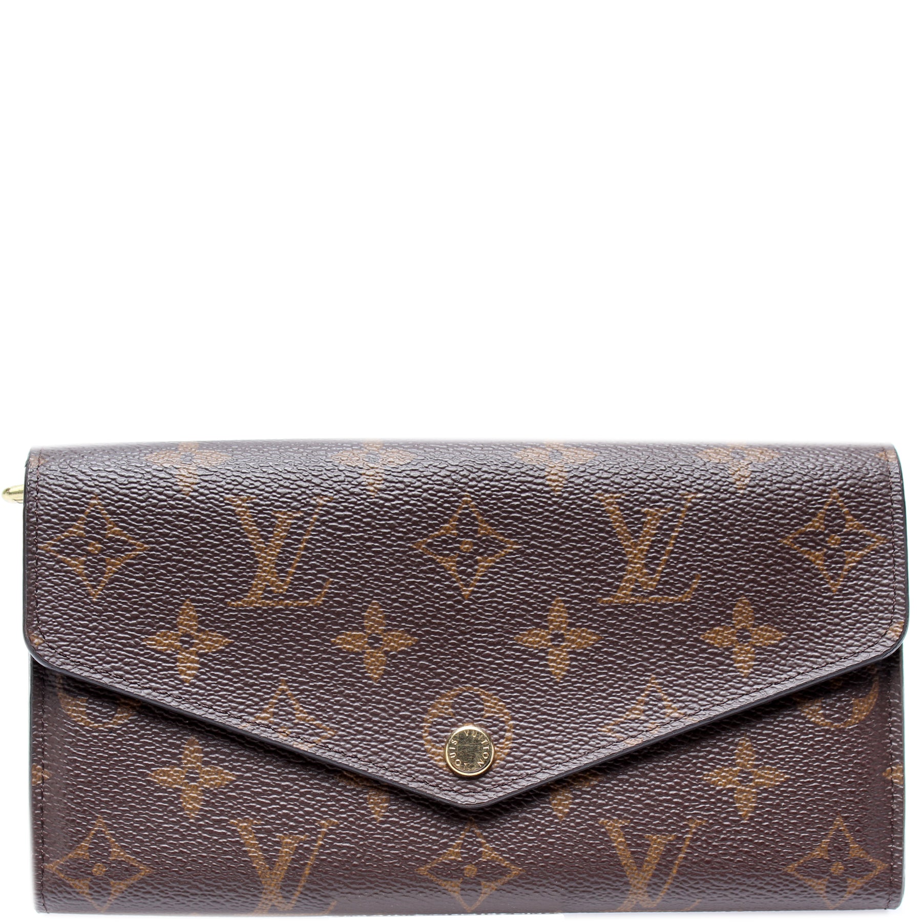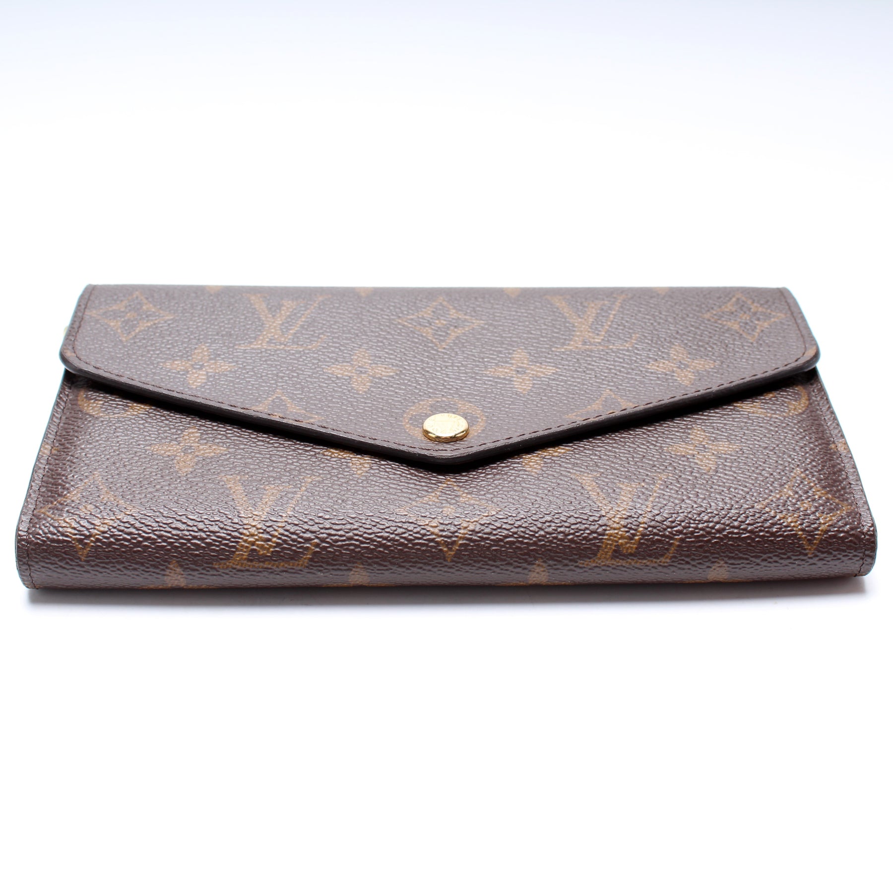 This pre-owned Louis Vuitton Sarah Wallet is guaranteed 100% authentic. The exterior is in the classic Louis Vuitton Monogram coated canvas.